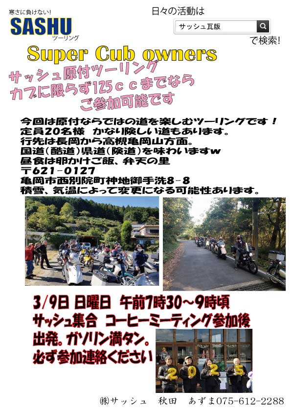 ツーリング、イベント、新製品情報、裏ネタ!? 満載でお届けする、新しいサッシュ・ブログ |