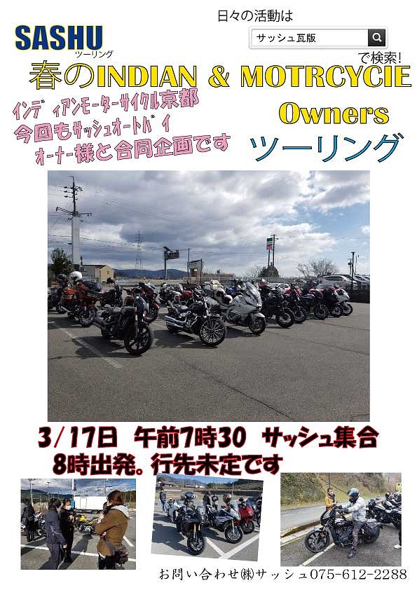 ツーリング、イベント、新製品情報、裏ネタ!? 満載でお届けする、新しいサッシュ・ブログ |