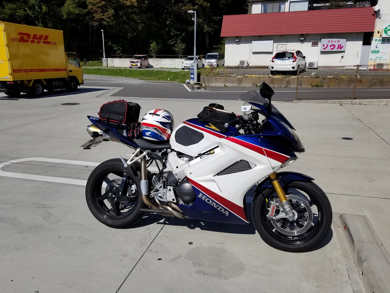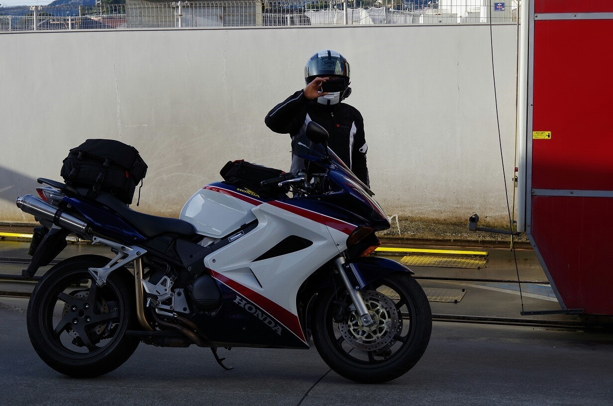 前回のRC46で少し書きましたが、買われてしまった代わりに買いなおした VFR800F RC79 黒いカラーが欲しかったんですが、白が安かったので購入。 乗ってみると、やはり排気ガス規制の影響が大きく同じエンジンのはずなのに キャラクターがかなり変わってました。 トルクが明かに減っていて、仕方なく回転でもっていくような感じをうけました。 パワーコマンダーやスプロケットでかなりましになりましたが、燃費がめちゃくちゃいい 以外にどうもしっくりこなくて、しばらくは全然乗ってませんでした。 前述のRC46の作業が終わりどうしようか考えてた時に、ほかのバイクを売却した予算が あったので、なんか急に黒の車体にしたくなり思い切って実行。 やはり自分の好みはブラックパールで、見た目は一気にお気に入りのバイクに。 で、せっかく色を変えたので例によって長距離ツーリングに出かけることに。 実はそれまでゆっくりツーリングにしか使っておらず、ちゃんとワインディングなどを 走ってなかったんです。 長距離走ってみると、あれだけ気になってたトルクの薄さが逆に乗りやすさに繋がり トルクの変動が少ないのでアクセルにシビアさがなく(アクセルオン、オフを雑にしても 車体の挙動に出ず楽にのれます。が、これ乗った後にドカとかのると自分が雑になってる のがハッキリわかります(笑))RC46以上に疲れないバイクでした。 また軽すぎない車体は長距離で疲れを軽減してくれて自然な安定感があります。 燃費も、同じエンジンのはずですが、リッター5から7くらい違いリッター20㎞前後 余裕で走り、21Lのタンクで380㎞くらいは走れます。 ワインディングを飛ばしてみると軽量化とスポーツ寄りにバランスされてるおかげで ハンドリングがかなりよくなっており、スーパースポーツに近いペースで走れる。 散々いじくったRC46と吊るしの状態でほぼ一緒(笑) あの苦労はなんやったのか… 車体のセッティングも色々変えて、ブレーキ等もモディファイしたらめちゃくちゃ お気に入りのバイクになりました。 具体的にはノーマルのセッティングは前が安定感ありすぎで重たいので少し上げて荷重を 抜いて(超高速域で不安定になりますが絶対にリミッターがかかるような領域まで 出したりしないので)峠でひらひらと切り返せるように。 またパワーコマンダーでセッティングして、車検の通る範囲でガソリン増量してアクセルで 車体の向きを変えれるようにしました。(これはお客様が必ずやってよかった!とおっしゃるメニューで排気量が上がったかのような力強さがでます) それと合わせてスプロケットのロング化でエンジンに伸びを作って ブレーキパッドとマスターシリンダーで減速時のコントロール性を上げました。 結果、過去3年間で400㌔くらいしか走ってなかったのに、2021年だけで2000㌔ 近く走ってしましました(笑) ゆっくりツーリングのライディング指南やベテランクラスの先導に大活躍! 後ろから見てる常連さんも、普段のVTR-SPとほとんど変わらないって言ってます。 荷物かなり積んだ状態で高速も快適、知らないワインディングに行っても かなりのペースで楽ちんに走れますし、 実際に2022年は念願の東北に行って小熊とも会えました(笑)。(ブログに更新済み) 1日1000㎞近く走っても死ぬことはなく(気温の暑さで死にましたが…) 4日間で2600㎞走って自走で行って帰ってこれました。VTR-SPでは考えられないです。 また過去のV4エンジンの弱点だった後ろシリンダーの熱さは全くと言っていいくらい 気にならず、むしろ涼しいくらいでした。 帰ってきてVTR-SPに乗ったらびっくりするくらい熱く感じました(笑) そんな姿を見たお客様が次々とこのモデルに乗り換えられました。 皆言わはるのが、最初はまあ乗りやすいバイクですね、程度の印象なんですが 乗り込むほどV4と意外な運動性能にハマって、このバイク買って本当に良かった! って、どんどんロングツーリングにハマっていきます。 ゴールデンウイークに3台のVFRで四国カルストを日帰り自走はさすがに無謀でしたが… (マジで1000㎞超えました) 一緒に行ったお客様はかけがえのない経験で一皮むけて自信が付いたとおっしゃって ました(笑) 今のところこれに近い車両はドカティのSSくらいしか思い浮かばないですが、 かなりキャラクターは違います。 VFR800Fは残念ながら去年の秋に廃盤になりました。 でもお客様のモディファイは続々進行中です。 幸いまだまだ中古車のタマ数もありますので、気になる方はお問い合わせください~
