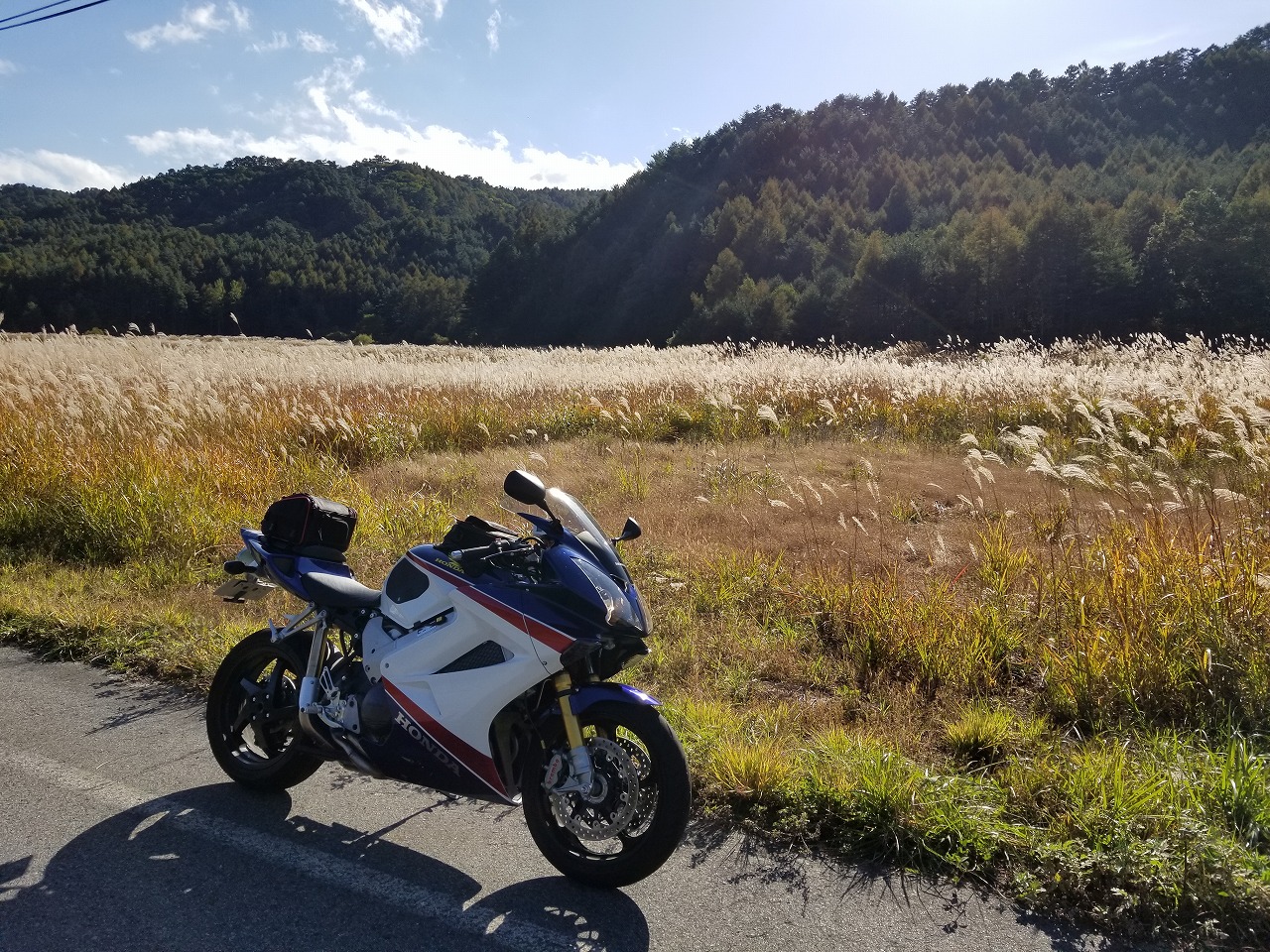 本日は3か月ぶりのベテランクラスツーリング! 二か月連続で雨天中止でしたが、久しぶりに晴れの予報! 早朝6時にサッシュ集合して、そこから第二集合場所の名神伊吹パーキングへ。 冷え込みもなく快適な気温 ここから関ヶ原で降りて、池田町の茶畑を抜けて関ヶ原八幡大規模林道へ! さあ!これから! というところで信号まちでK様が横にきて 「すみません、ガソリン無いです」(笑)! いやいや!!途中サービスエリアで入れといてってメールに書いてたやん! コンビニに入って本人だけちょっと離れたガソリンスタンドへ… やってくれました(笑) 気を取り直して、山の中へ。 まだ朝早いので車もいなくて超快走! その後休憩をいれつつ、岐阜に入り郡上八幡を目指しますが途中またも通行止め… かなり遠周りしてやっと郡上八幡へ。 ここで各自昼食。コンビニや吉野家などでサッと済まします。 今日はいい天気過ぎて暑すぎです… 昼食後はこもれびロードから八幡高山大規模林道を堪能して 逆回りで郡上八幡に帰ってきて、そのまま高速で帰ってきました。 530㌔、本当によく走りました~楽しかった! 11月は20日の予定です。