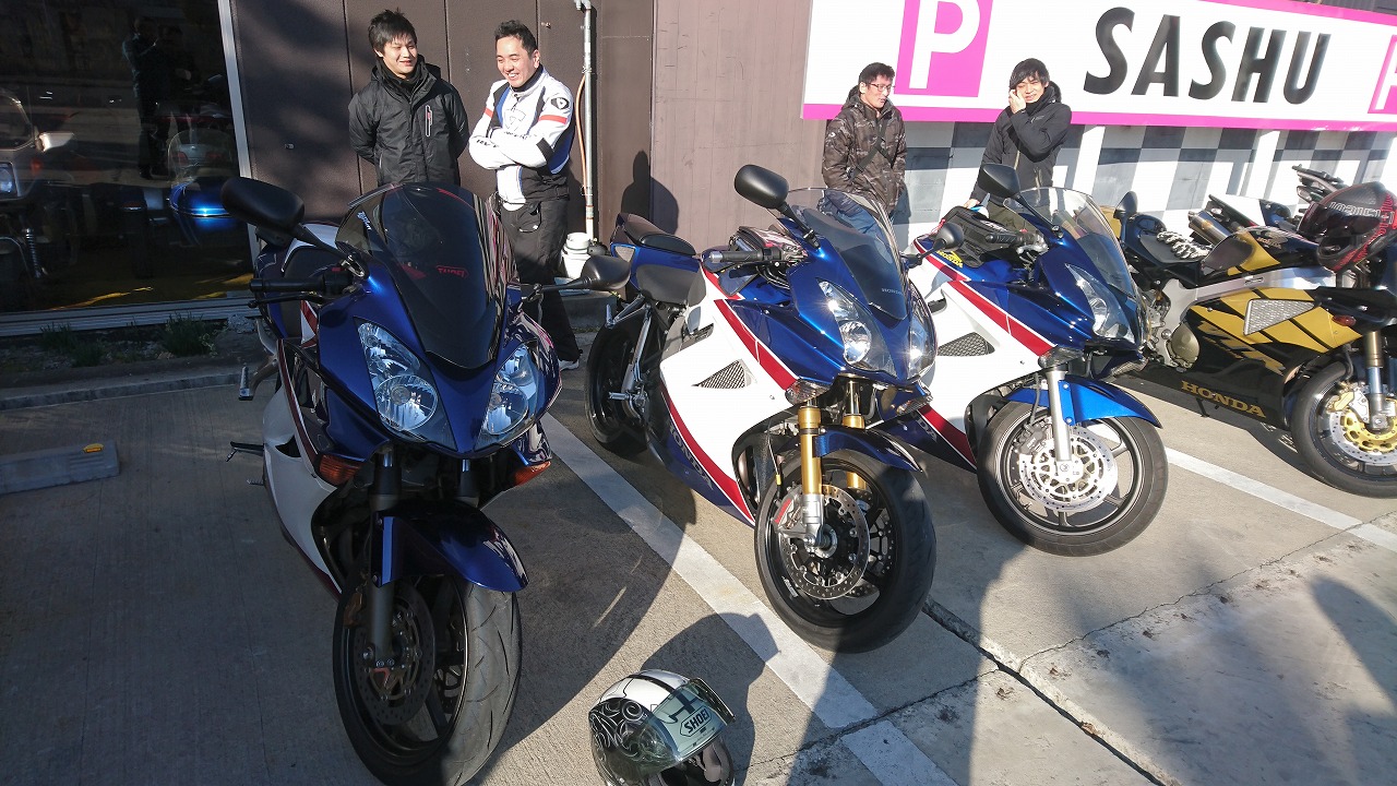 今年はとことん天候に恵まれないサッシュオートバイツーリング。 本日はすべてのクラスが対象の今年ラストツーリングですが、とてつもない寒波に… 当初参加予定が20人を優に超える予定でしたが、やはり中級クラスまでの皆さんには きついコンディションでけっこうキャンセルが出ました。 それでも続々集まってくるバイクバカなメンバーたち(笑) 時間に余裕があるのでゆっくりバイクトークの時間取ります。 女性5名含む総勢17名。 郊外の路面コンディションが全く分からないので、2グループに分かれて宇治田原を 目指します。 グリップヒーターが本当に点いてるのか分からなくなるくらいの気温の中とりあえず宇治田原のコンビニに到着。 あまりの寒さにテンション下がりますが、昼ご飯は栗東のみくりやうどんさんへ向かうことに。 寒い中ですが、停まると話が止まりません。 ここから結構距離あるんですが、覚悟を決めて出発! 途中水たまりや轍がバキバキに凍っててマジでビビりながらラインを選んで走ります。 いつもならすぐの距離感ですが、まあ遠い… つま先の感覚が無くなるほどでしたが、なんとかお店に到着。 12時過ぎてましたが幸いすぐに入れました。 固まった体を溶かしながら絶品のうどんやとんかつを頂きました。 このみくりやうどんさんはテレビでも度々紹介されてる有名店ですが、いつも大人数でおしかても対応してくれるので、本当にありがたいです。 ガッツリ食べた後、普段ならまだまだ走るんですが、ここまでの道のコンディション考えたらかなり厳しいので高速で帰ることに。 しばらく国道を走って高速に乗り、草津パーキングへ。 皆のタイヤ見てびっくり! こんなに融雪剤まくか?!(笑) 真っ白です… ここでコーヒー飲みながら喋ってたら4時過ぎてました(笑) 本日はここで解散。 本当に久しぶりに辛い寒さの中のツーリングでした。 でも皆さんとワイワイ喋れて楽しかったです。 ヒートマスター着てないお客様は、帰りに早速サッシュに寄ってお買い上げ(笑) あると無いとで冬の景色の楽しみかたも変わってきますよ~ サッシュでも絶賛販売中です~ 今日は挫けようになるくらい寒かったですがまた来年もガンガン走る予定です。 サッシュでは楽しい時間を共有してくれる方を募集中です。 詳しくはサッシュ秋田までよろしくお願いいたします。