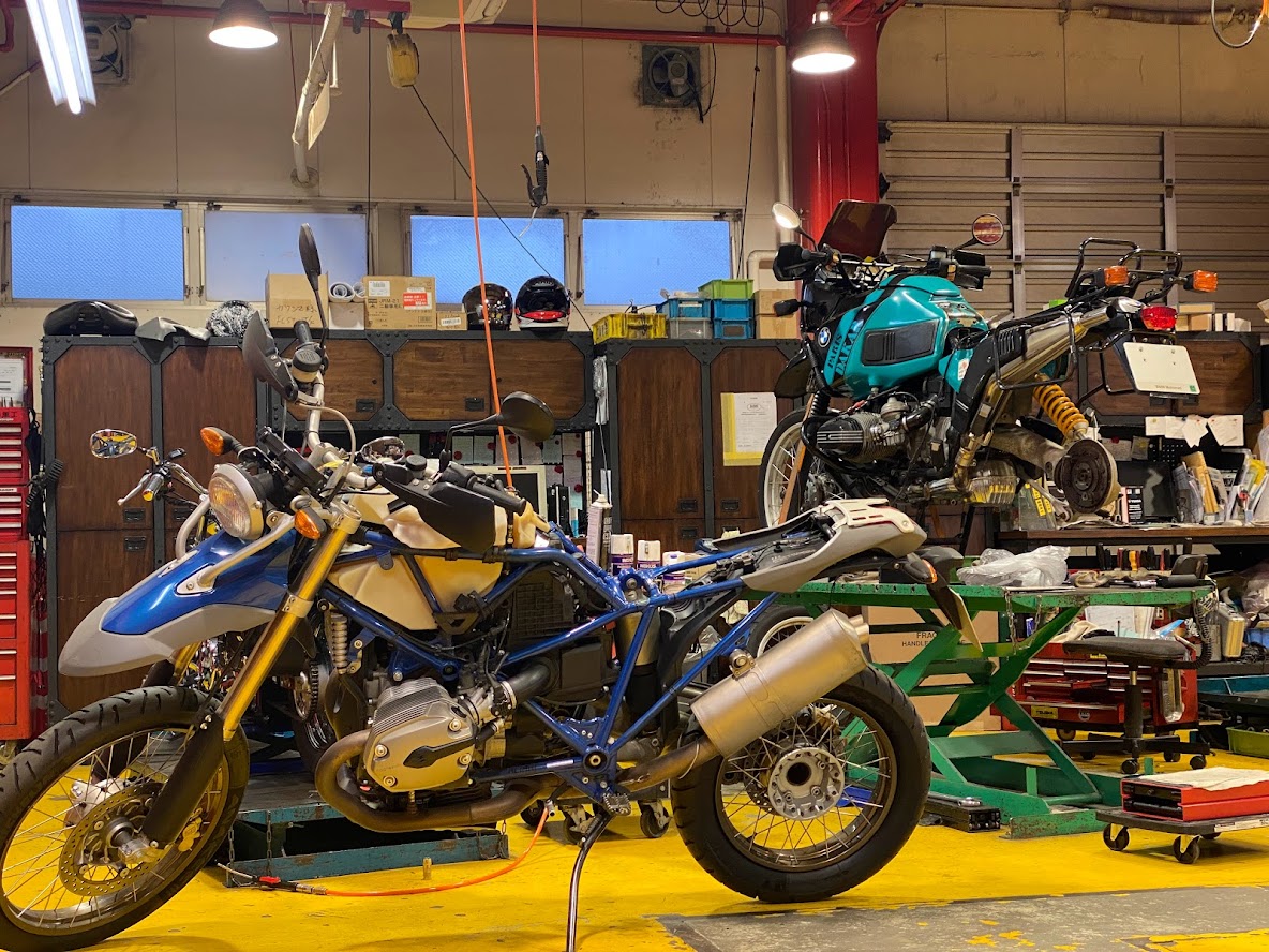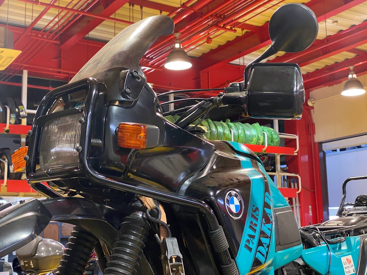 いつも こちら側のピットをご紹介する事が多いのですが・・・ 今日は、向かいのピットのご紹介。 こんなかんじでやってます。 納車作業中のHP2エンデューロ。 2005年モデルだから 16歳。 奥のリフトの上には・・・ R100GSパリダカール。 入庫してきた中古車両のチェック&メンテナンスです。 こちらは 1991年モデルなので 30歳。HP2の2倍・・・。 『旧車』の定義って難しいものです。