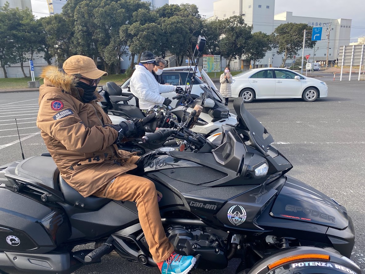 元旦のフェリーで まずは 鹿児島県志布志市志布志町志布志を 目指します。 翌朝 鹿児島県志布志市志布志町志布志に 到着しました。 鹿児島県志布志市志布志町志布志で 霧島のオーナーさまと合流。 先日、お電話いただいた、スパイダーに興味をお持ちのご夫婦さまに 今回フェリーで伺う旨をお伝えしたところ、 早朝にもかかわらず 港まで 来ていただきました。 即席での 試乗会 が 開催されます。 いそいでお見積り致しますので 今しばらくお待ちください。 宮崎・道の駅フェニックスを目指します。 フェニックスで 大分・宮崎のオーナーさまと合流です。 宮崎からは高千穂経由で 熊本入り、 予定していた20時ころに 佐賀の宿に到着しました。 翌日の 糸島かきツーリング に備えます。
