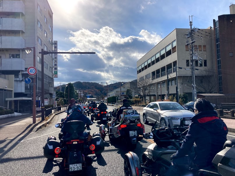 2020年のカンナムツーリングが終了致しました。 今年からご参加いただいた ルーキーオーナー様、 継続してお乗りいただいてる ベテランオーナー様、 大変お世話になりました。 気温は低かったのですが 朝から 陽が射してました。 淡河・権現湖パーキングで 合流です。 今回 ランチで お世話になる たーぼーさんも お迎えきていただきました! いつみても 重厚感ある たーぼーさんの GL1800トライク。 みんなで わいわいさん へ。 貸し切りなので 停め放題 です。 本来なら わいわい やりたいのですが 静かに いただきます! あっという間に 完食。 食後は 道の駅 みつ へ。 ここへは過去2度ほど スパツーでお邪魔しました。 穏やかな瀬戸内の景色。 午後も ばっちり陽が射しています。 さて、お待ちかね! いよいよ『 あの城 』にアプローチです。 その名も『太陽王国 白鳥城』 ※レジャーホテル 白亜城 ではない。 城のそばに駐車場があります。 白鳥城とスパイダー。 入城は 次回のお楽しみ ってことにしました。 日暮れ前に戻れ、冬期の お手本のようなスパツーと なりました。 さて、 2021年の初詣ツーリングの企画を進めたいと思います。