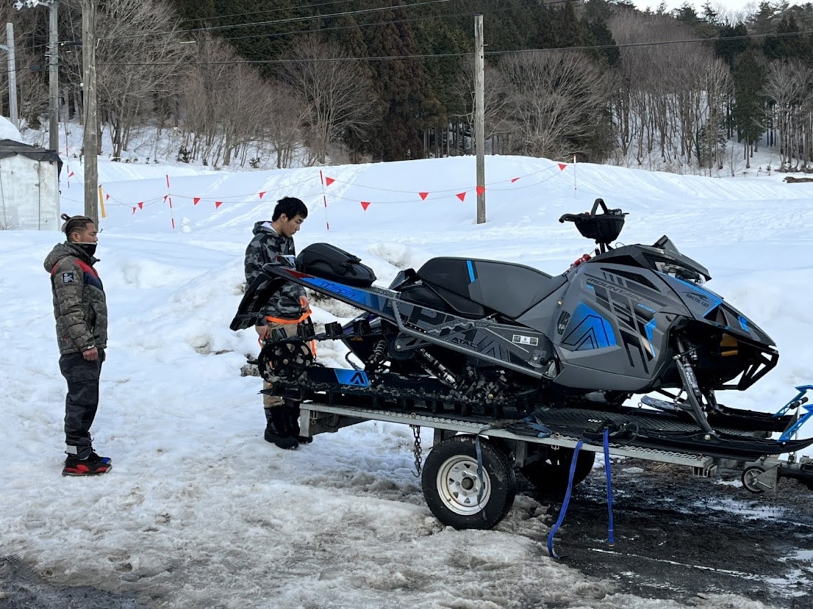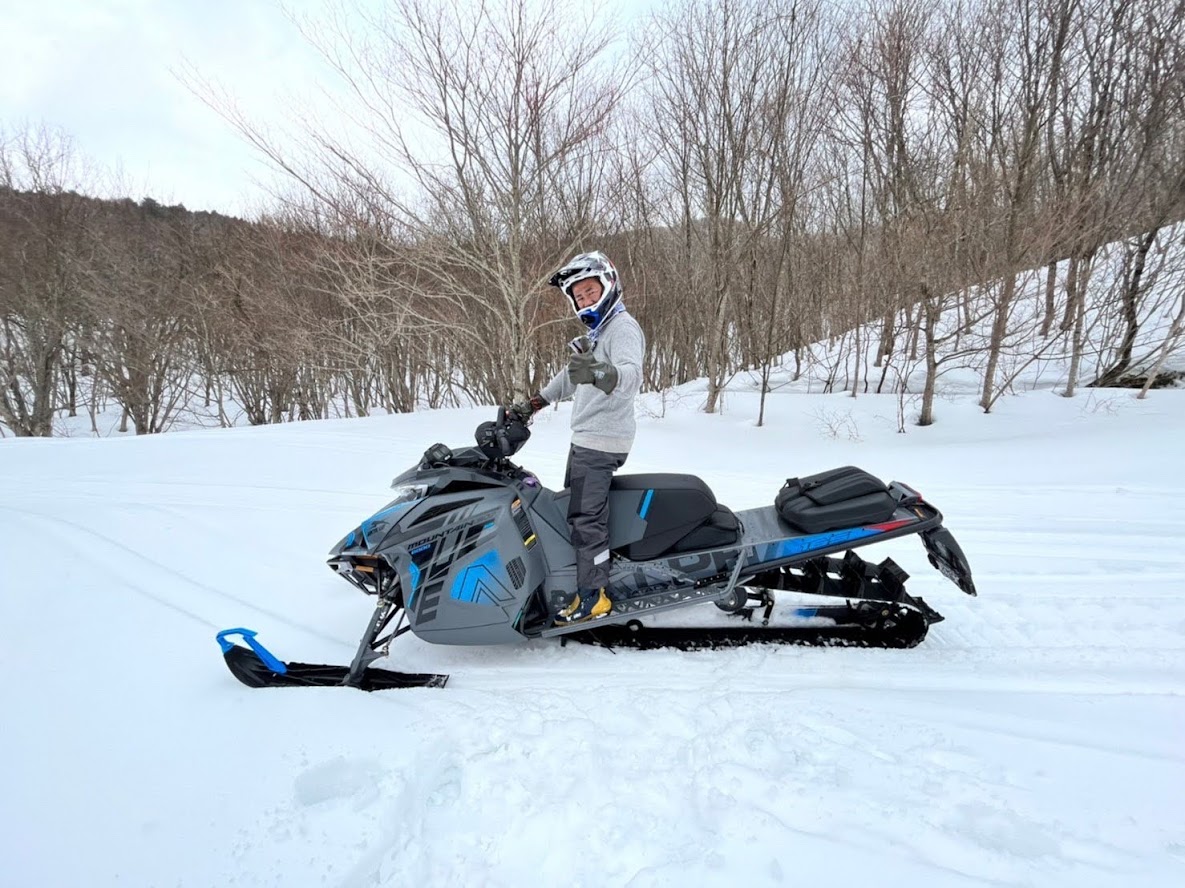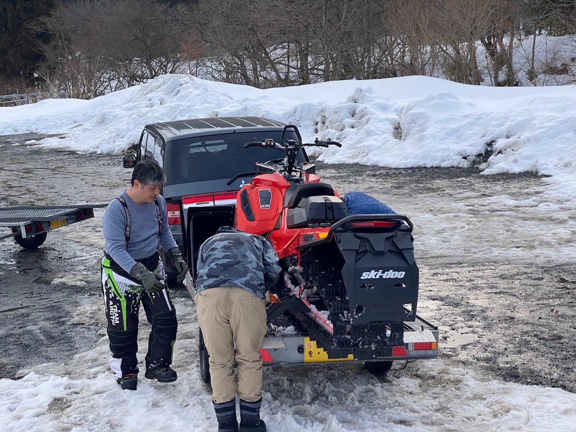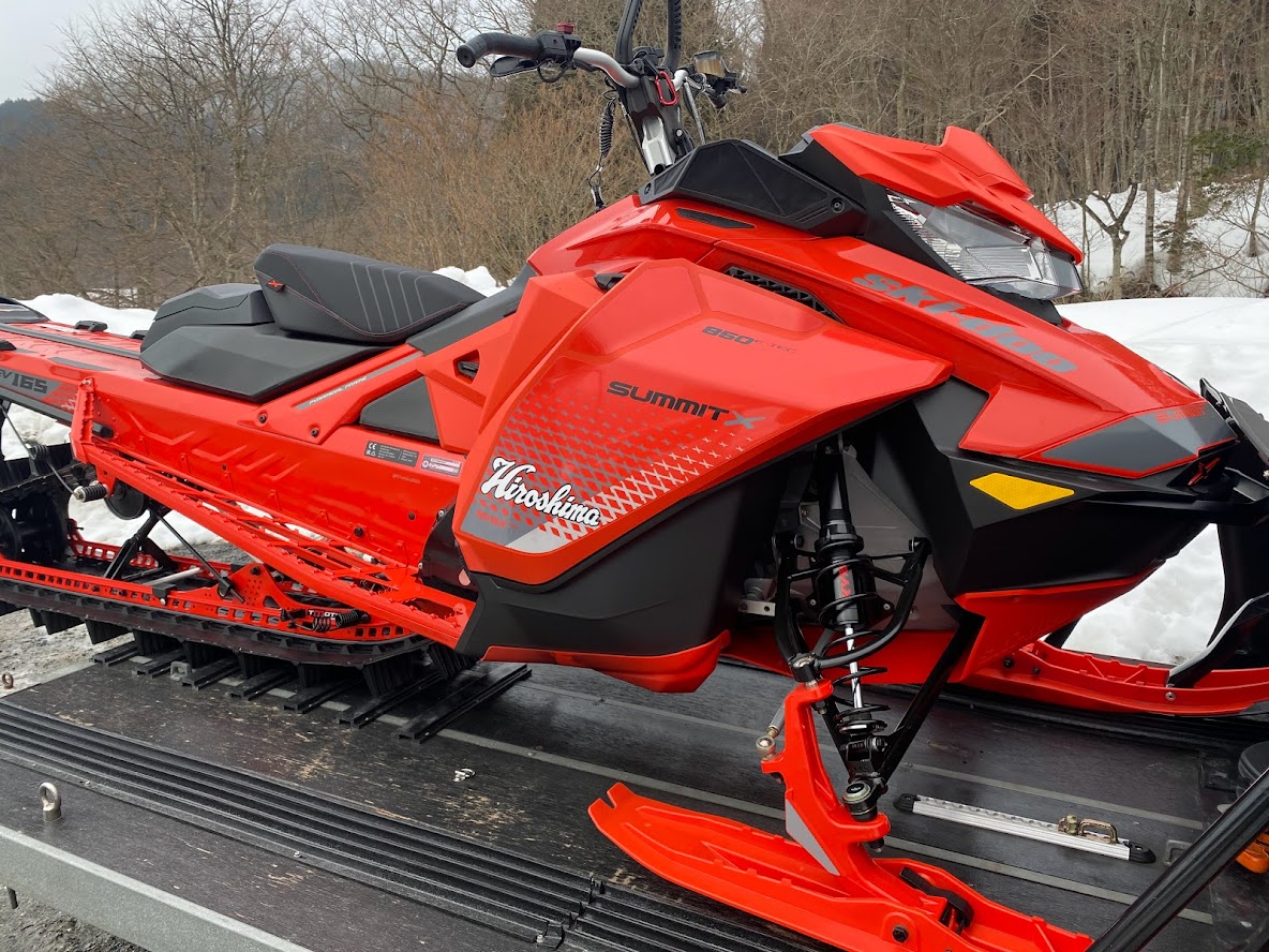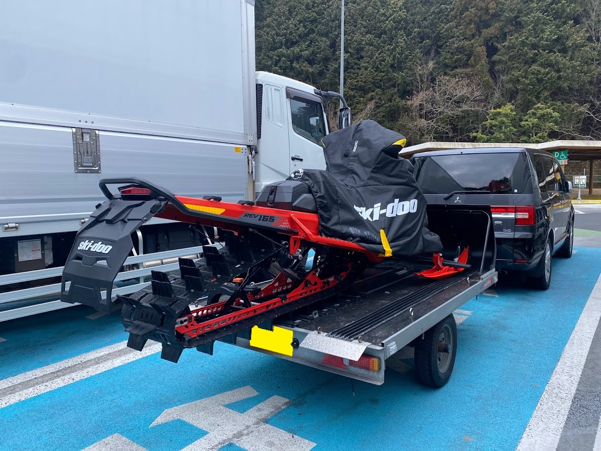 カンナムオンロードのユーザーさまからお誘いを受けて BRP の 雪のチャンネル、スキードゥ に 乗せて頂きました。 公道走行不可ですので トレーラーで引っ張ります。 Ski-Doo スノーモービル Summit X 850 E-TEC。カープカラーのモービル。 今回お邪魔したのは コチラ。 スノーモビルランド in ナチュラル泉源 さん ( 岡山県苫田郡鏡野町羽出1758-1 ) 関西以西で唯一のスノーモービル専用ゲレンデで4km~8kmまでの コースを楽しめます。モービルのレンタルもあるので 気軽に楽しめます。 これまで ウインタースポーツとは一切無縁でしたので まずは講習を受講します。 スタック時の 脱出練習。 いざ 実技。 講習車はYAMAHA の BR250。なかなかのレトロデザイン。 講習後 Ski-Doo Summit X 850 に試乗。どことなく馴染みあるデザインです。 先代のRTフェイスによく似ていますね。 真っ直ぐは問題ないですが しかしまぁ 曲がるのが難しい・・・。 ハンドル + 体重移動 が かなり必要なかんじです。 正直 スパイダー・ライカーの方が 簡単です。アークティックキャットにも乗せて頂きました。 ・・・こっちのほうが 乗りやすい気がしました。 なかでも一番操作しやすかったのはレンタル用のスノーモービル ヤマハ製の4スト500CC。 雪の質や 走るフィールドによって 向き不向きがあるそうです。 熟練者には 軽量パワフルな2サイクルが 好まれるそう。 ナチュラル泉源さんは 初心者向け の 雪質とコースだそうです。 おかげさまで ケガなく安全に楽しめました。 撤収です。 はちみつで有名な 山田養蜂場さん で休憩して帰ります。 この度は 貴重な体験をさせて頂き ありがとうございました。 一夜明けた本日、心地よい全身筋肉痛でございます。 追記 バイクブロスさんの記事に ヤマハ スノーモービルの記事が掲載されました。 バイク好きならこの冬、絶対にトライしたいスノーモービル