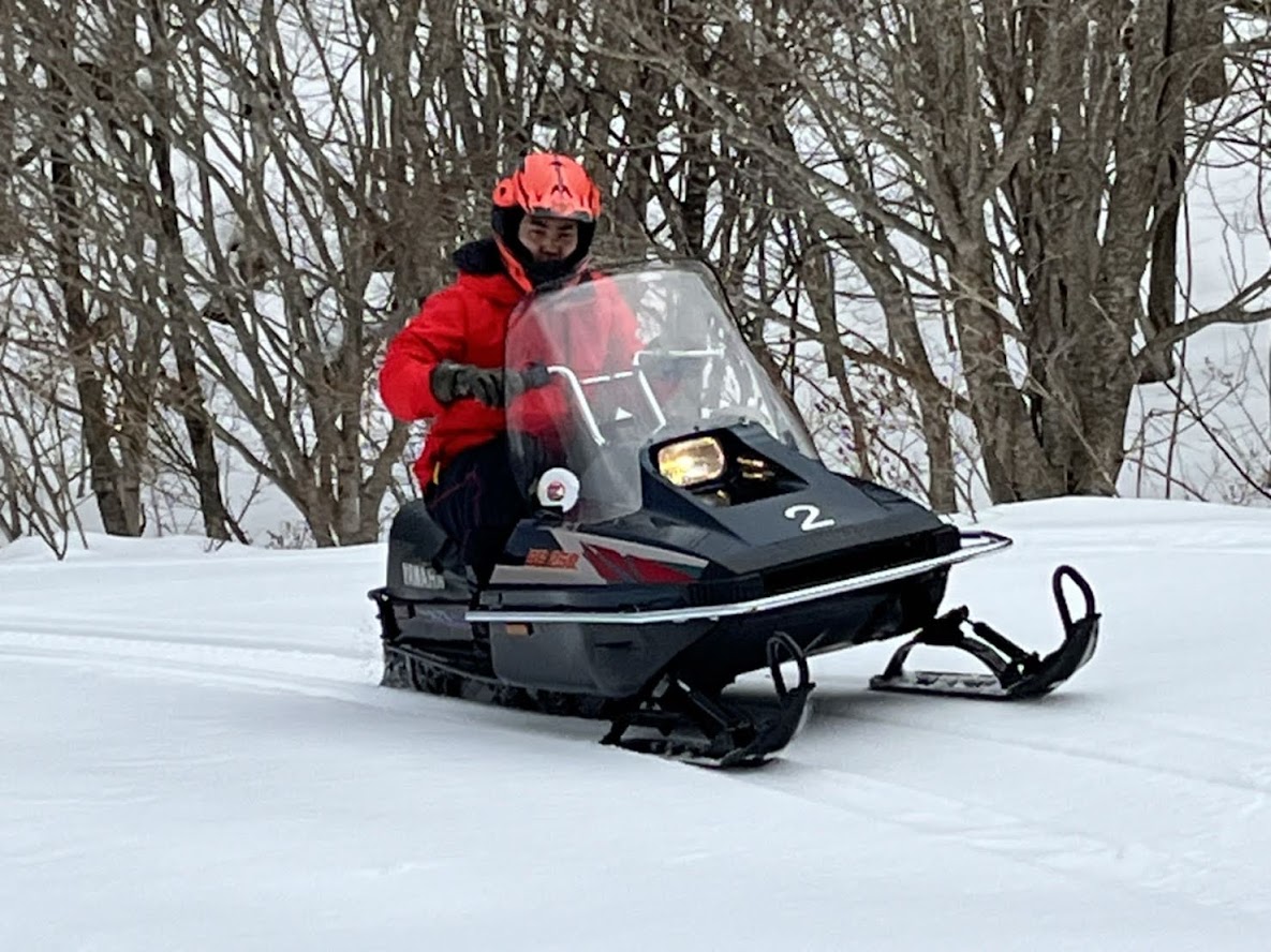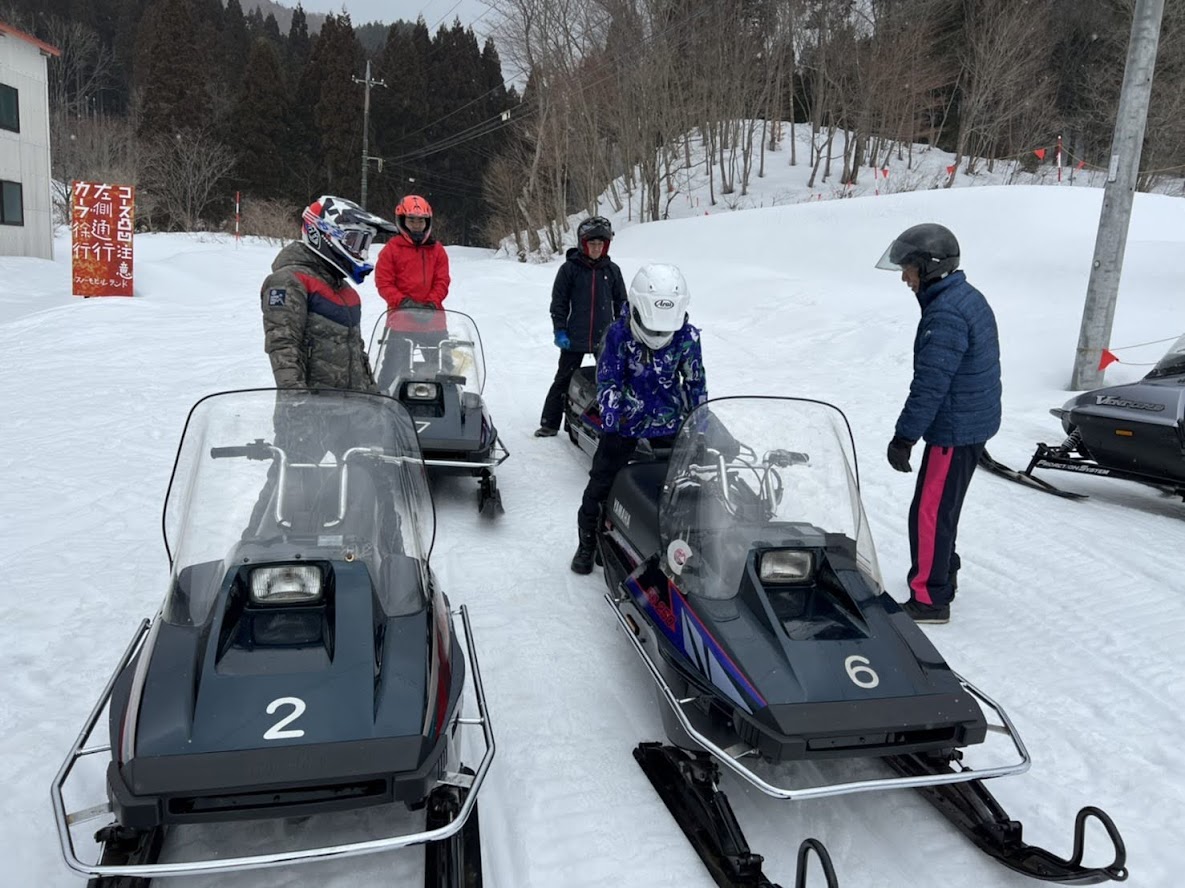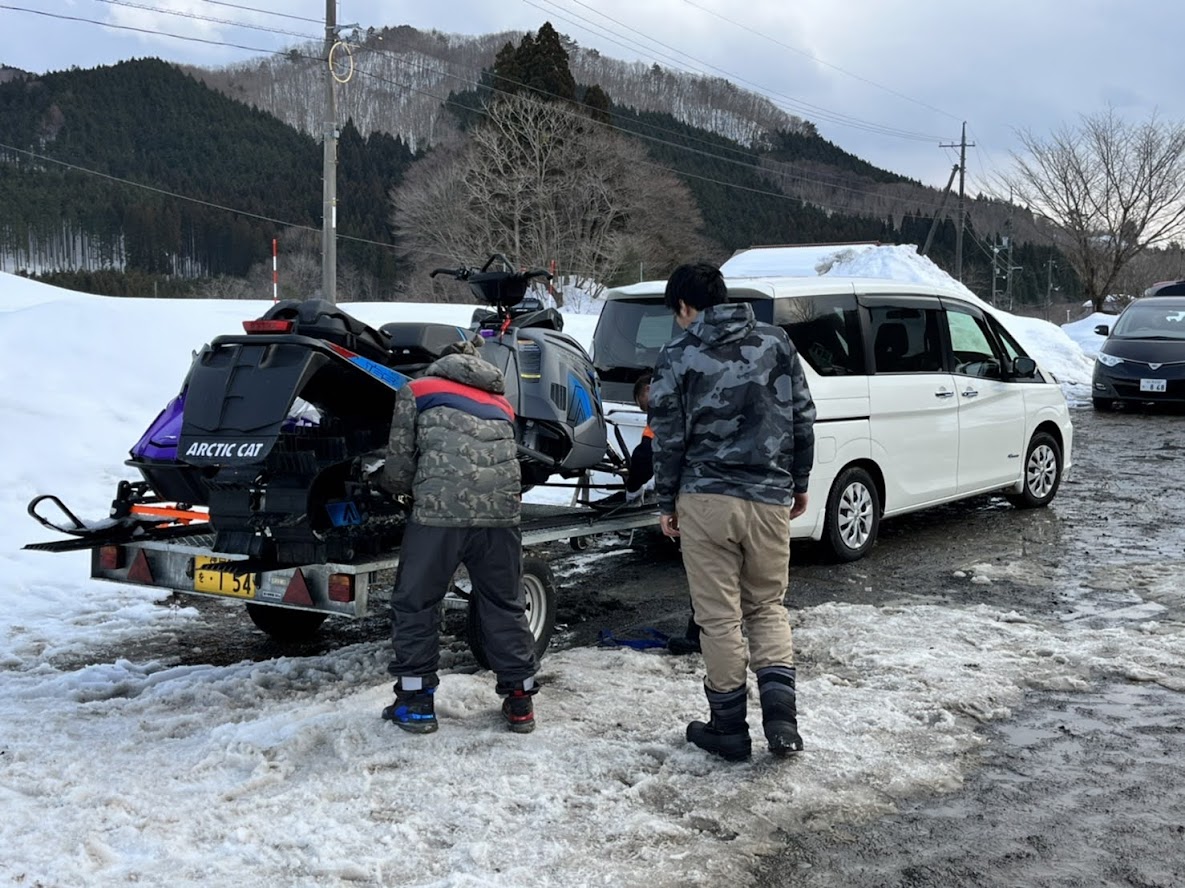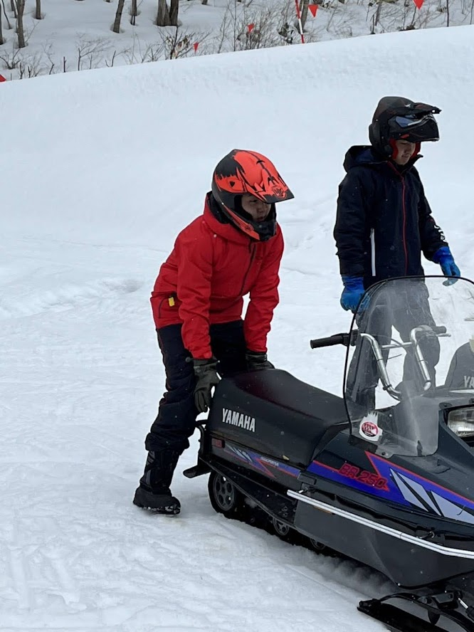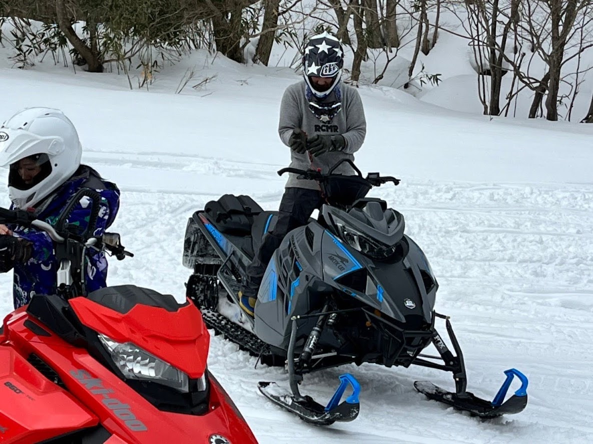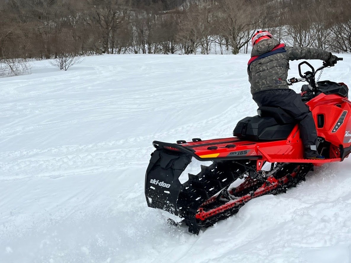 カンナムオンロードのユーザーさまからお誘いを受けて BRP の 雪のチャンネル、スキードゥ に 乗せて頂きました。 公道走行不可ですので トレーラーで引っ張ります。 Ski-Doo スノーモービル Summit X 850 E-TEC。カープカラーのモービル。 今回お邪魔したのは コチラ。 スノーモビルランド in ナチュラル泉源 さん ( 岡山県苫田郡鏡野町羽出1758-1 ) 関西以西で唯一のスノーモービル専用ゲレンデで4km~8kmまでの コースを楽しめます。モービルのレンタルもあるので 気軽に楽しめます。 これまで ウインタースポーツとは一切無縁でしたので まずは講習を受講します。 スタック時の 脱出練習。 いざ 実技。 講習車はYAMAHA の BR250。なかなかのレトロデザイン。 講習後 Ski-Doo Summit X 850 に試乗。どことなく馴染みあるデザインです。 先代のRTフェイスによく似ていますね。 真っ直ぐは問題ないですが しかしまぁ 曲がるのが難しい・・・。 ハンドル + 体重移動 が かなり必要なかんじです。 正直 スパイダー・ライカーの方が 簡単です。アークティックキャットにも乗せて頂きました。 ・・・こっちのほうが 乗りやすい気がしました。 なかでも一番操作しやすかったのはレンタル用のスノーモービル ヤマハ製の4スト500CC。 雪の質や 走るフィールドによって 向き不向きがあるそうです。 熟練者には 軽量パワフルな2サイクルが 好まれるそう。 ナチュラル泉源さんは 初心者向け の 雪質とコースだそうです。 おかげさまで ケガなく安全に楽しめました。 撤収です。 はちみつで有名な 山田養蜂場さん で休憩して帰ります。 この度は 貴重な体験をさせて頂き ありがとうございました。 一夜明けた本日、心地よい全身筋肉痛でございます。 追記 バイクブロスさんの記事に ヤマハ スノーモービルの記事が掲載されました。 バイク好きならこの冬、絶対にトライしたいスノーモービル