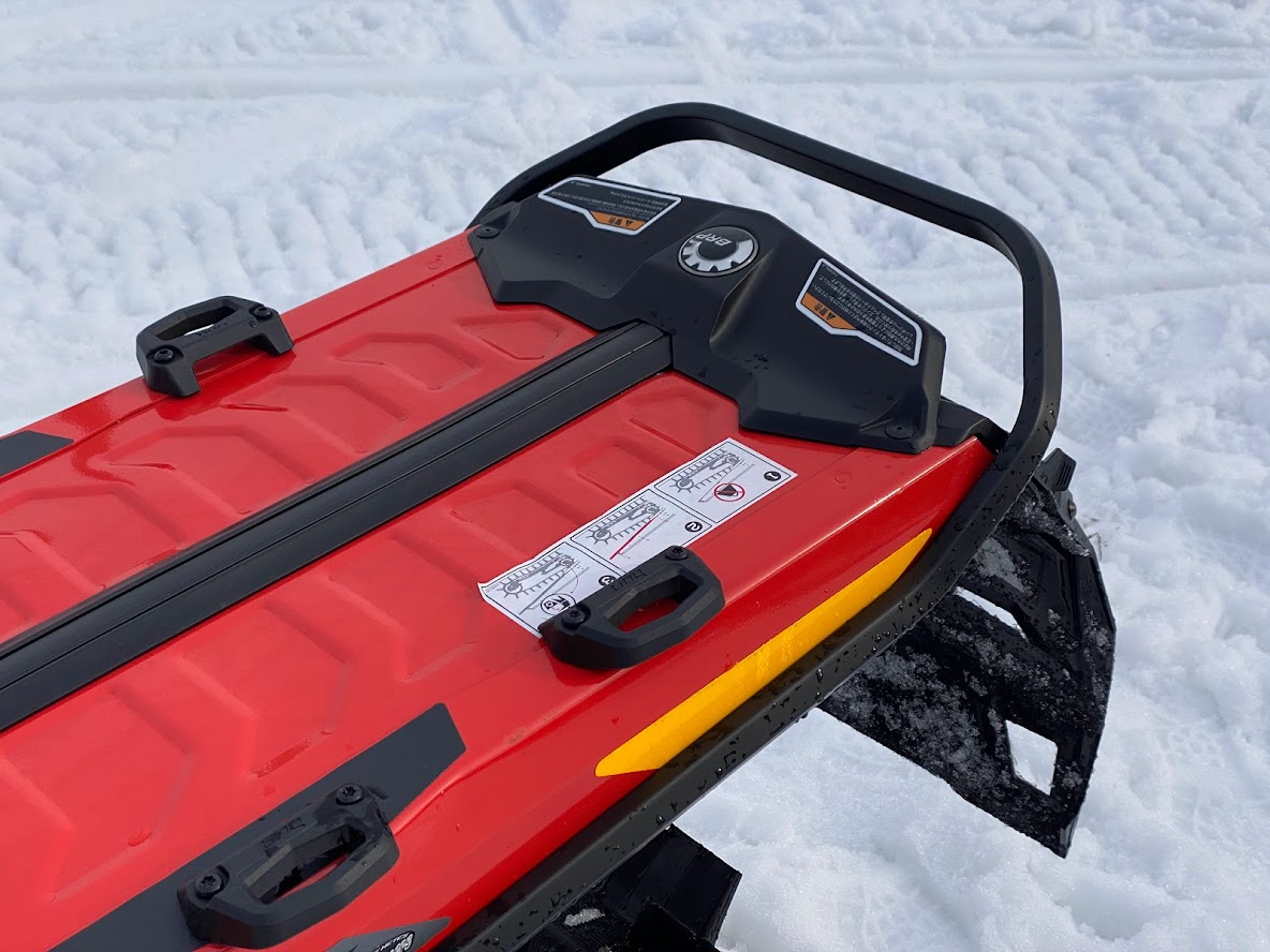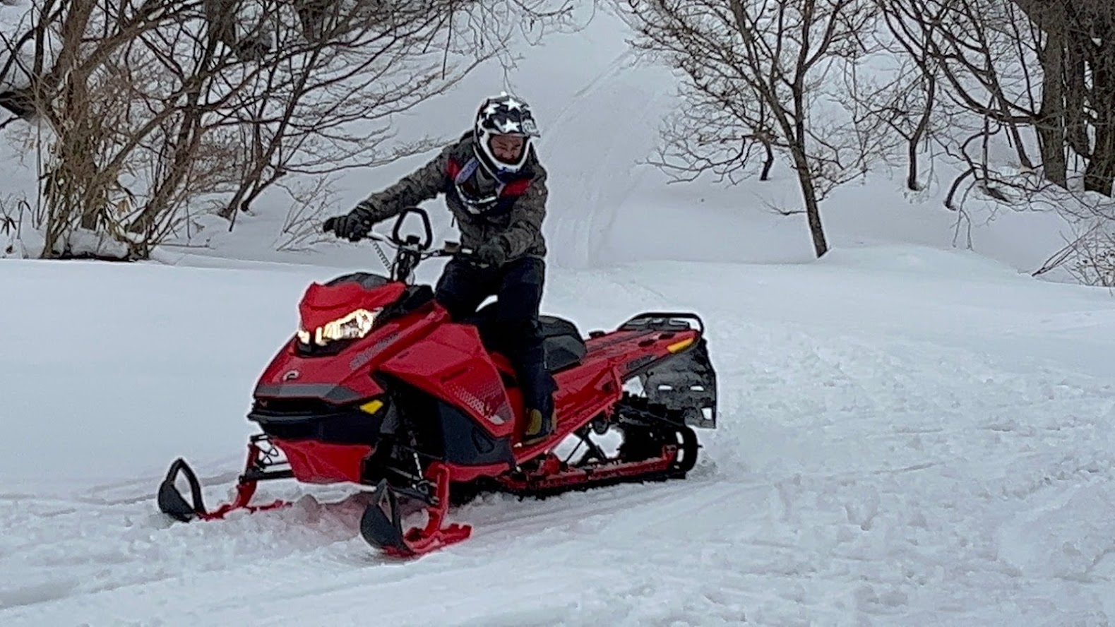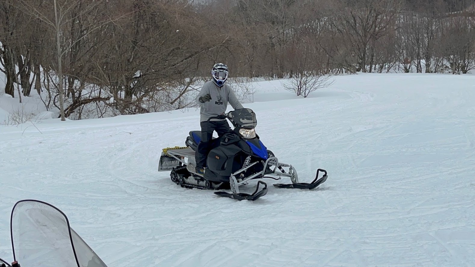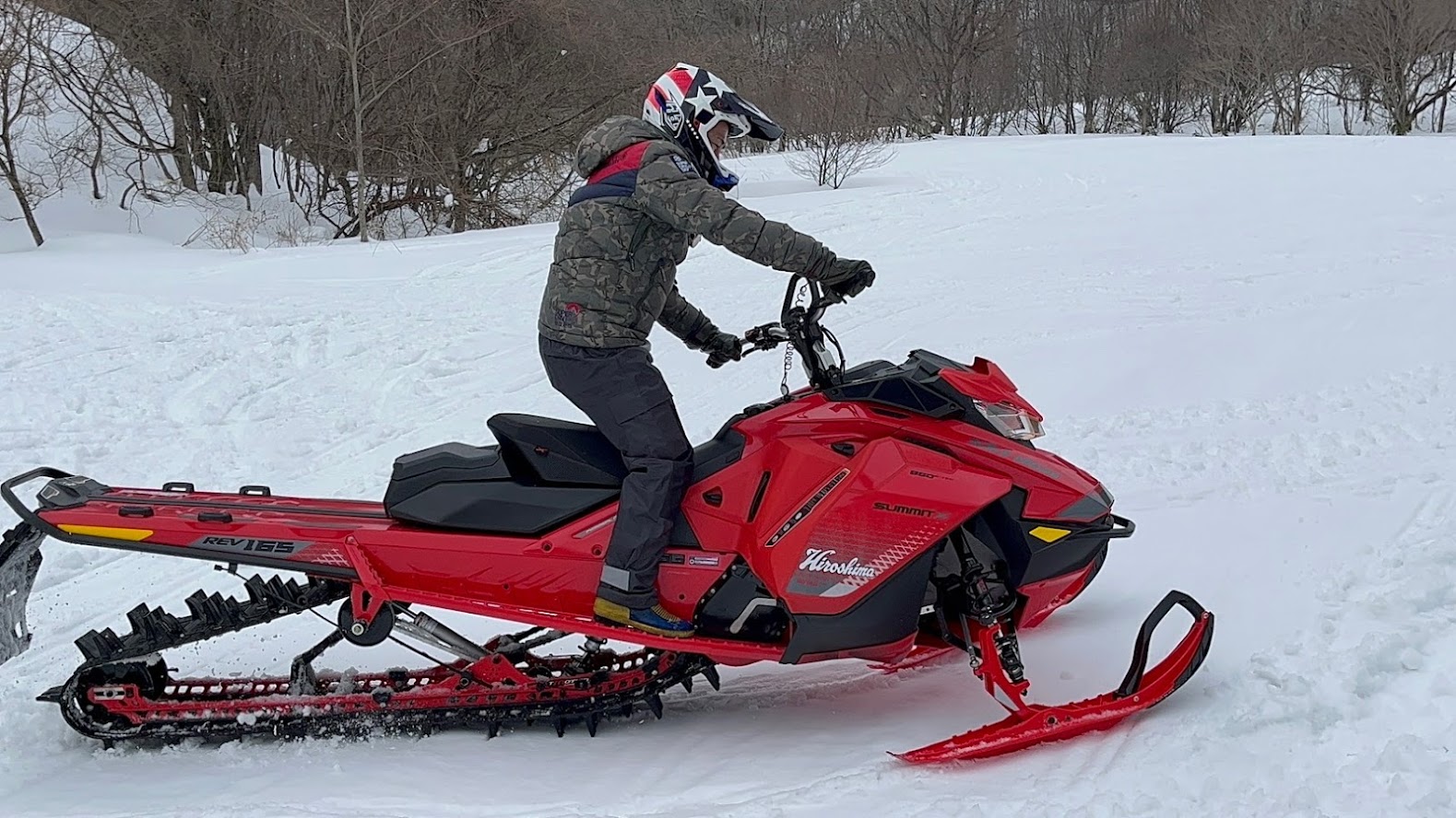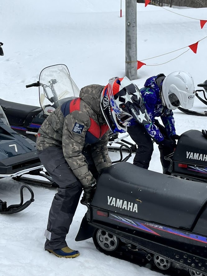 カンナムオンロードのユーザーさまからお誘いを受けて BRP の 雪のチャンネル、スキードゥ に 乗せて頂きました。 公道走行不可ですので トレーラーで引っ張ります。 Ski-Doo スノーモービル Summit X 850 E-TEC。カープカラーのモービル。 今回お邪魔したのは コチラ。 スノーモビルランド in ナチュラル泉源 さん ( 岡山県苫田郡鏡野町羽出1758-1 ) 関西以西で唯一のスノーモービル専用ゲレンデで4km~8kmまでの コースを楽しめます。モービルのレンタルもあるので 気軽に楽しめます。 これまで ウインタースポーツとは一切無縁でしたので まずは講習を受講します。 スタック時の 脱出練習。 いざ 実技。 講習車はYAMAHA の BR250。なかなかのレトロデザイン。 講習後 Ski-Doo Summit X 850 に試乗。どことなく馴染みあるデザインです。 先代のRTフェイスによく似ていますね。 真っ直ぐは問題ないですが しかしまぁ 曲がるのが難しい・・・。 ハンドル + 体重移動 が かなり必要なかんじです。 正直 スパイダー・ライカーの方が 簡単です。アークティックキャットにも乗せて頂きました。 ・・・こっちのほうが 乗りやすい気がしました。 なかでも一番操作しやすかったのはレンタル用のスノーモービル ヤマハ製の4スト500CC。 雪の質や 走るフィールドによって 向き不向きがあるそうです。 熟練者には 軽量パワフルな2サイクルが 好まれるそう。 ナチュラル泉源さんは 初心者向け の 雪質とコースだそうです。 おかげさまで ケガなく安全に楽しめました。 撤収です。 はちみつで有名な 山田養蜂場さん で休憩して帰ります。 この度は 貴重な体験をさせて頂き ありがとうございました。 一夜明けた本日、心地よい全身筋肉痛でございます。 追記 バイクブロスさんの記事に ヤマハ スノーモービルの記事が掲載されました。 バイク好きならこの冬、絶対にトライしたいスノーモービル