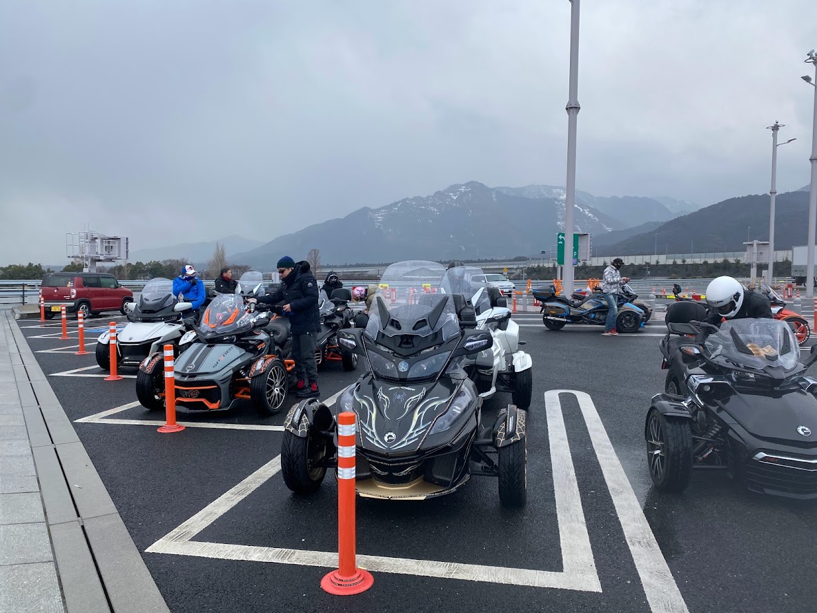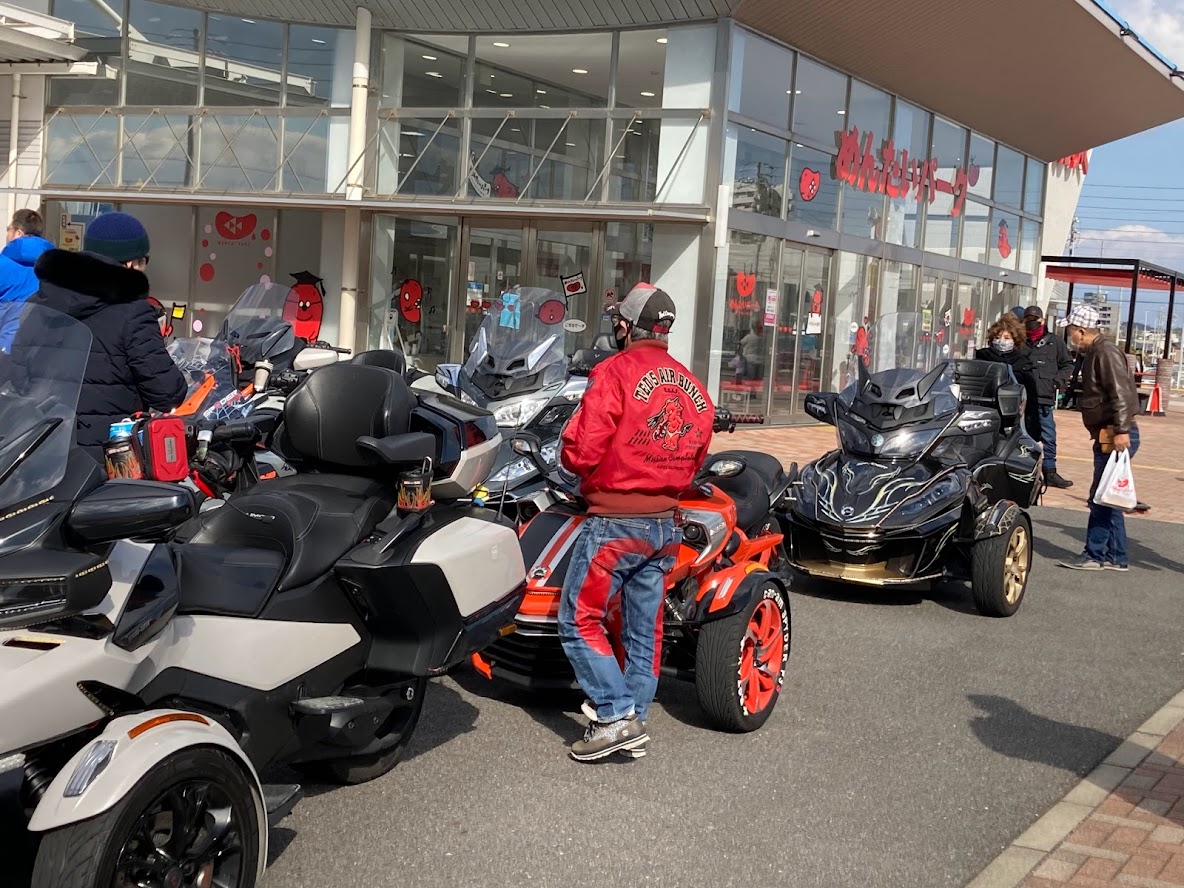 気温も上がって 気分もさらに上がってまいりました! 久しぶりに20台越えのスパツーとなりました。 鈴鹿PAの2km手前で・・・ がっつり雨に降られましたが 休憩している間に 晴れてきました。 知多半島道路 阿久比PAで 東海スパイダーズと合流です。 本隊は集合時間30分前に到着しましたが 東海スパイダーズはなんと 1時間前に 到着されていたそう・・・。 まるは食堂さんに12時着 26名様で 予約します。 大人気のお店で この時期でも 大繁盛です! ・・・予約してなければ、いまごろ 大変なことになっているとこでした。 名物巨大エビフライ。刺身もプリプリです。 食後のルートの段取りを してくださる 東海スパイダーズさま。 このあと セントレア空港方面の めんたいパークまでツーリングする事に。 かねふく めんたいパーク 駐車スペースもうまく確保。 場所柄 風は強かったですが 日が差していたので わりと快適でした。 帰りの新名神に 脚立が落ちていて 焦りました。 今回もなんとか 明るいうちに 戻れました。 来月も楽しみましょう!