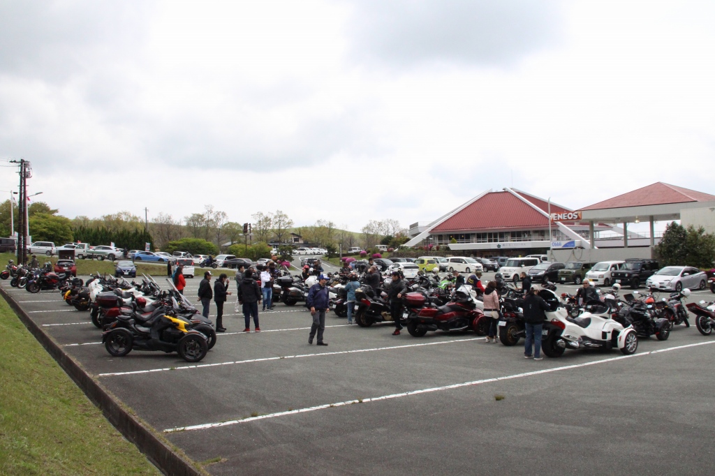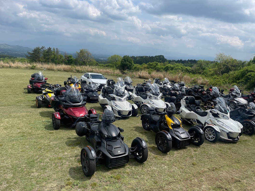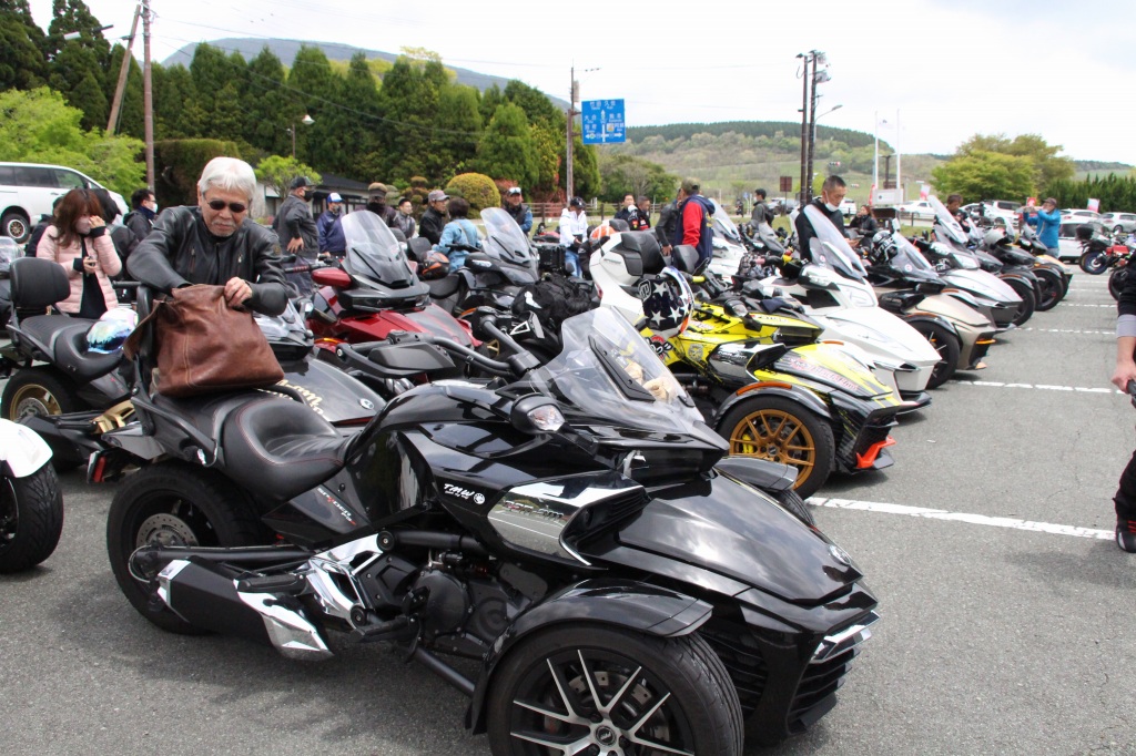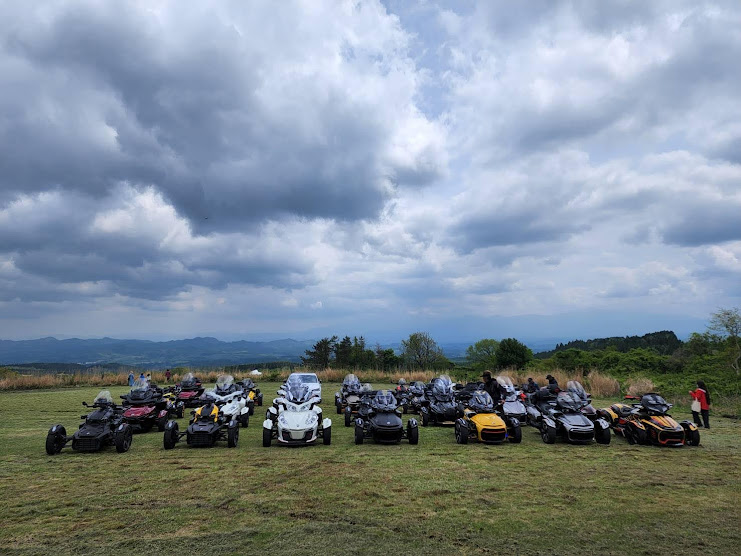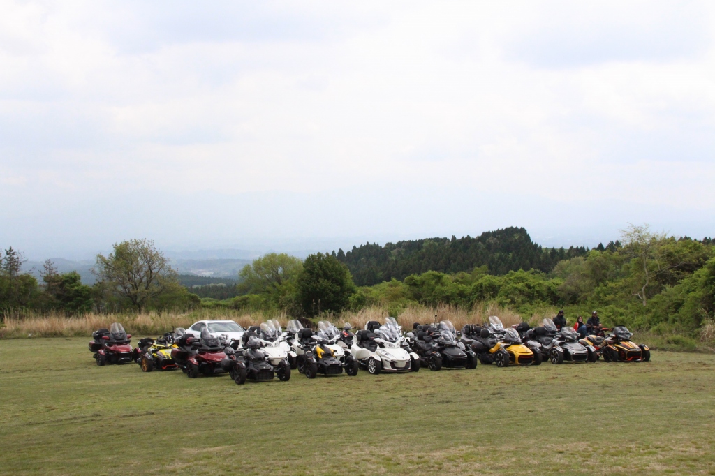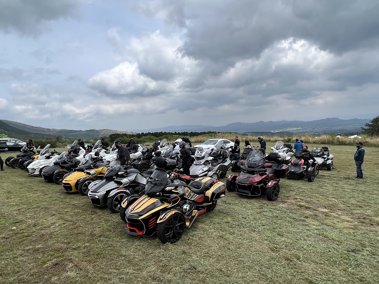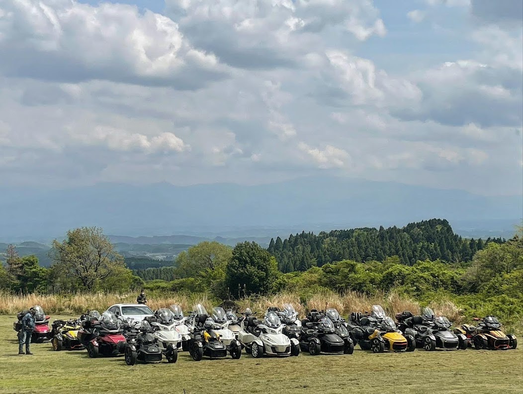 おはようございます。ただの晴れ男です(笑) 5/1の時刻は午前8時を過ぎたところです。 まもなく北九州・新門司港へ着岸します。 下船の準備を整え、ふと窓から外をのぞくと・・・ よく見てみましょう。 でた~(笑) 大分支部長の21RTですが、少し目を離したスキに・・・ よい かんじになってました。 先日ご納車させていただいた 北九州の F3S10th. オーナーさま夫婦もお迎えに来てくださいました。 合計7台 のスパイダーで 道の駅 童話の里くすへ。耶馬渓を経由します。 玖珠でも 九州スパイダーズと合流。 本来の集合場所に遅れるといけません。 少し休んで 瀬の本レストハウス へ! 到着。30分遅れちゃってすいません。 イメージしていたよりも台数が多いです・・・(笑) 最後に 鹿児島のオーナーさまと合流して 合計 27台 の スパイダー・ライカーが集まりました。 お腹が空いてきたので いそいそと ガンジーファームへ。 駐車場が 芝 です。 ランチバイキング。 ・・・あー、茶色い・・・ 食後も会話が弾みます。 このあと 阿蘇をたらふく 楽しみました。 最後に 珍しく 記念撮影 です。 夜まで 楽しい会となりました。熊本への宿泊は 12名さま。 コラコラ!楽しみ過ぎ!(笑) 完全に高校生の修学旅行でした。 明日は 熊本港から長崎は島原・雲仙経由で佐賀に向かいます。 おやすみなさい。