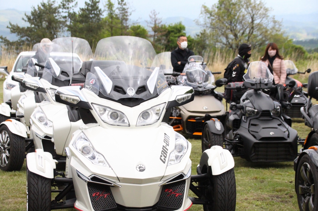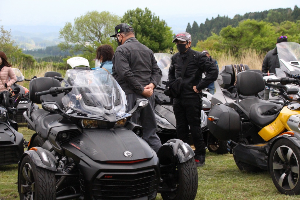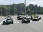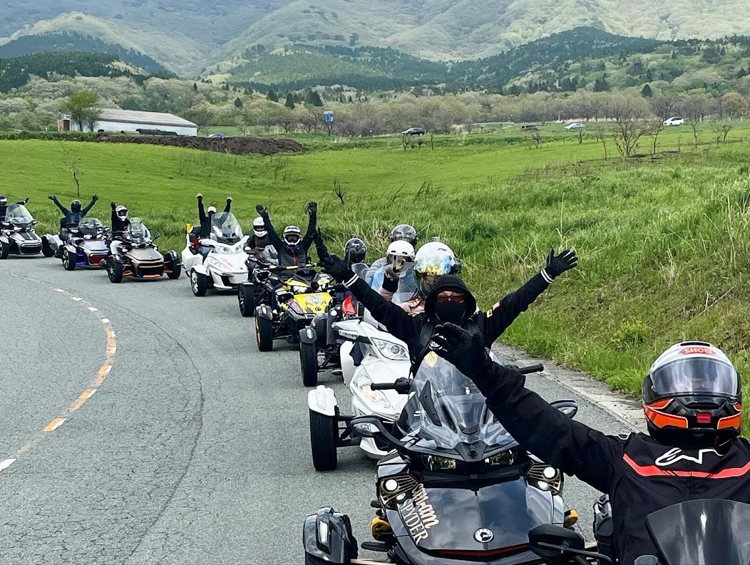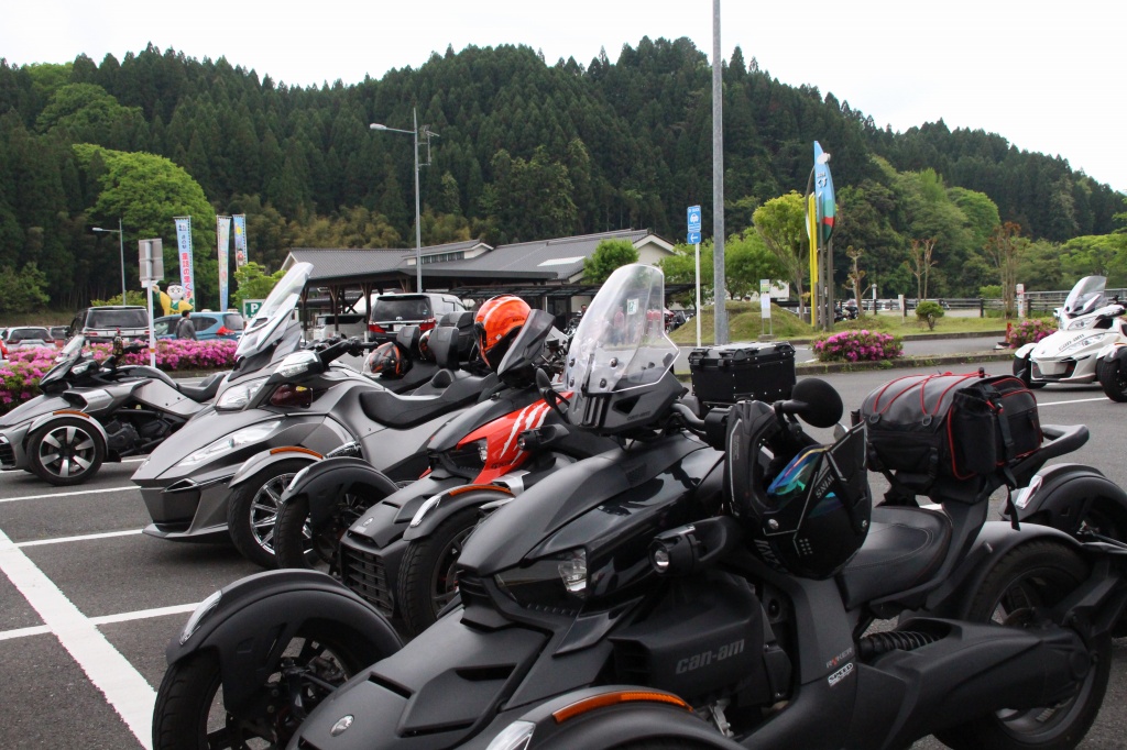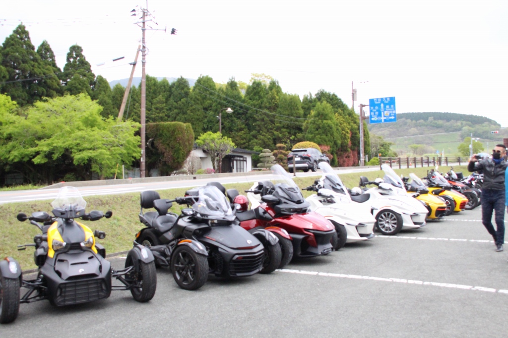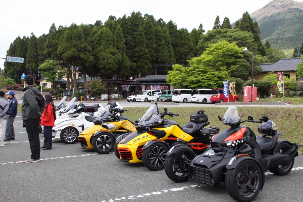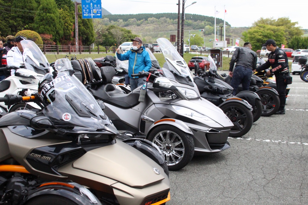 おはようございます。ただの晴れ男です(笑) 5/1の時刻は午前8時を過ぎたところです。 まもなく北九州・新門司港へ着岸します。 下船の準備を整え、ふと窓から外をのぞくと・・・ よく見てみましょう。 でた~(笑) 大分支部長の21RTですが、少し目を離したスキに・・・ よい かんじになってました。 先日ご納車させていただいた 北九州の F3S10th. オーナーさま夫婦もお迎えに来てくださいました。 合計7台 のスパイダーで 道の駅 童話の里くすへ。耶馬渓を経由します。 玖珠でも 九州スパイダーズと合流。 本来の集合場所に遅れるといけません。 少し休んで 瀬の本レストハウス へ! 到着。30分遅れちゃってすいません。 イメージしていたよりも台数が多いです・・・(笑) 最後に 鹿児島のオーナーさまと合流して 合計 27台 の スパイダー・ライカーが集まりました。 お腹が空いてきたので いそいそと ガンジーファームへ。 駐車場が 芝 です。 ランチバイキング。 ・・・あー、茶色い・・・ 食後も会話が弾みます。 このあと 阿蘇をたらふく 楽しみました。 最後に 珍しく 記念撮影 です。 夜まで 楽しい会となりました。熊本への宿泊は 12名さま。 コラコラ!楽しみ過ぎ!(笑) 完全に高校生の修学旅行でした。 明日は 熊本港から長崎は島原・雲仙経由で佐賀に向かいます。 おやすみなさい。