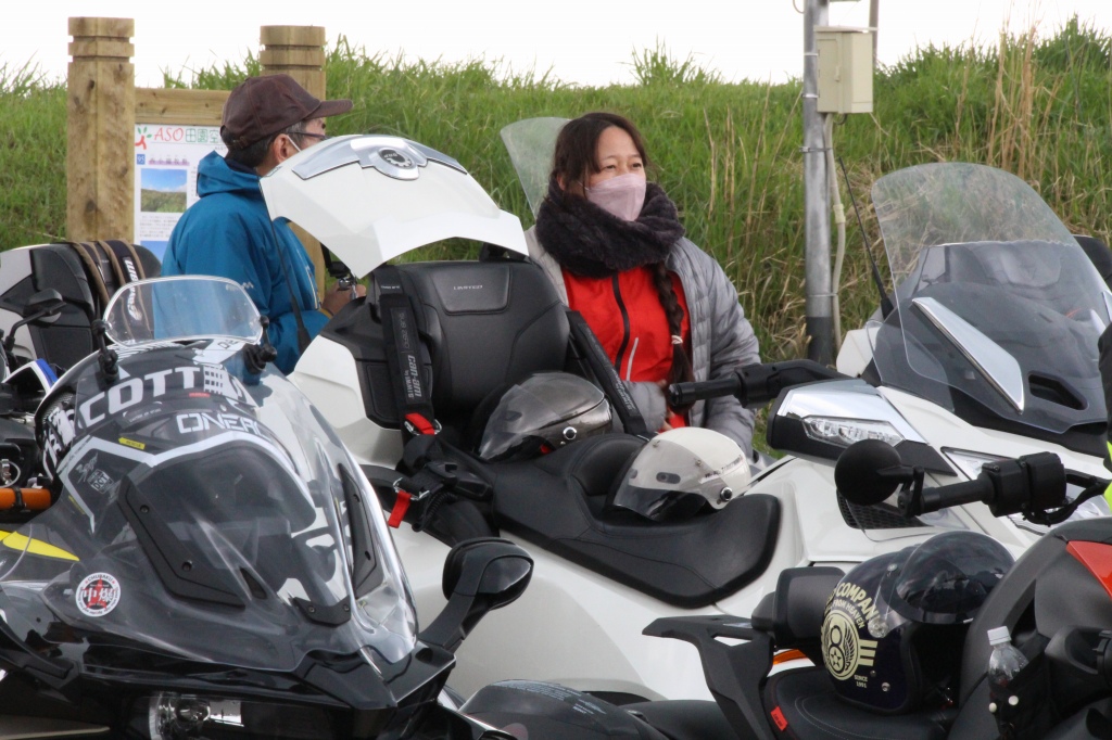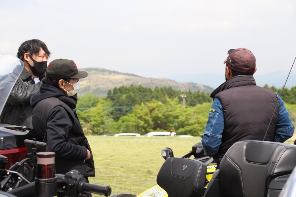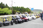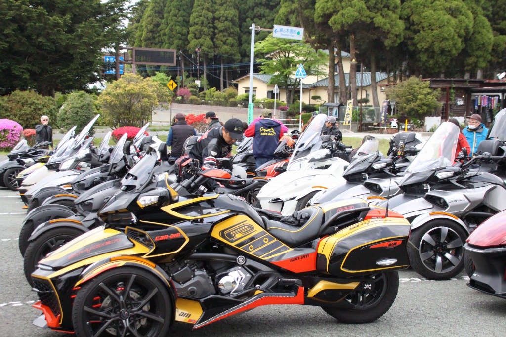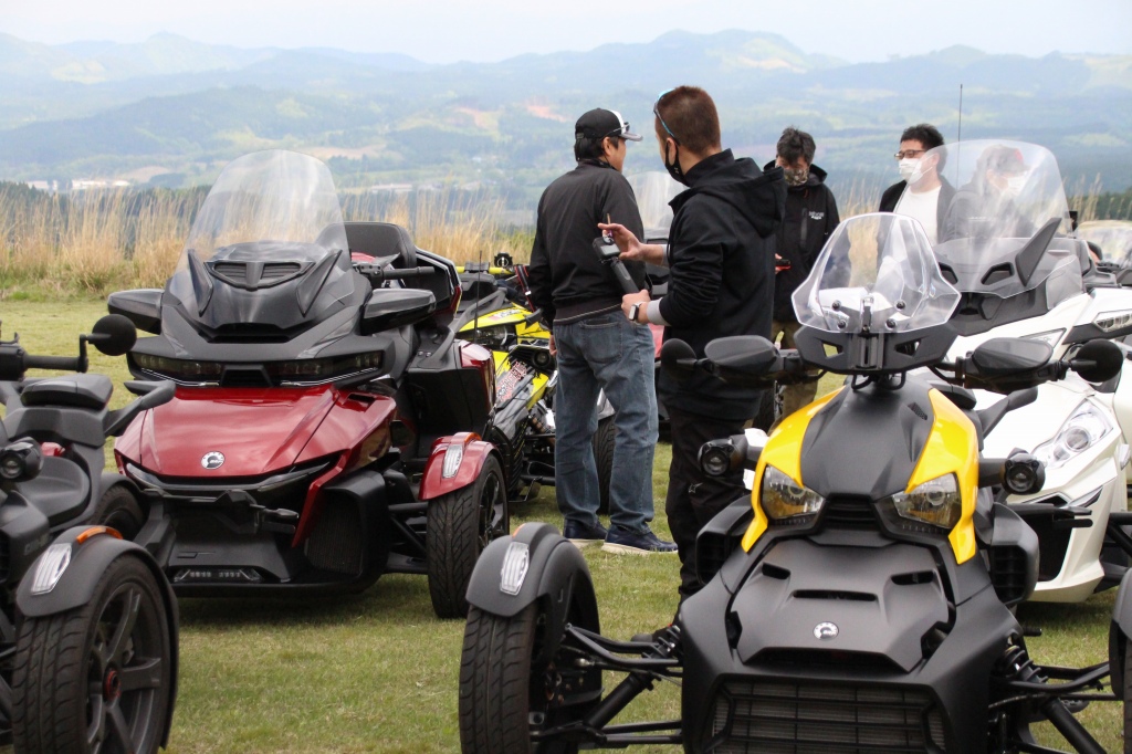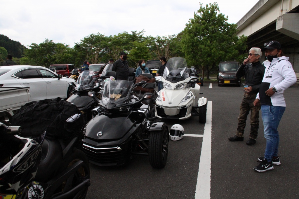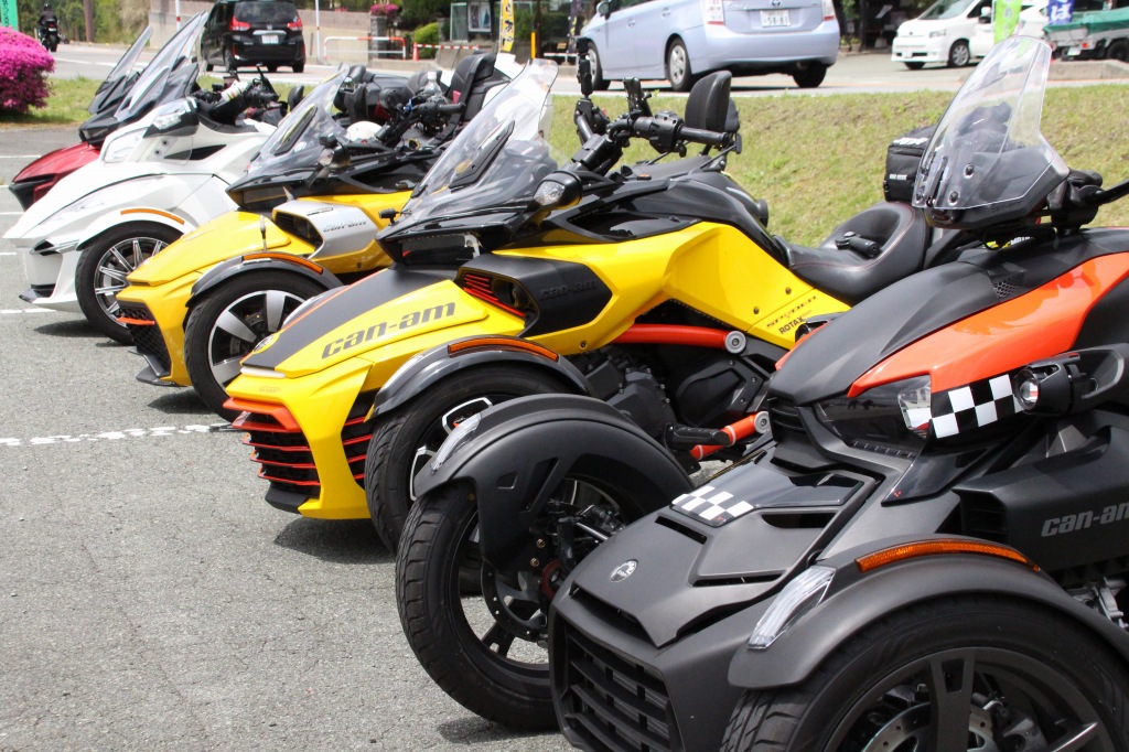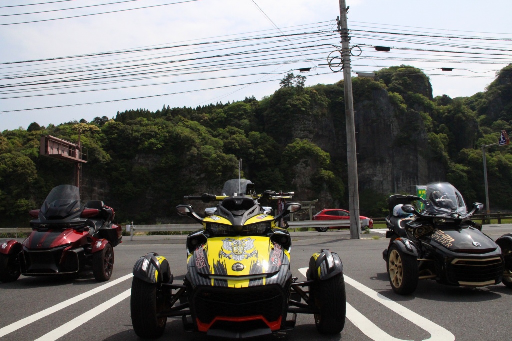 おはようございます。ただの晴れ男です(笑) 5/1の時刻は午前8時を過ぎたところです。 まもなく北九州・新門司港へ着岸します。 下船の準備を整え、ふと窓から外をのぞくと・・・ よく見てみましょう。 でた~(笑) 大分支部長の21RTですが、少し目を離したスキに・・・ よい かんじになってました。 先日ご納車させていただいた 北九州の F3S10th. オーナーさま夫婦もお迎えに来てくださいました。 合計7台 のスパイダーで 道の駅 童話の里くすへ。耶馬渓を経由します。 玖珠でも 九州スパイダーズと合流。 本来の集合場所に遅れるといけません。 少し休んで 瀬の本レストハウス へ! 到着。30分遅れちゃってすいません。 イメージしていたよりも台数が多いです・・・(笑) 最後に 鹿児島のオーナーさまと合流して 合計 27台 の スパイダー・ライカーが集まりました。 お腹が空いてきたので いそいそと ガンジーファームへ。 駐車場が 芝 です。 ランチバイキング。 ・・・あー、茶色い・・・ 食後も会話が弾みます。 このあと 阿蘇をたらふく 楽しみました。 最後に 珍しく 記念撮影 です。 夜まで 楽しい会となりました。熊本への宿泊は 12名さま。 コラコラ!楽しみ過ぎ!(笑) 完全に高校生の修学旅行でした。 明日は 熊本港から長崎は島原・雲仙経由で佐賀に向かいます。 おやすみなさい。