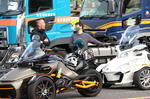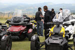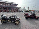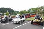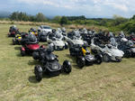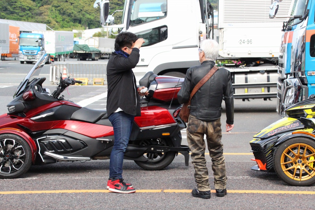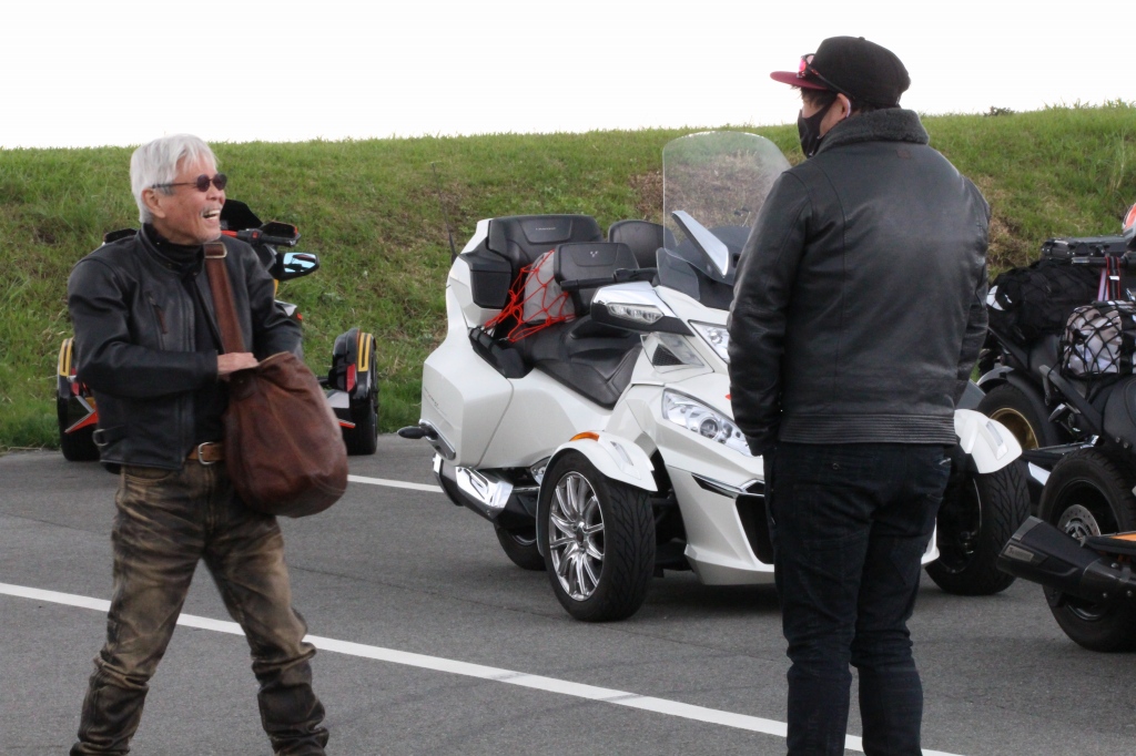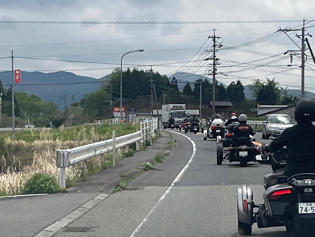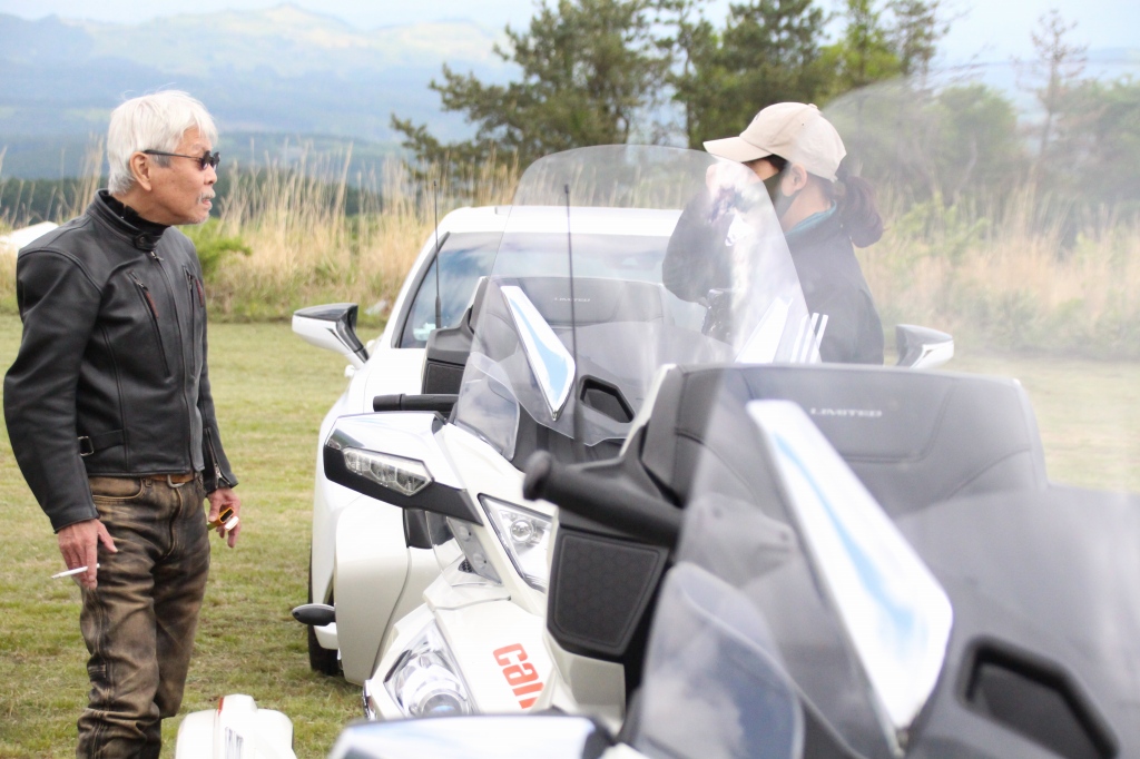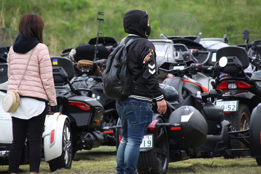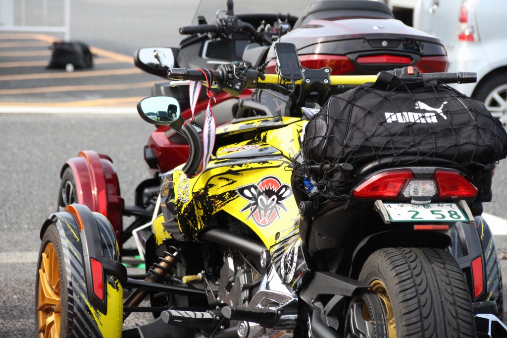 おはようございます。ただの晴れ男です(笑) 5/1の時刻は午前8時を過ぎたところです。 まもなく北九州・新門司港へ着岸します。 下船の準備を整え、ふと窓から外をのぞくと・・・ よく見てみましょう。 でた~(笑) 大分支部長の21RTですが、少し目を離したスキに・・・ よい かんじになってました。 先日ご納車させていただいた 北九州の F3S10th. オーナーさま夫婦もお迎えに来てくださいました。 合計7台 のスパイダーで 道の駅 童話の里くすへ。耶馬渓を経由します。 玖珠でも 九州スパイダーズと合流。 本来の集合場所に遅れるといけません。 少し休んで 瀬の本レストハウス へ! 到着。30分遅れちゃってすいません。 イメージしていたよりも台数が多いです・・・(笑) 最後に 鹿児島のオーナーさまと合流して 合計 27台 の スパイダー・ライカーが集まりました。 お腹が空いてきたので いそいそと ガンジーファームへ。 駐車場が 芝 です。 ランチバイキング。 ・・・あー、茶色い・・・ 食後も会話が弾みます。 このあと 阿蘇をたらふく 楽しみました。 最後に 珍しく 記念撮影 です。 夜まで 楽しい会となりました。熊本への宿泊は 12名さま。 コラコラ!楽しみ過ぎ!(笑) 完全に高校生の修学旅行でした。 明日は 熊本港から長崎は島原・雲仙経由で佐賀に向かいます。 おやすみなさい。
