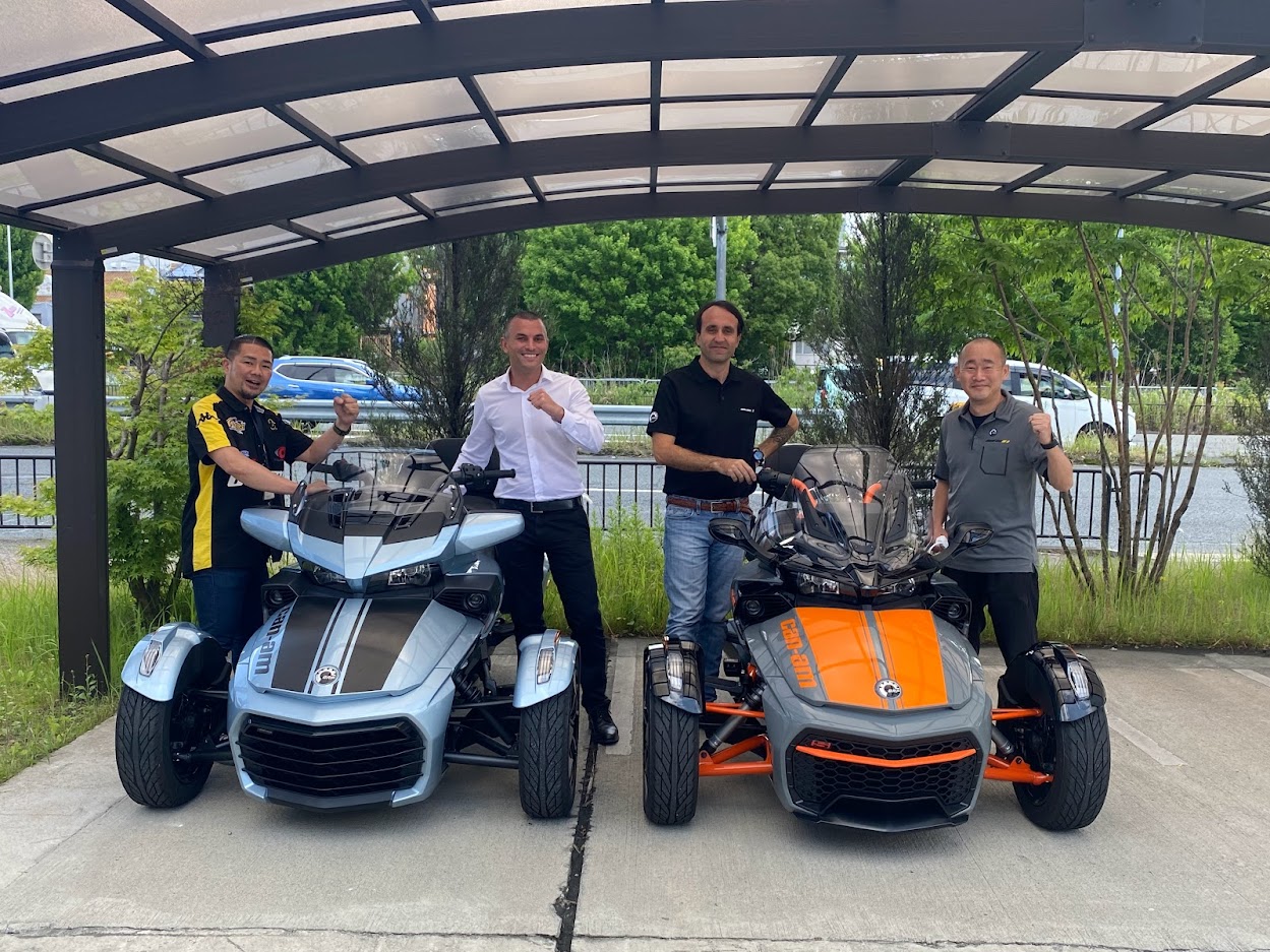 記念撮影。 えっと、右から順に BRP Japan Sales Manager BRP Regional Commercial Manager EAPI & JAPAN BRP Derector & Regional General Manager ASIA-PACIFIC サッシュの人。なのですが、 これ、ただの知らない人が見たら、 イタリア セリエBくらいの 通訳 イタリア セリエBくらいの 監督 イタリア セリエBくらいの スター選手 イタリア セリエB くらいの サポーター代表。みたいな写真になっちゃってる。 現場からは以上です。 海外からも 行き来ができるようになり、 ようやく動き出したかんじですね。 さて、久し振りに 入荷しました。 ★ MY14 RT-Limited Platinum satin silver ★ 記念すべき 国内導入初年度の2014年モデル、 当時の最上級グレード RTリミテッド。 ガーミンナビ フロントトラベルバッグ 左右パニア用 バッグが標準装備。 ETC・USBポート・バックレスト・アジャストハンドル等 オプションパーツも充実しています。 走行距離は・・・ 7576km。しかも室内専用ガレージ保管車両になります。 新車1オーナー・メンテナンス履歴もしっかりです。 新車価格が400万に迫る勢いの今日。 中古車はお手軽に楽しめる価格帯に設定します!・・・多分。 現在メンテナンス中ですので GOOバイクに掲載されるまで 今しばらくお待ちくださいませ。 もちろん 電話問い合わせも 大歓迎です!