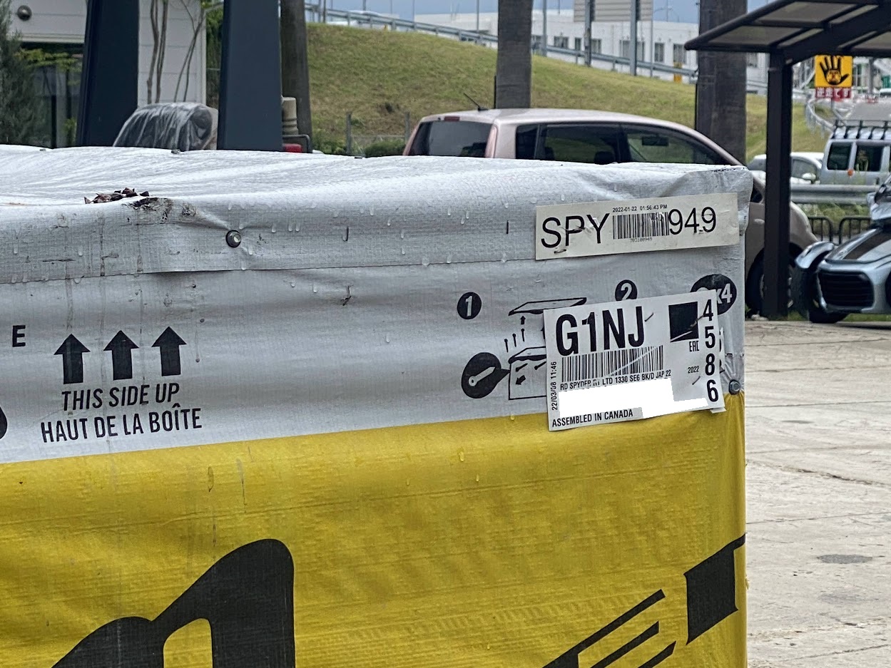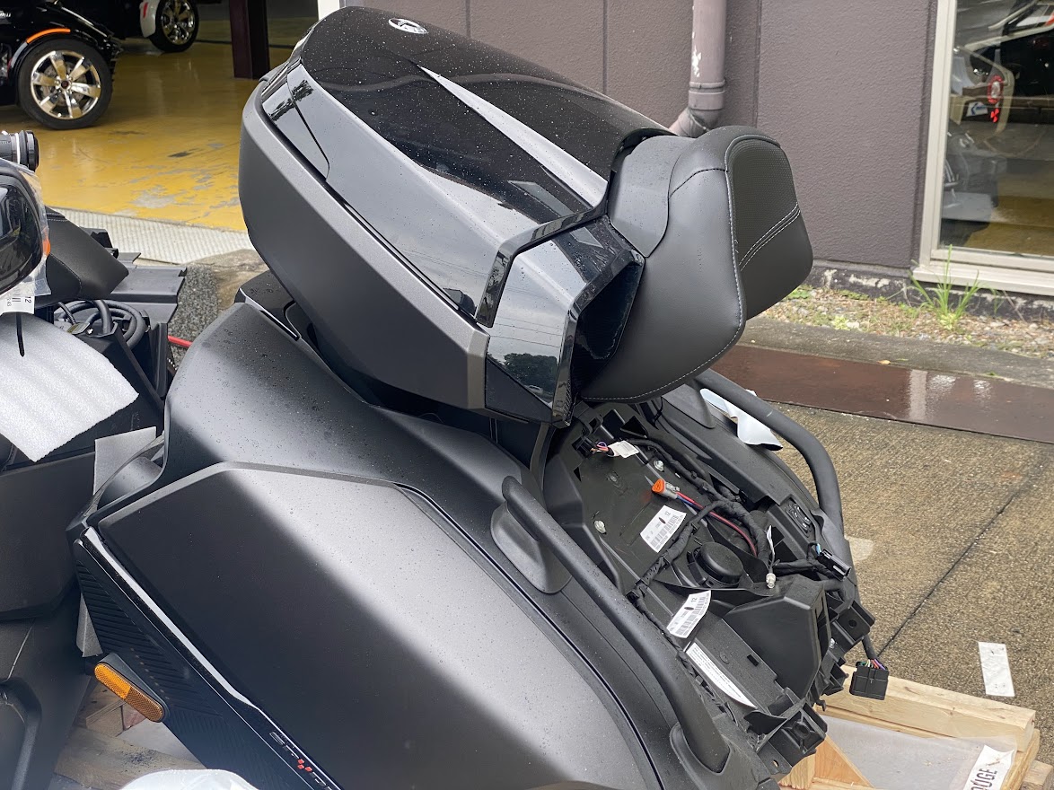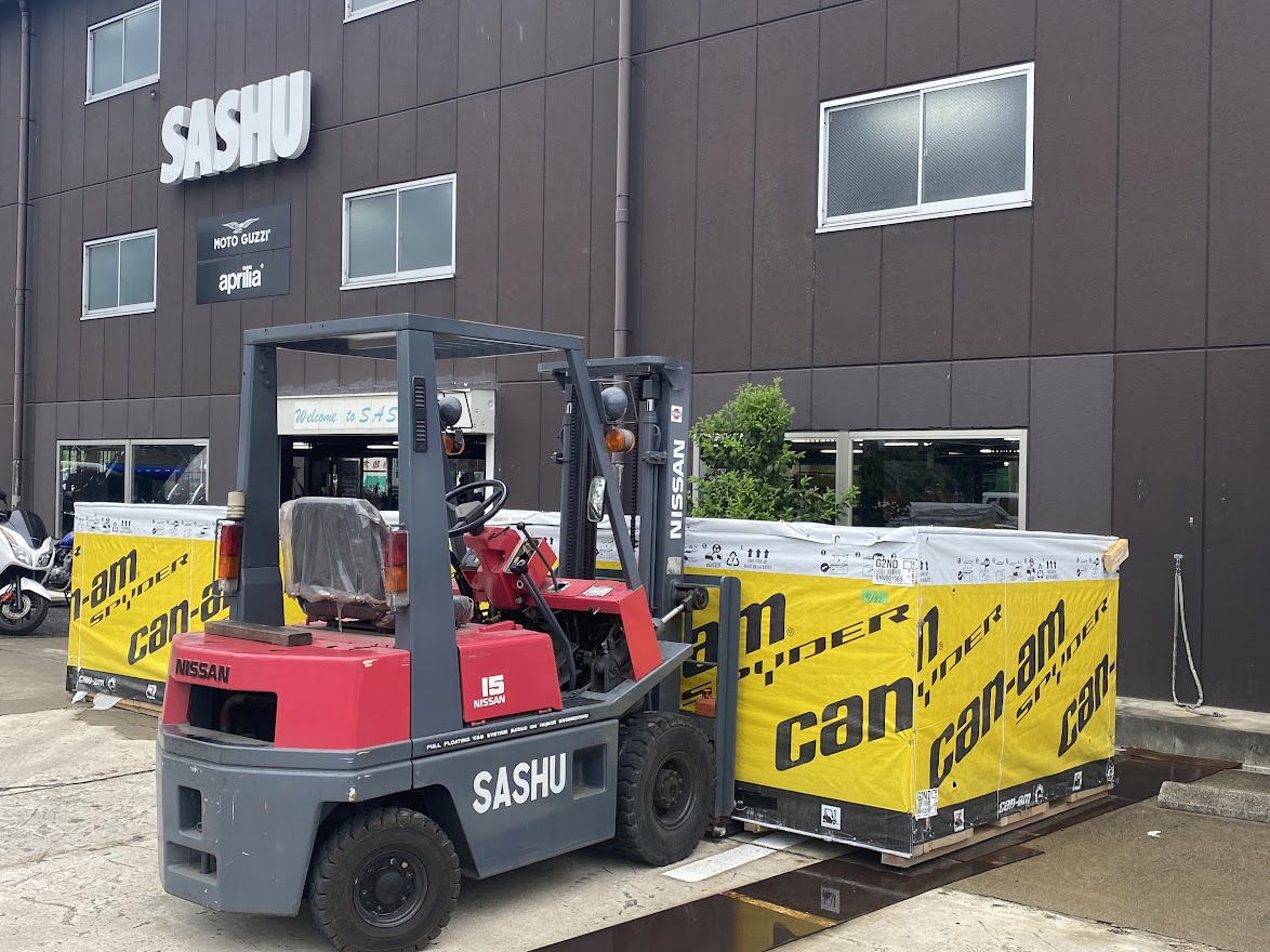 お待たせいたしました!!!! 2箱到着しました!!!! どれどれ・・・ ラベルを見ると・・・ひとつ目は SPYDER RT LTD 1330 SE6 BK/D JAP 22 BK/D JAP 22 2022年モデルの RTリミテッド カーボンブラック。 ようこそ日本へ、おこしやす京都。 ちょっと 雨降っちゃってすいません・・・。 こちらの車両は 4月からお待ちいただいたお客様の元へ 大急ぎで準備です。カーボンブラックの存在感はヤバいです・・・。 店頭でご覧いただけますが お触り厳禁にて ひとつお願いいたします。