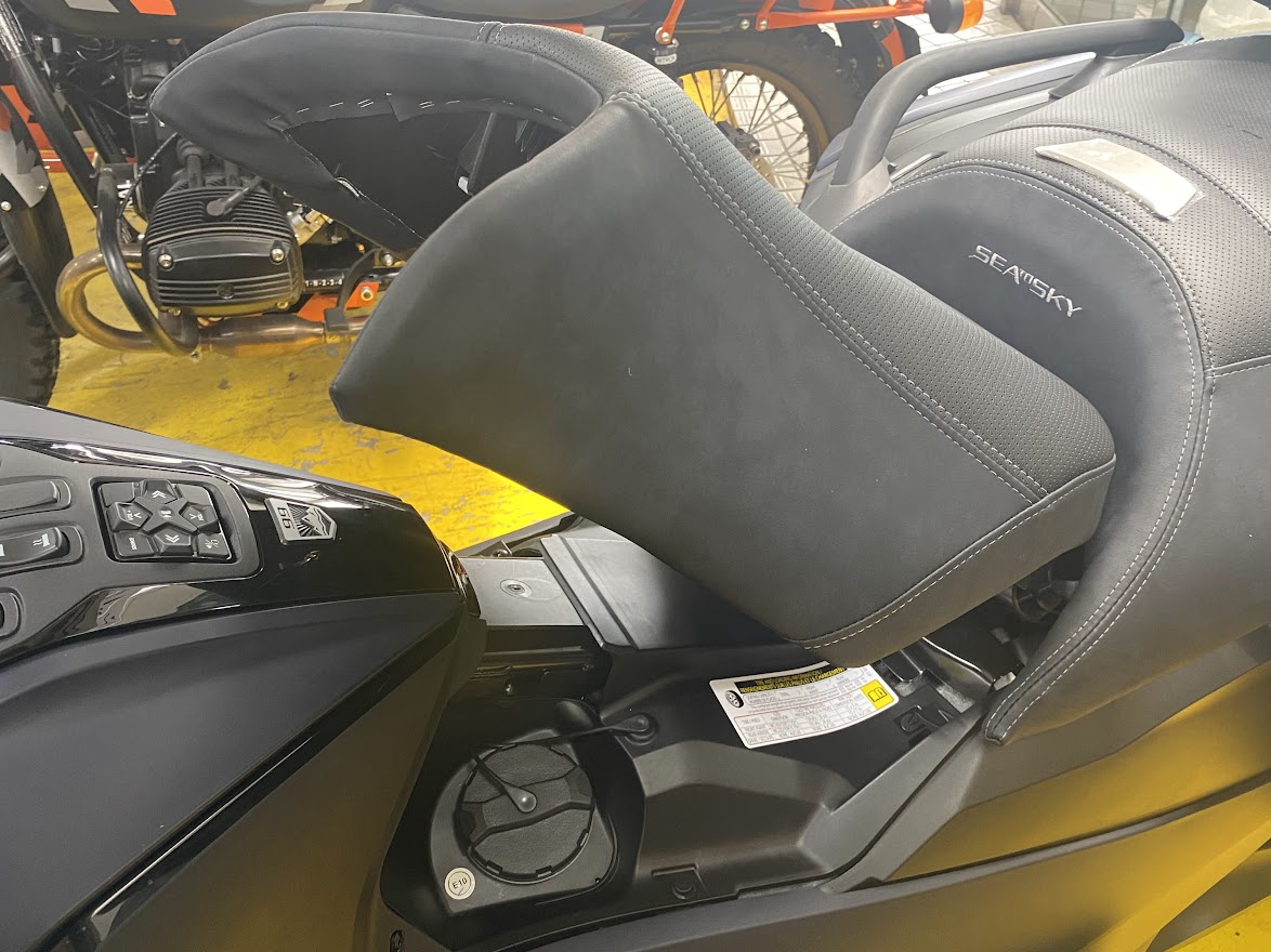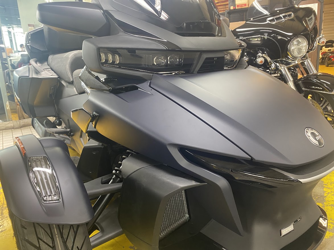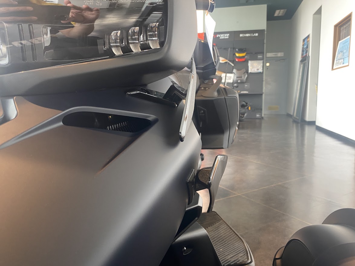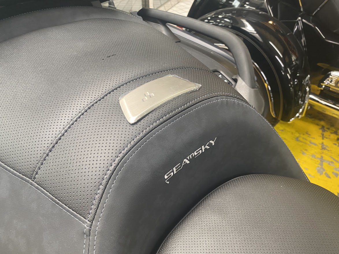 少し前に 22 RT Sea to Sky カラーの ミステリー・ブルー に 染め上げましたが あ、カラーは だいたい セルフです。 だいたい1週間くらいで・・・ 22 RTリミテッド の ハイパー・シルバー に 落ち着きます。 色落ちを予測して 染め粉 を お選びください。 そんなわけで MY22 RT Sea to Sky を 少し見てみましょう。 まずは 新デザインのフロントホイール。 落ち着きと高級感が増しました。 あと、いままで トップケース に 転がっていた トランク脱着用工具が・・・ 固定出来るようになっております。 USBポートの位置も変更されています。 驚いたのが・・・ コンフォートシートの厚み と 給油時のシート開口部が広がりました。 あとドライバーバックレスト用の ブラインドキャップ が いちいち かっこよい。 ※カタログにドライバーバックレスト付き となってましたが 付属しません。 買ってください。 ルート99バッジ と Sea to Sky バッジ は 継続して装着されます。 フロントカーゴ用のトラベルバッグ、 トランク脱着後の リアボンネット も付属します。 上下のアジャスタブル サイドデフレクターも 標準装備。 ミステリーブルーの ミステリー感 と ブルー感 を 店頭でご確認ください。 カーボンブラックとハイパーシルバーの車両入荷までしばらくお待ちください。 今となっては すげー お得な気がする、いや すげーお得な、 MY20 RT-LTD チョークメタリック 車両本体価格350万円税込 残り1台 在庫あります