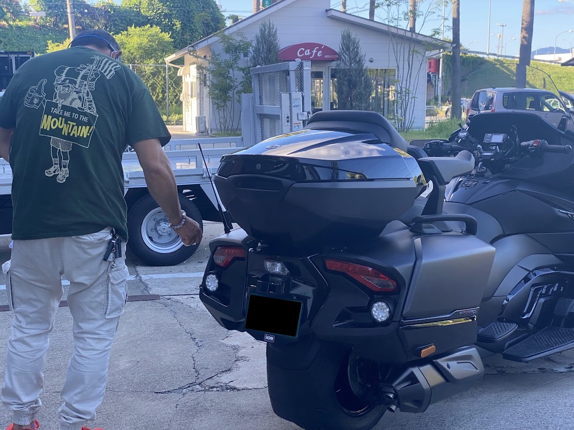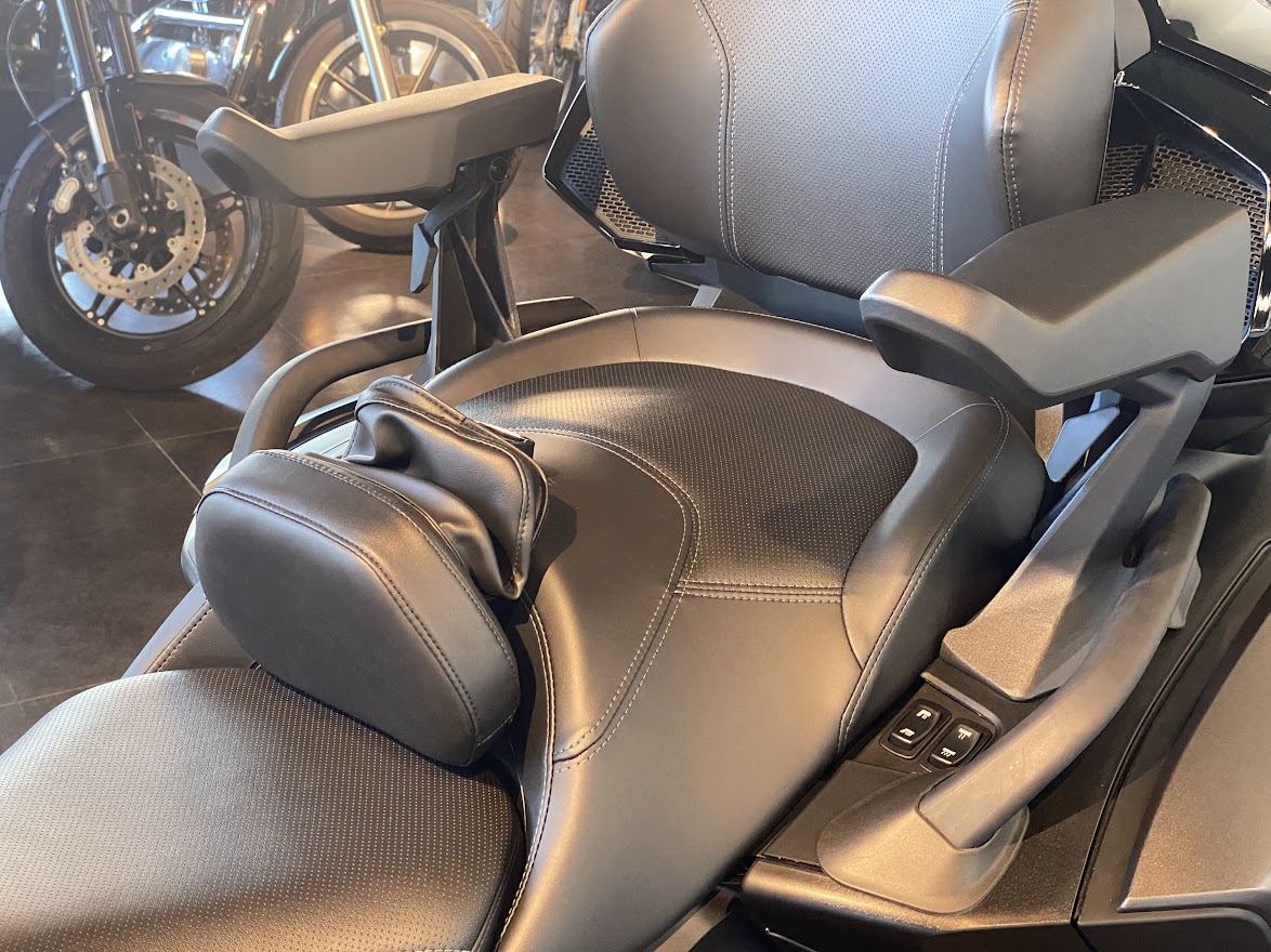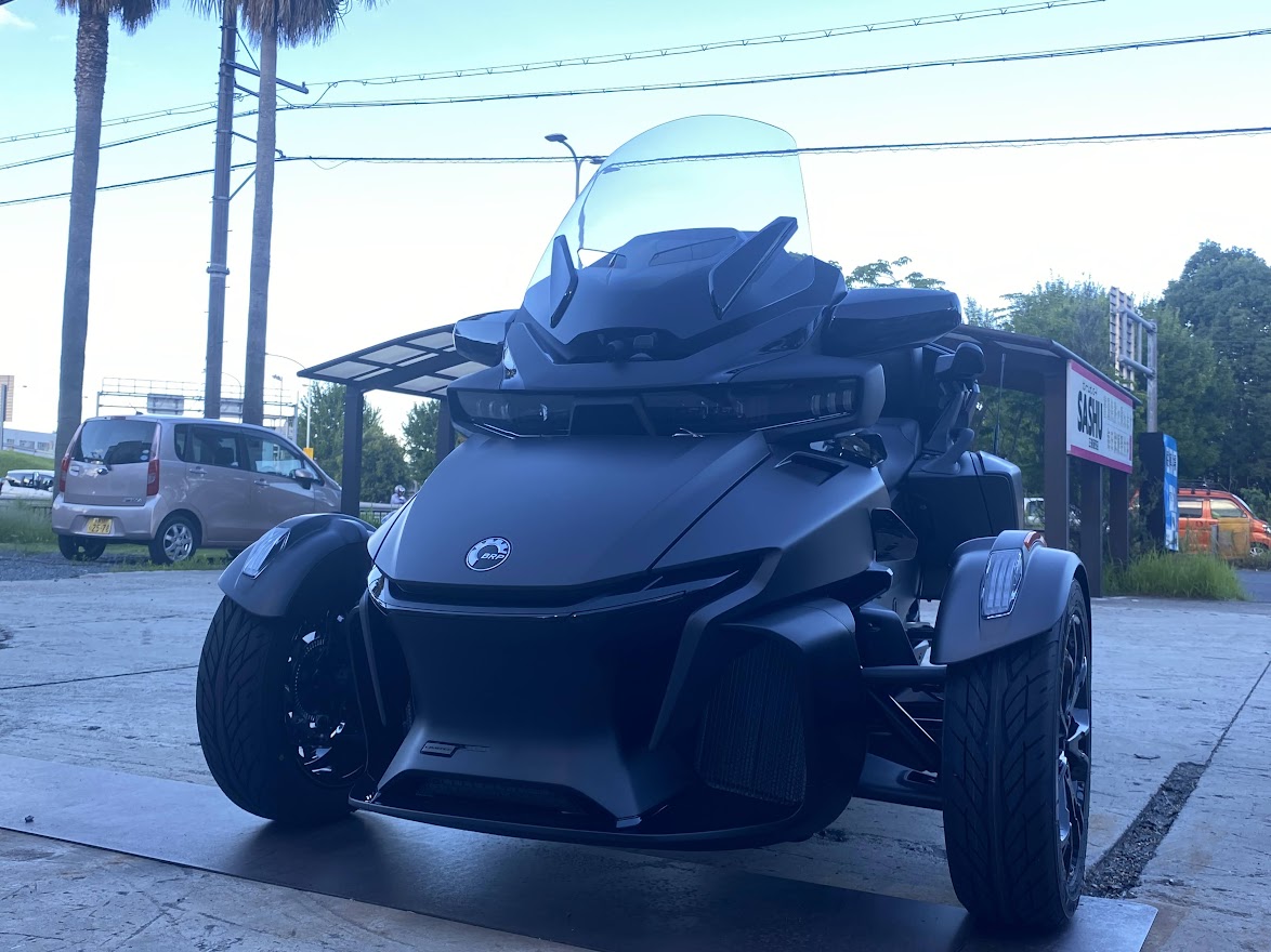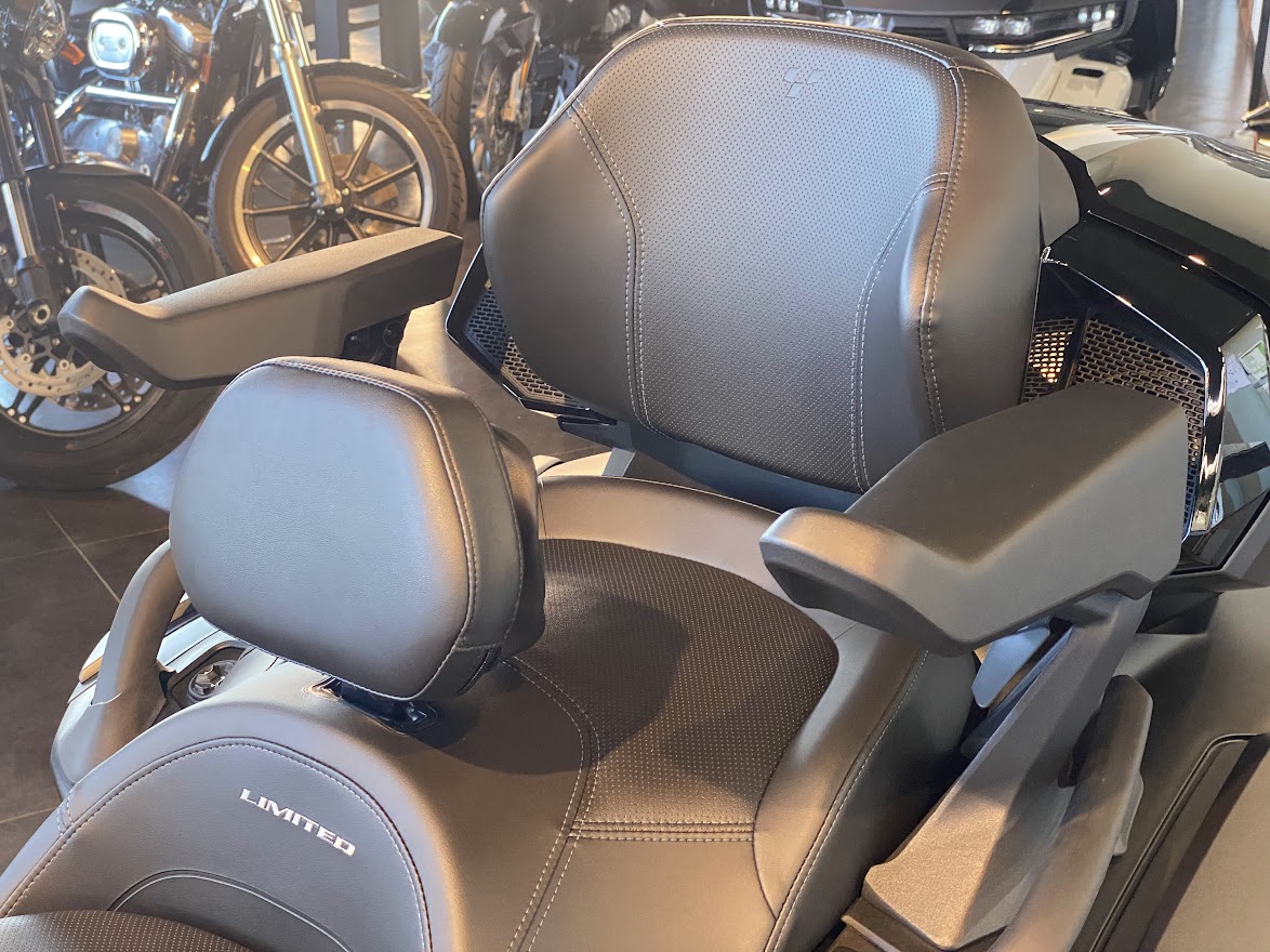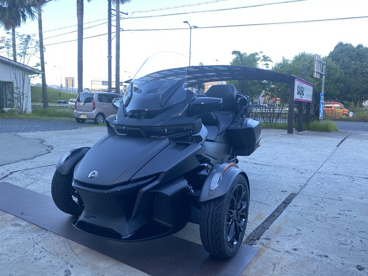明日は 定例カンナムツーリングとなります。 目的地がスライドしておりますので くれぐれも今夜サッシュにお集まりいただくことの無いように お願いします。なんもイベントないです。 ご契約いただいてから 107日。。。煩悩の数と同じくらいかかってしまいました。 MY22 RT-LTD Carbon Bkack、いよいよシェイクダウンです。 日本上陸が幻になりそうな アナウンスさえありましたが 無事に来てくれました。 なんせ 納車まで時間タップリだったので 取付部品もてんこ盛り。 今回 装着させていただいた ドライバーバックレスト。 これがなかなか凄いやつで・・・ 通常のポジションに加えて・・・ 前方にたたむ事ができ、 ご主人サイズ と 奥様サイズ で 2スタイル に 対応。 これが 地味に 便利なんです。試乗車にも取り付けています。