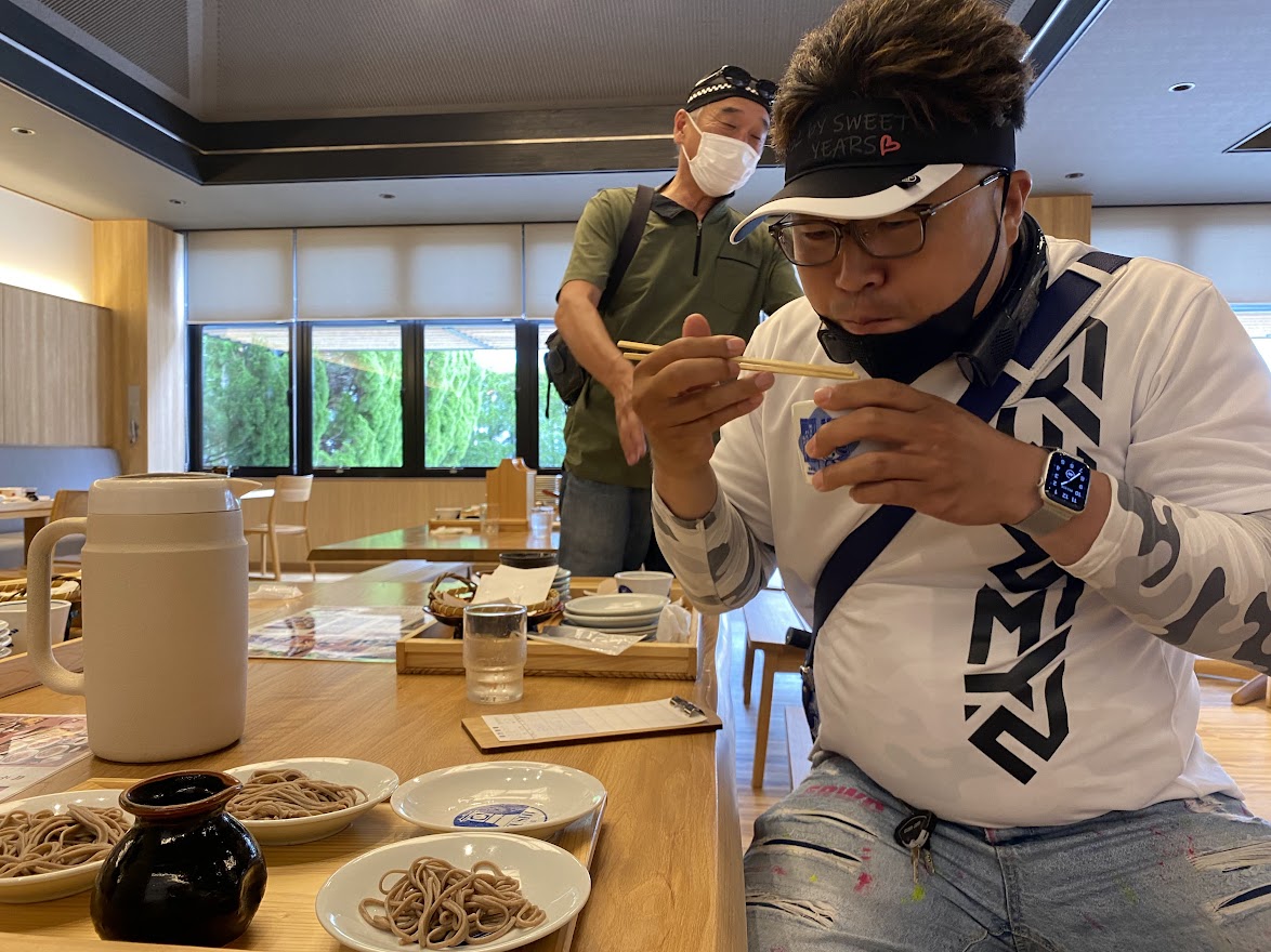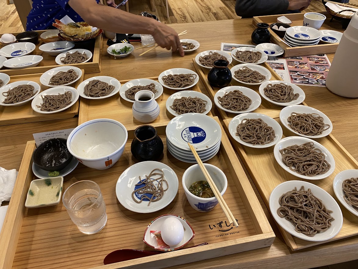 なんといっても 地域一帯が そば屋だらけ なので、 まぁ スムーズに 入店できます。 ここでも 安定の茶色ではないか!!! これで やめときゃ いいのに なぜか いきなり 15皿 の おかわり。 結果・・・惨敗。 じゃない方 の 麵の達人 に しめていただく運びとなりました・・・。 ・・・なんか20皿食ったら どうのこうの って書いてあったんですよ。 そばが 大好き過ぎて お昼ご飯に そばを毎日食べてたら ある日突然 そばアレルギーを発症したオーナー様の話を聞いて ちょっと ビビってます。 京都へ帰ります、なのですが 海水浴がえりの事故 & 渋滞 に ドハマり・・・。 来月も 頑張りましょう。