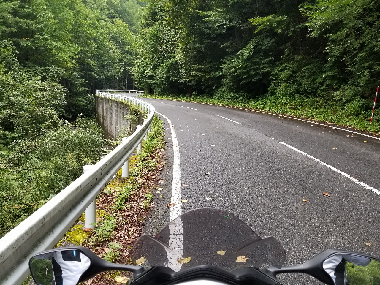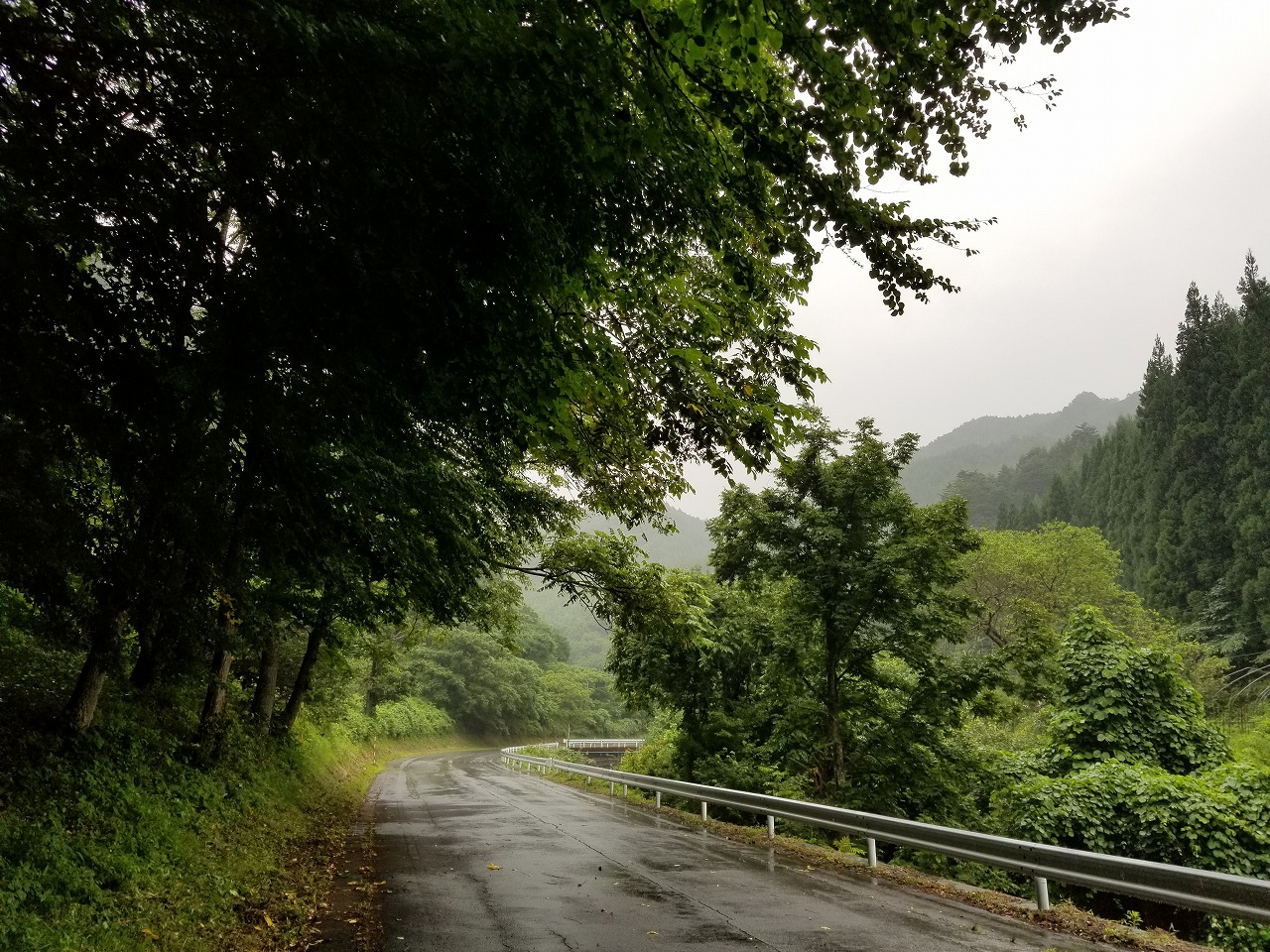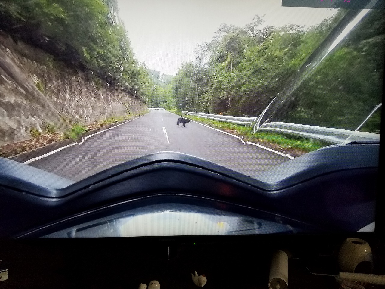 2日目の朝は昨日の予報と違い案外晴れてるので、6時前には出発。 念願蔵王エコーラインへ。 早朝の誰もいない快走路を走ってると本当に幸せな気分。 残念ながら景色は真っ白。 蔵王から仙台の高原を抜けて、ラッシュの市内を進みますが、すでに猛暑… そこから三陸自動車道で釜石をかすめて登米というところで降りて 広域農道と県道をつなぎ北上。 快走路ばっかり 遠野風の丘というところでラムロースト定食を食べました。 ここはラム肉が有名らしんですが、臭みもなくとても美味しかったです。 この辺りから少し涼しくて北に来たなあと実感。 そこから一山超えて念願の八戸川内大規模林道へ。 何とか天気もってくれた!! 期待以上の快走路!! 走りごたえがあり最高でした。 が、雨がポツポツ来はじめたので途中で引き返したら、まさかの… 小熊横切る!!とてつもない山の中という証拠ですね(笑) ちなみにミラー見ると、藪のなかにもっと大きな黒い影が… たぶんお母さん。 ちょっと怖いので足早にその場をあとにします(笑)。 国道にたどり着く直前に土砂降りに! よかった! 本当は八幡平アスピーテラインに行きたかったけど諦めて 宮古市に抜けて三陸自動車道で陸前高田へ。 津波伝承館や奇跡の一本松を見て震災の恐ろしさを実感しました。 そこから予約を変更した郡山市まで一気に走り宿に入りました。 二日目801㌔ 流石に疲れました(笑) 手首が腱鞘炎みたいになってるので湿布でケアします。 明日も天候によってどうするか朝決めます。
