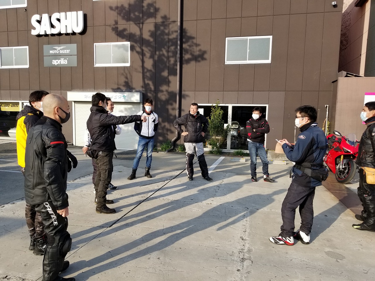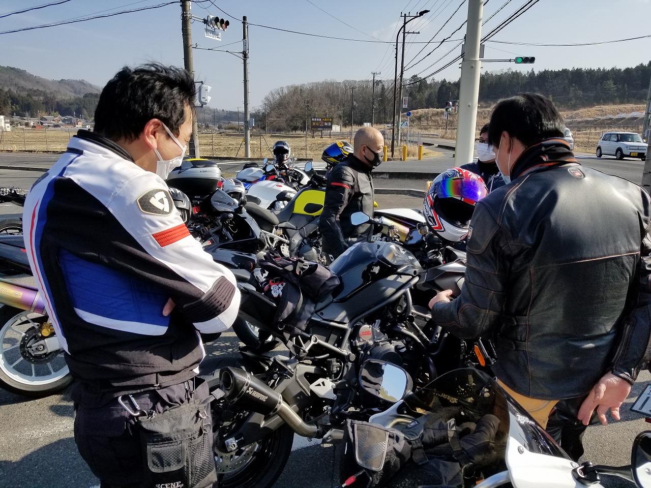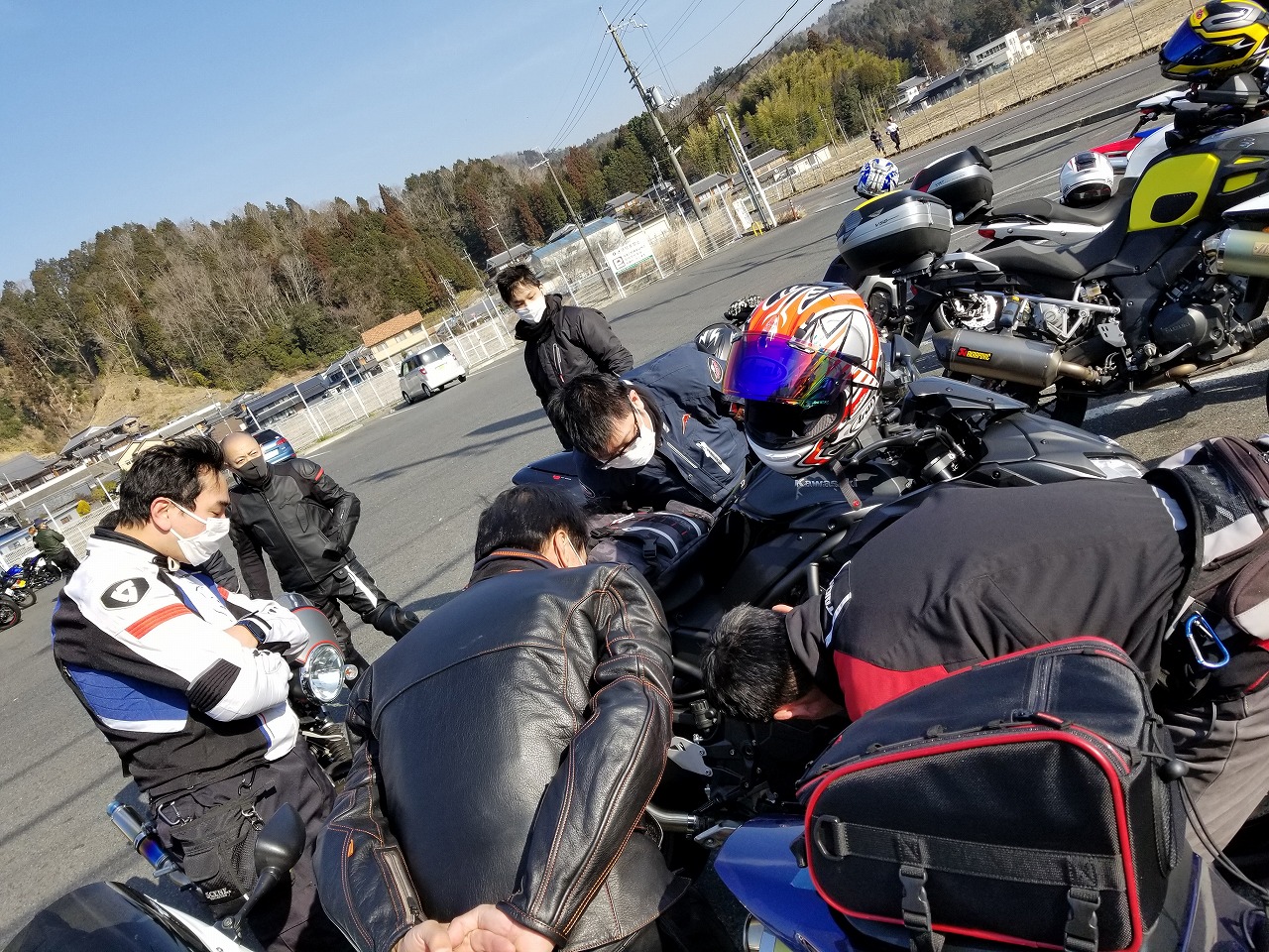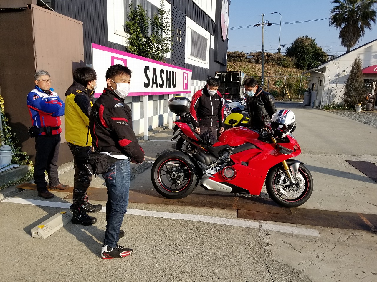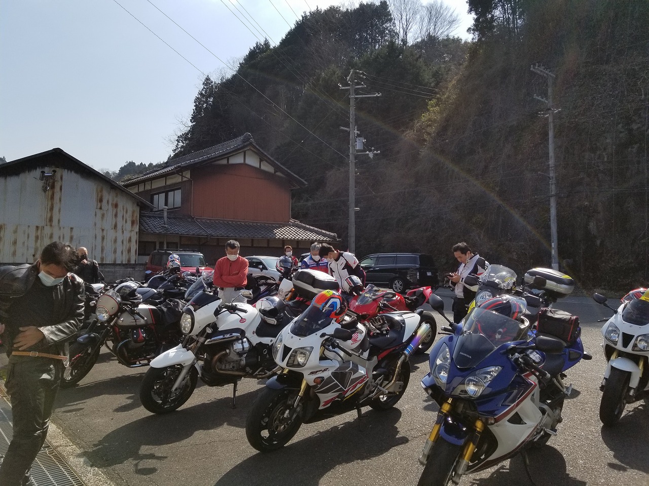 昨日は2月とは思えない気温で、天気も最高でしたね! 緊急事態宣言下ですが細心の注意を払って開催しました。 皆さん走りたくてウズウズしてたみたいで、総勢15名での開催。 バイク降りてる時はマスク着用をしてもらいます。 天気もいいので会話もそこそこに南に向います。 信楽のコンビニで計画的遅刻犯と合流。 スーパーチャージャー付のバイクを囲んであれやこれや話が弾みます。 そこから月ヶ瀬に向かいますが、信楽の山奥はまだ融雪剤でびちょびちょ・・・ 三重県側に抜けると路面も良くなり、快走できました。 月ヶ瀬は梅まつりで人と車でごった返してて、止めるのも一苦労。 かなり離れたところに停めてトイレ休憩と梅の花の鑑賞会 でもみんな走りたいので梅花の鑑賞もそこそこにさらに南へ向かいます。 三重県の山間は昔に比べても道が良くなり、快走できる道がたくさんあります。 地図で通った道を見ると、それこそ上下左右行ったり来たり。 マップル2ページ分だけでも、何時間も走れます。(ほとんど同じ道通らずに) 最近はストリートビューで事前に確認できるので、本当に便利です。 実際今回開拓したプチゴールデンルートは、一度も現地に行かずスムースに走れました。 昼ご飯は道の駅針テラスで。 感染対策で各々す好きなスタイルで食べました。 食堂の入る人もいましたが、大半がコンビニで買って気持ちいい外で頂きました。 しかし相変わらずすごいバイクですね。 食後はしばらく入ってくるバイクを見てましたが、全然飽きない(笑) バイクショーを堪能したあとは、またひたすら快走。 あまりに楽しくて、休憩すくなくて写真も少ないです(笑) 結局日没まで走って解散しましたが、ずっと皆さん笑顔でした 次回3月は21日の予定です。 サッシュ二輪ツーリングは大人のライダーが楽しめるイベントです。 マナーなどは厳しいですが、興味ある方は連絡くださいね~。