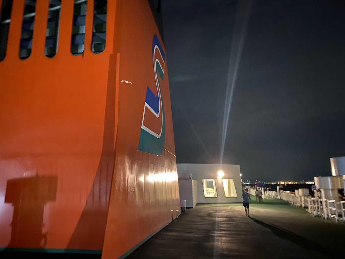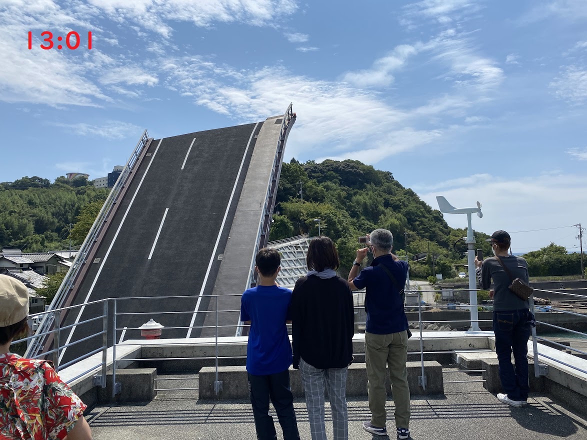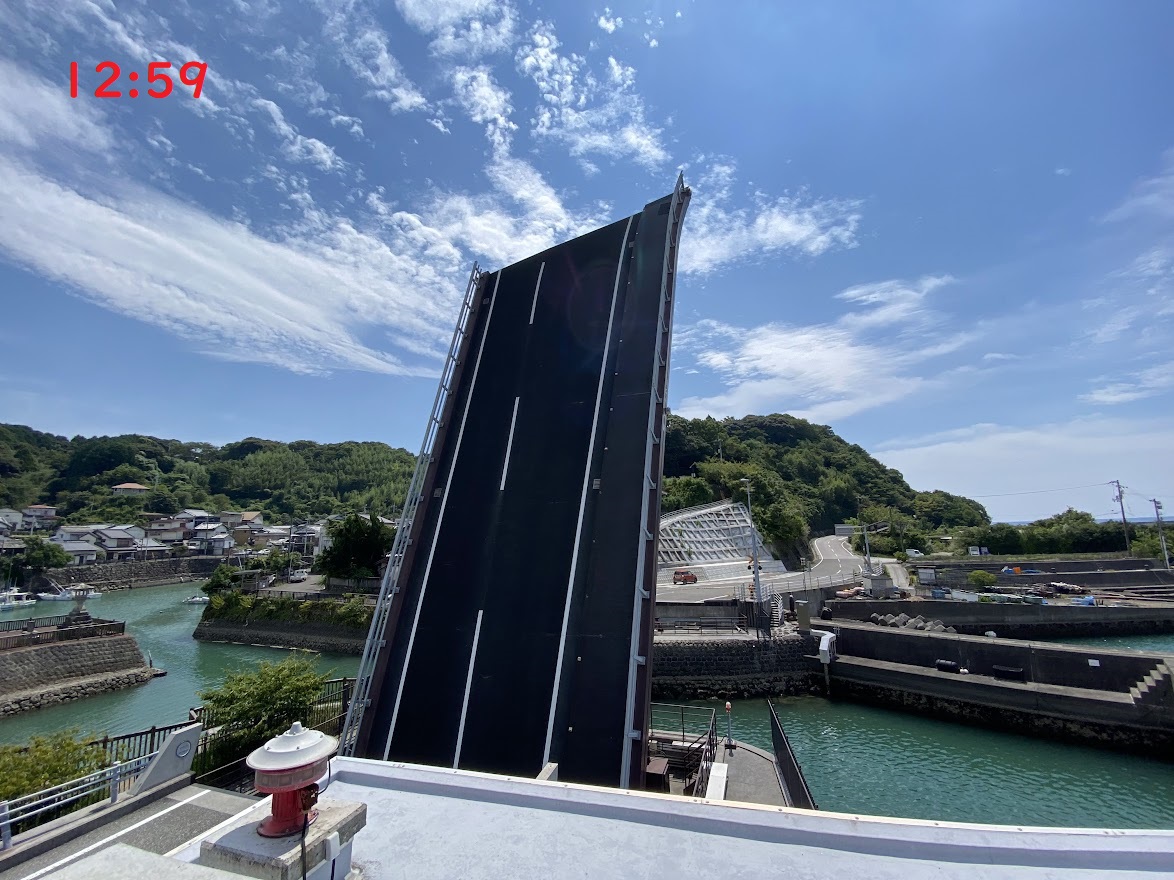 四国を満喫しました! 土曜日19時、サッシュ。 念の為に 書いておきますが 決して 暇だから これたワケでは ないです。 忙しい 合間を縫って ご参加いただきました! まずは フェリー乗船のため 大阪南港へ! 20時から 乗船開始となります。 いろいろ乗ってますが 南港~東予は 初乗船。 今回 お世話になった オレンジフェリーさん の 船は 令和元年式の新造船。 さっそく食事 & 一杯 やります。 24時間テレビを観ながら 就寝します。 夜が明けます。 誰か います(笑) 四国といえば この人ですね。 徳島の鉄人は 3時起床にて 東予港に お迎えにきてくださいました。 大変 お世話になりました。 さて、まだ早朝6時台ですが 高知のオーナー様の待つ 道の駅 633美の里(ムササビの里)に向かいます。 無事に合流できたものの・・・ ?どこから 着いてきてたの ? バッタ だけに 飛び入り参加・・・ しかし・・・ 8月に グリップヒーター & シートヒーター を 使用することになるとは・・・ ドライブイン引地橋。 仁淀ブルーって呼ぶそうです。たしかに 水が青い。 さらに 登山です。四国カルストを目指して 出発です。 天狗高原 駐車場。 カルストの写真が あまり ありません。動画を待っててね。 山は制覇したので 次は 海です。下山して 須崎市内へ。 一気に夏服。 太平洋を右手に見ながら 手結港 可動橋 へ。 なんと言っても 橋が 上がっている時間が 決まっています。 見えますか??? 片づけられた 卓球台 みたいな フォルム。 13時には 橋は下がり始めます。今年イチ ダッシュしました。。。 衝撃映像は 動画編集をお待ちください。 まぁ、目的達成できたので また 空港へ(笑) 高知龍馬空港。 ・・・えっと、カツオのたたき の写真、どなたかお待ちしております。 前夜のフェリーを利用すると・・・ もちろん いい意味で 一日が長い! ・・・でも 戻りは 夜になっちゃいました。 来月は ・・・電熱ジャケット いるかもしれません。。。