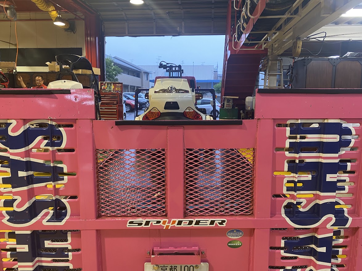 ピンキー号、発進!!! あいにくの雨模様なので・・・ 工場に入れて 積み込み作業です。 当店新車おろし1オーナーの認定中古車です。 メール問い合わせ頂いた 翌日にご来店いただき ご契約いただきました。 なんとも 素晴らしい 行動力です。 プレミアムガラスコーティング が じっくり丁寧に施工 されます。 施工後の洗車が格段に 捗ります。 MY17 RT-LTD は・・・ スマホホルダーとUSBを追加取付。 別体ナビは Bluetooth対応なのでスマホの音楽も車体から流せます。 そして 今回は・・・ GT スペック チタンポリッシュを 取付させていただきました。 クロームとの相性は控えめに言って 最高です。 さて、恒例のナンバーチェック・・・ 松本ナンバーです。長野県でも まだ 近い方 かな。 新しい土地でスパイダーとたくさんの思い出を作ってください。 安全運転でお届けしますので 楽しみにお待ちください。
