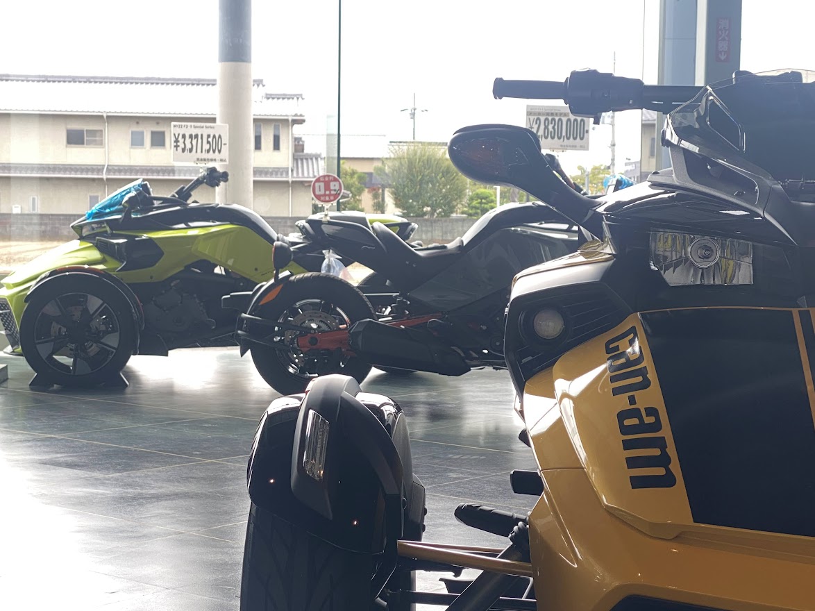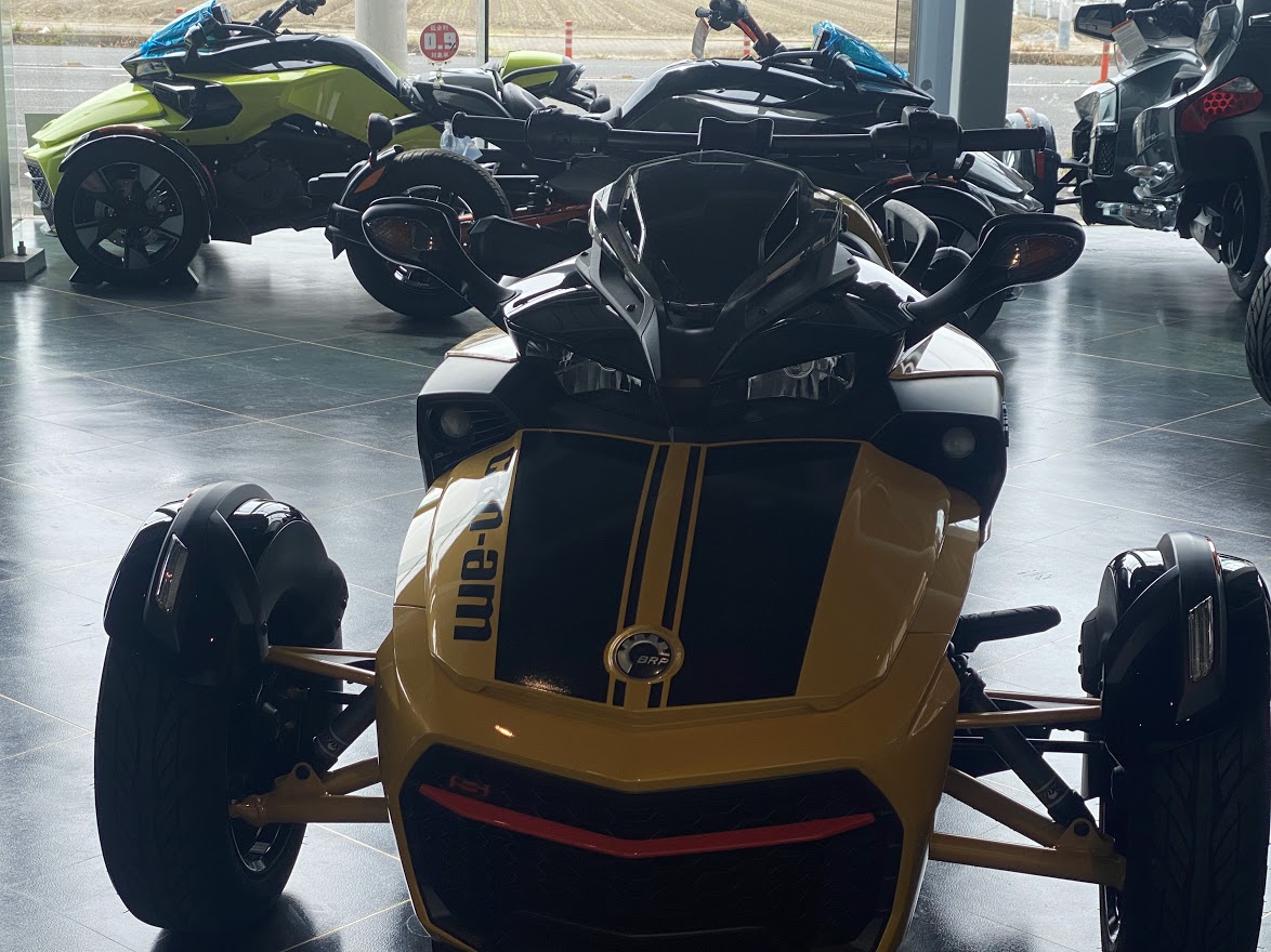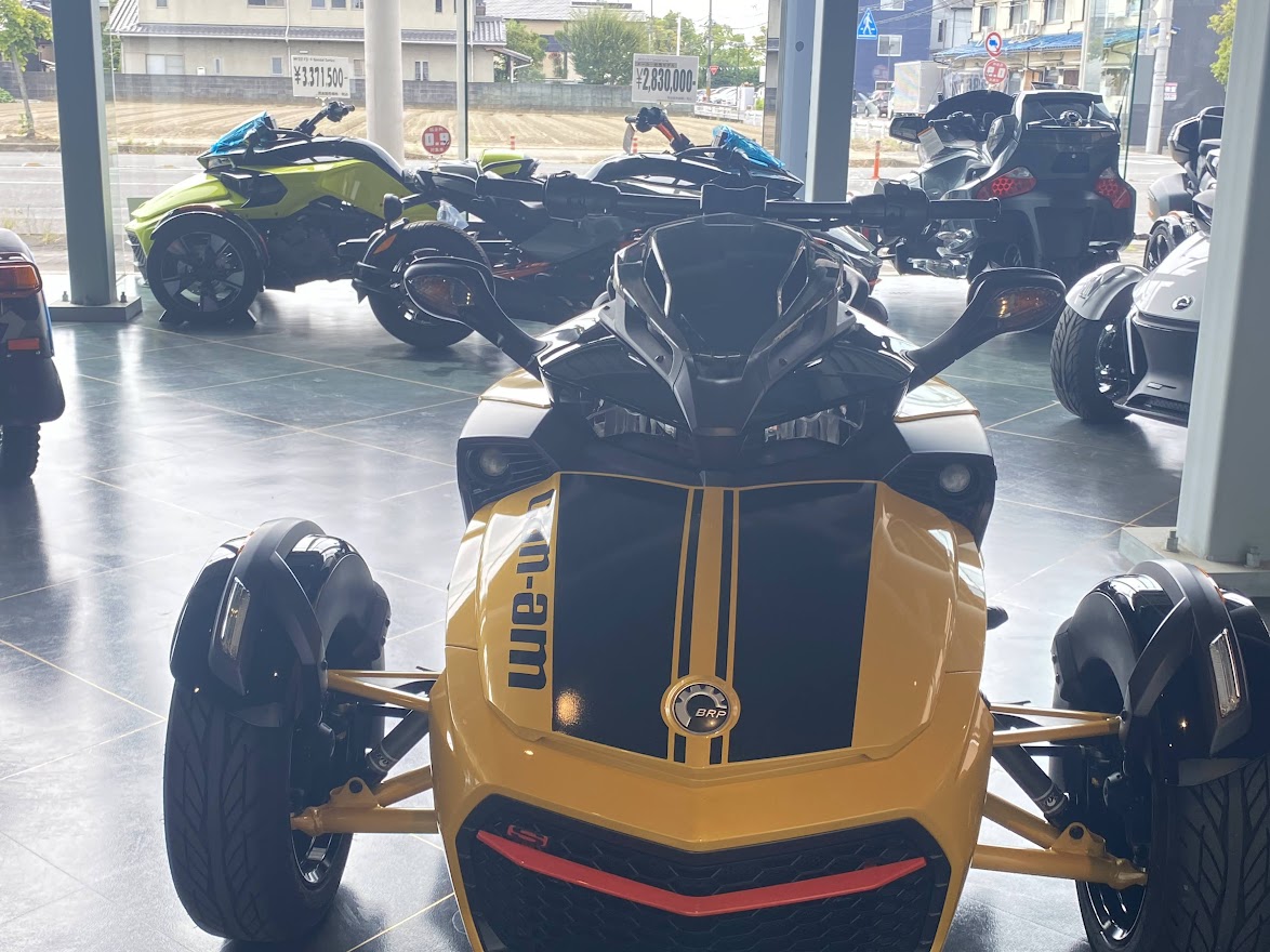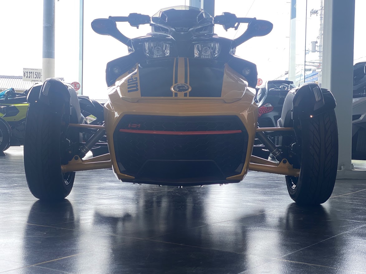先日 少しだけ ご案内していた F3-S。 お待たせ致しました 展示の準備が 整いました。 MY17 F3-S CIRCUIT YELLOW METALLIC 当時 入荷台数が限定されて 販売していたモデルになります。 巷では F3デイトナ と 呼ばれていますね。 Can Am Spyder F3 Turbo Concept の レプリカ仕様としても 知られています。 さっそく 細部を見てみましょう。 いまで言う Special Series 的な位置づけになりそうな装備で、 ゲージスポイラー・SSグリルに加え ボンネットデカールも標準装備。 見た目はサイコー 乗り味ビミョー と評された Drag Bar ハンドル。 2023年のアクセサリーカタログ から 姿を消してしまった為、 まもなく 終売??? 欲しい方は急ぎましょう。 イエローステッチ の ドライバーシートも特別仕様。 モノシートカウルにも ラインデカール。 マットブラックのフォグ用グリル。 ディープブラックハイグロスホイール。 スパイダー史上、初めて搭載された スポーツモードには 驚かされました。 のちに すべてのF3-Sに 標準装備となりました。 タンクカバー には フロリダのデイトナビーチにある デイトナインターナショナルスピードウェイの ロゴマークと NASCAR開幕戦を意味する DAYTONA500 の文字。 椅子が LEGO みたいで かわいい所です。 中古車になりますが ショールーム展示 という VIP待遇です。 この車両は グリップヒーター装備、ヘッドライトが4灯仕様になっております。 中古車の中でも 動きの 速い デイトナ500。 お早目の問い合わせをお待ちしております。