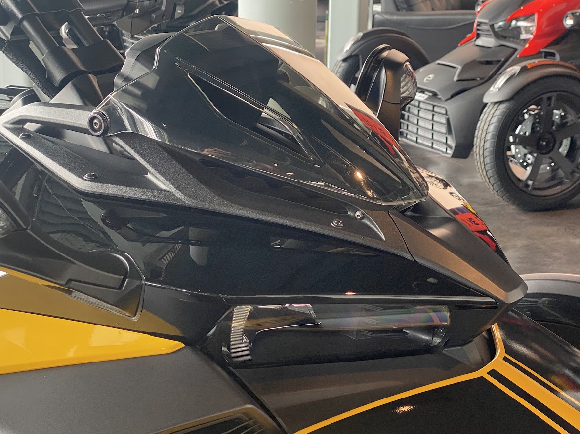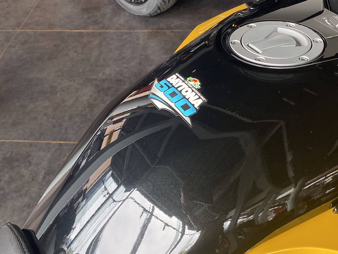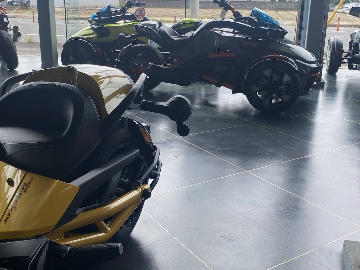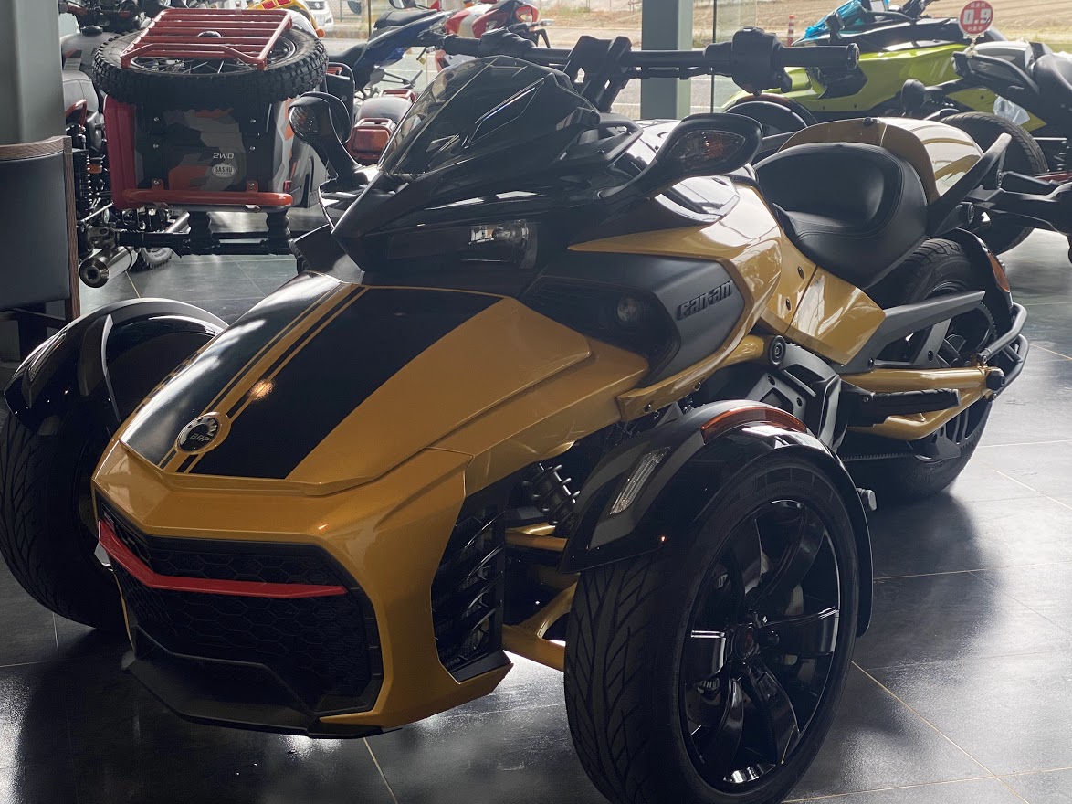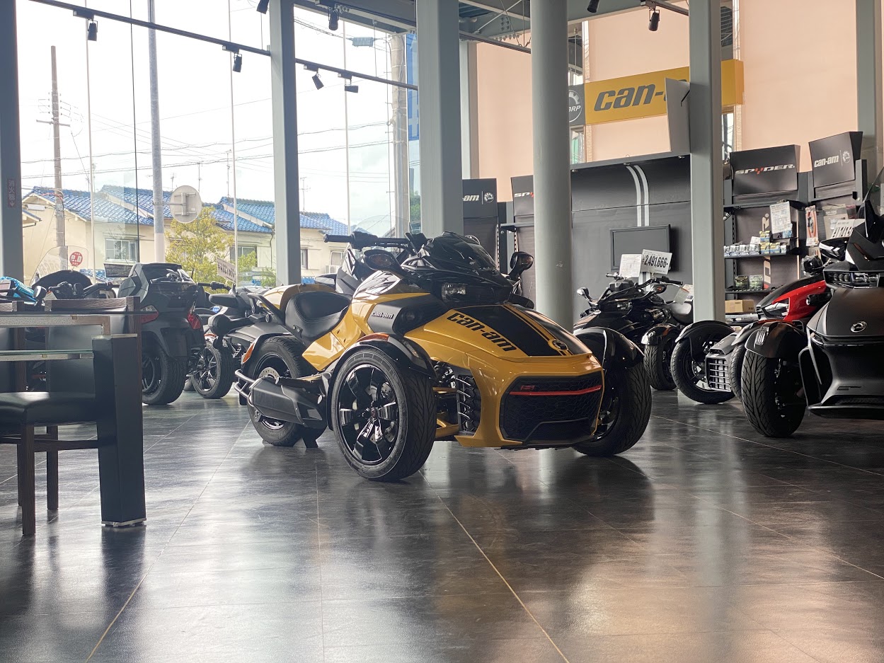 先日 少しだけ ご案内していた F3-S。 お待たせ致しました 展示の準備が 整いました。 MY17 F3-S CIRCUIT YELLOW METALLIC 当時 入荷台数が限定されて 販売していたモデルになります。 巷では F3デイトナ と 呼ばれていますね。 Can Am Spyder F3 Turbo Concept の レプリカ仕様としても 知られています。 さっそく 細部を見てみましょう。 いまで言う Special Series 的な位置づけになりそうな装備で、 ゲージスポイラー・SSグリルに加え ボンネットデカールも標準装備。 見た目はサイコー 乗り味ビミョー と評された Drag Bar ハンドル。 2023年のアクセサリーカタログ から 姿を消してしまった為、 まもなく 終売??? 欲しい方は急ぎましょう。 イエローステッチ の ドライバーシートも特別仕様。 モノシートカウルにも ラインデカール。 マットブラックのフォグ用グリル。 ディープブラックハイグロスホイール。 スパイダー史上、初めて搭載された スポーツモードには 驚かされました。 のちに すべてのF3-Sに 標準装備となりました。 タンクカバー には フロリダのデイトナビーチにある デイトナインターナショナルスピードウェイの ロゴマークと NASCAR開幕戦を意味する DAYTONA500 の文字。 椅子が LEGO みたいで かわいい所です。 中古車になりますが ショールーム展示 という VIP待遇です。 この車両は グリップヒーター装備、ヘッドライトが4灯仕様になっております。 中古車の中でも 動きの 速い デイトナ500。 お早目の問い合わせをお待ちしております。