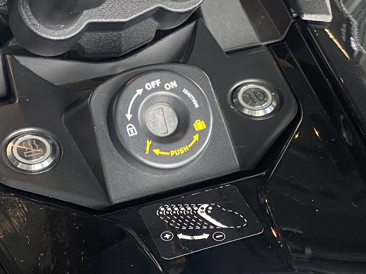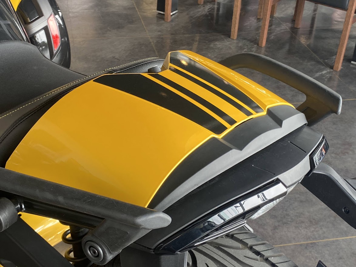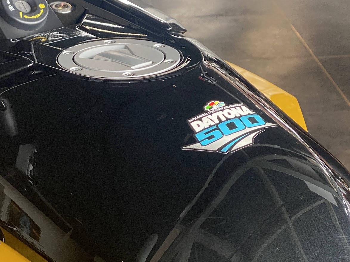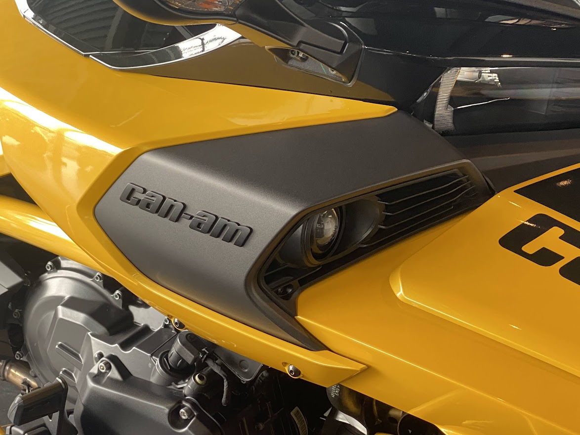 先日 少しだけ ご案内していた F3-S。 お待たせ致しました 展示の準備が 整いました。 MY17 F3-S CIRCUIT YELLOW METALLIC 当時 入荷台数が限定されて 販売していたモデルになります。 巷では F3デイトナ と 呼ばれていますね。 Can Am Spyder F3 Turbo Concept の レプリカ仕様としても 知られています。 さっそく 細部を見てみましょう。 いまで言う Special Series 的な位置づけになりそうな装備で、 ゲージスポイラー・SSグリルに加え ボンネットデカールも標準装備。 見た目はサイコー 乗り味ビミョー と評された Drag Bar ハンドル。 2023年のアクセサリーカタログ から 姿を消してしまった為、 まもなく 終売??? 欲しい方は急ぎましょう。 イエローステッチ の ドライバーシートも特別仕様。 モノシートカウルにも ラインデカール。 マットブラックのフォグ用グリル。 ディープブラックハイグロスホイール。 スパイダー史上、初めて搭載された スポーツモードには 驚かされました。 のちに すべてのF3-Sに 標準装備となりました。 タンクカバー には フロリダのデイトナビーチにある デイトナインターナショナルスピードウェイの ロゴマークと NASCAR開幕戦を意味する DAYTONA500 の文字。 椅子が LEGO みたいで かわいい所です。 中古車になりますが ショールーム展示 という VIP待遇です。 この車両は グリップヒーター装備、ヘッドライトが4灯仕様になっております。 中古車の中でも 動きの 速い デイトナ500。 お早目の問い合わせをお待ちしております。