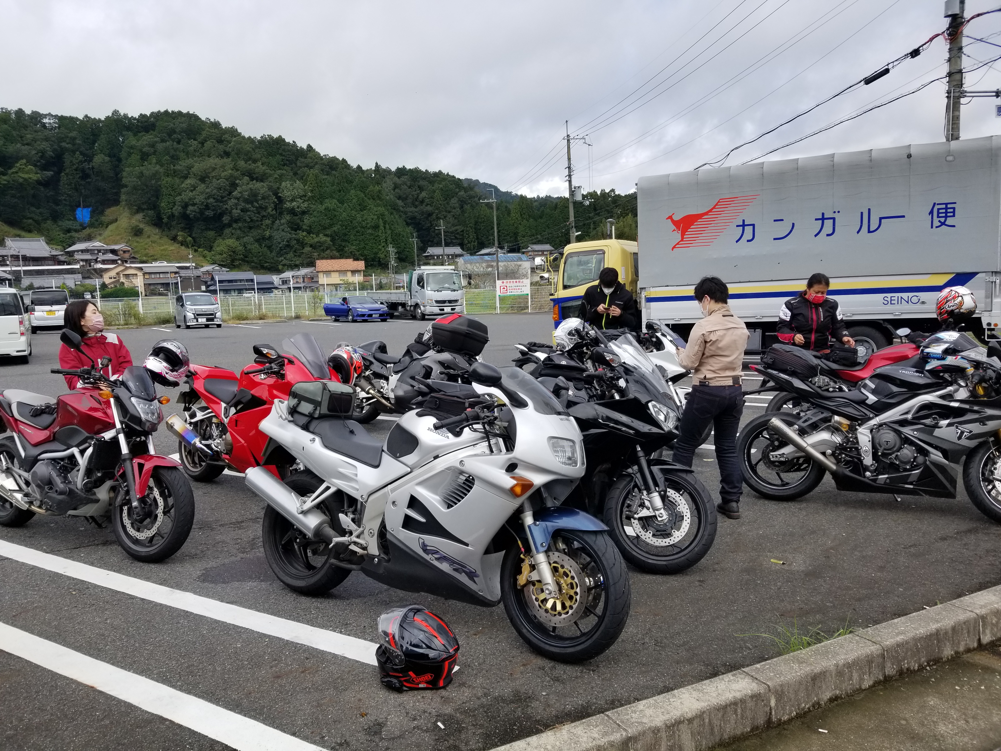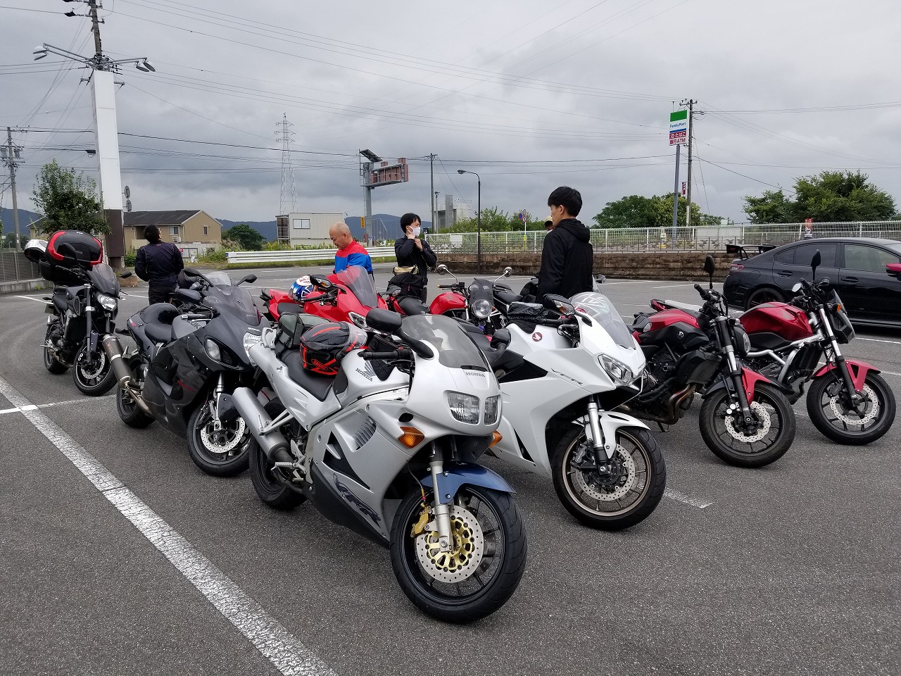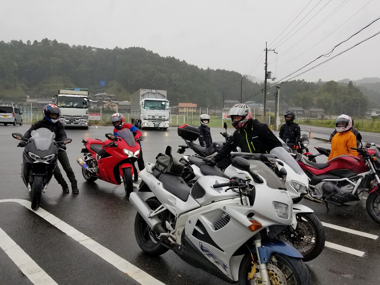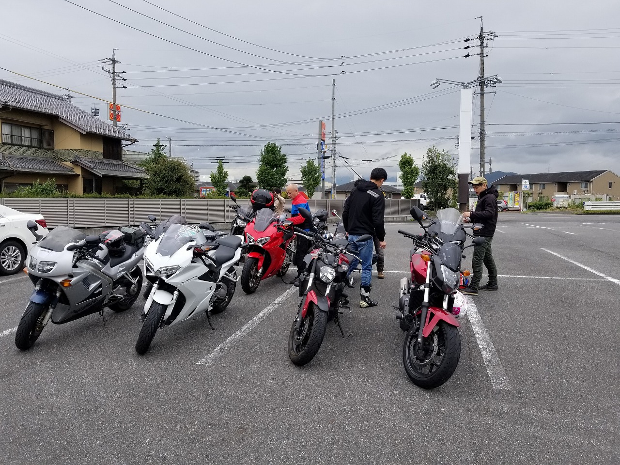 久しぶりのツーレポ。 サボってたわけじゃなく、3か月連続の雨による中止でした。 今月も行けるかどうか微妙な予報… 前日の予報では朝には止むはずでしたが、朝になっても全然回復せず。 とりあえず、時間遅らせてサッシュに集合しましたが、やはりこの路面では参加人数 半減、しかもメインのビギナーさん全滅。 まあこの天気じゃあ仕方ないですね。 結局8人でしかもベテランばっかり(笑) しばし談笑して、何とか路面もましになってきたので出発。 信楽までひたすらウェット路面を走り信楽中野のコンビニに到着したころには路面も 乾い、青空も見えてきてちょっと安堵。 時間はもうお昼なので昼食に向かい、昼からきっちり走ろうということになりました。 伊賀上野にあるとろろ庵さんでガッツリいただきました。 ここは観光バスがくるようなところで、いきなりの大人数に対応していただけるので助かります さあ、お腹も満たされ走るぞー!!って店出たらまさかの霧雨… とにかく予報と違い天気が怪しいので、元のコンビニに戻る方向で走ったら どんどん天気が崩れ… しまいに本格的な雨に(´;ω;`) 仕方なくそのまま京都に引き返すことに。 本当にご飯食べただけのツーリングでした… 何とか11月は晴れることを祈ります。 11月は3日木曜日祝日になります。 特にビギナーの方大歓迎なので、参加希望の方はサッシュ秋田まで連絡くださいね~。