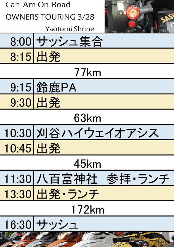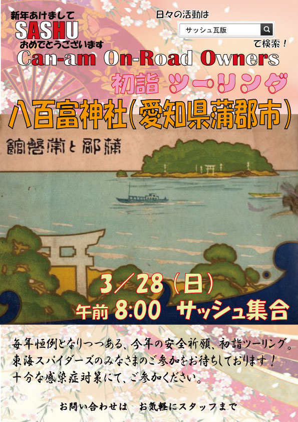 スパツーファンのみなさま 大変長らくお待たせいたしました。 のびのびになっておりましたが 2021年1発目の開催です。 3/28(日) 午前 8時 サッシュ集合 当日のスケジュールは 下記の通りです。 感染症 & 花粉対策をお忘れなく!
