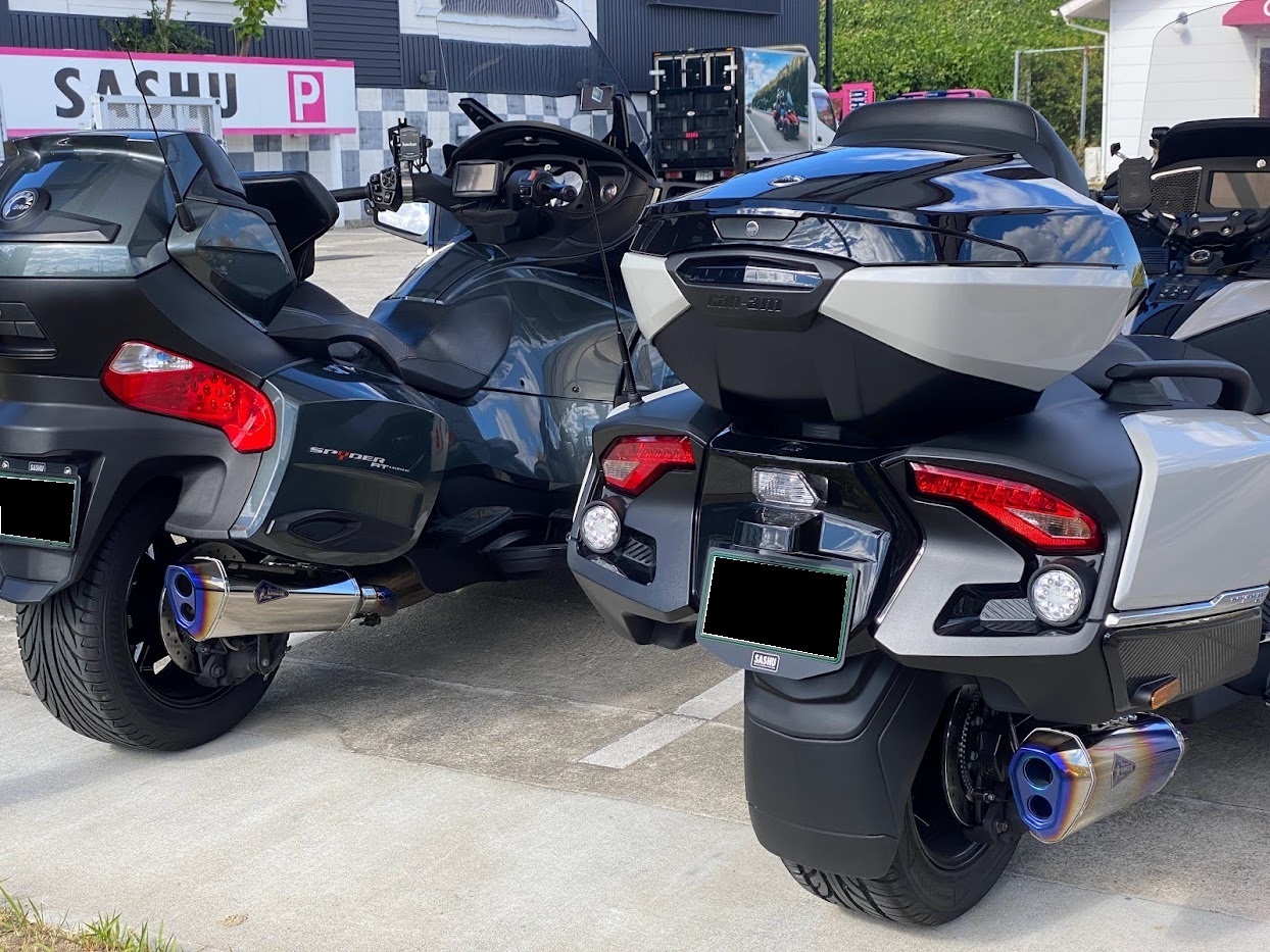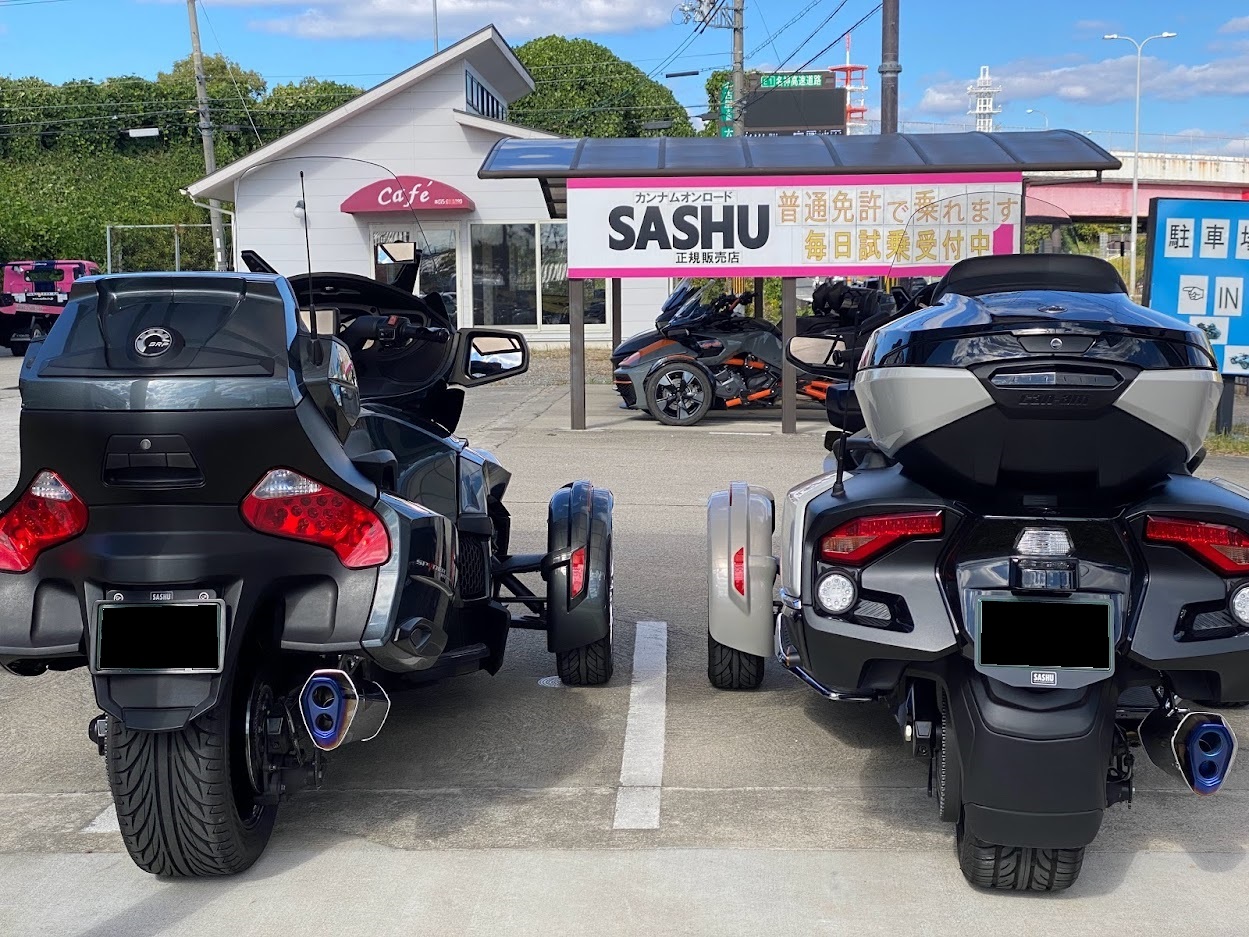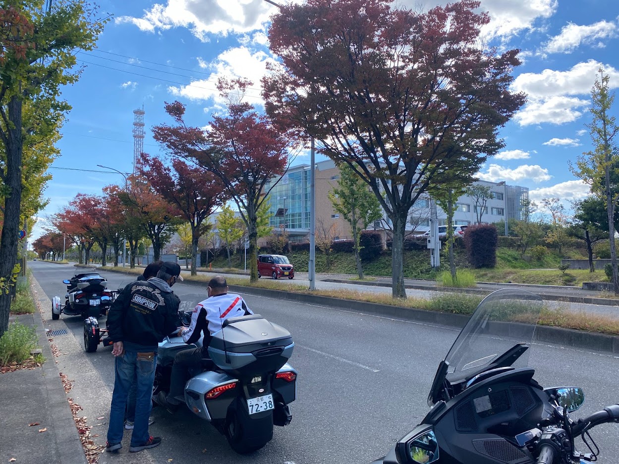 歩道を歩いてましたらですね・・・ 秋を見つけました。 そう言えば、この木が 桜の木 だった事を思い出して 桜の葉っぱも 色づくんやなぁ と 今日知りました。 どうも世間では『さくらもみじ』って呼ぶそうです。 さて、また ひとつ賢くなったところで 週末は ご来店ありがとうございました。 GTスペック スリップオンの衝動買い ありがとうございます。 MY17 RTリミテッドに チタンポリッシュが似合うのは フロントホイールが クローム仕上げだからでしょうね。 試乗も大盛況で・・・ 3モデル 4台で 試乗に出かけました。 まるで 定例ツーリングのような試乗でした。 こちらも 紅葉してますね~。 さて、今月の定例カンナムツーリングはコチラ。 冬装備でご参加ください。