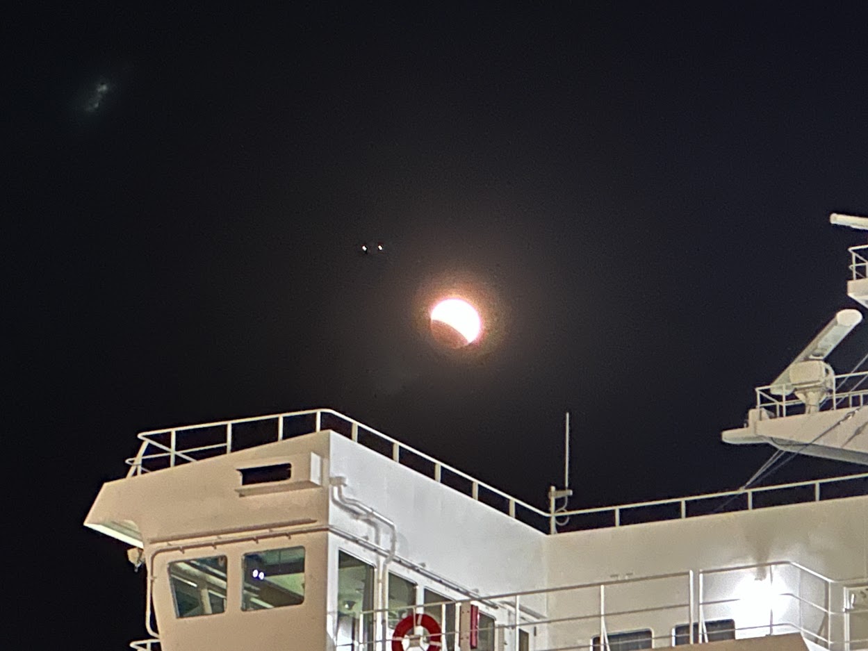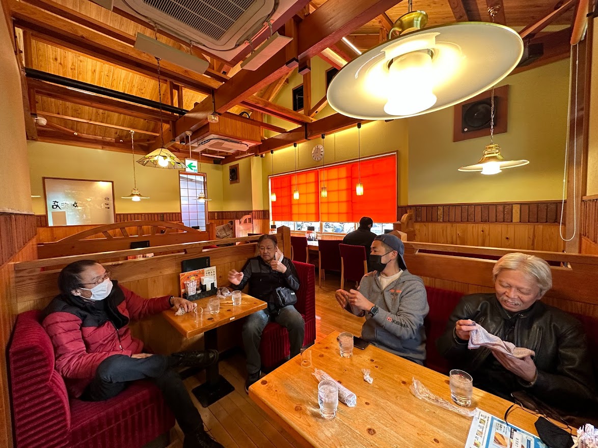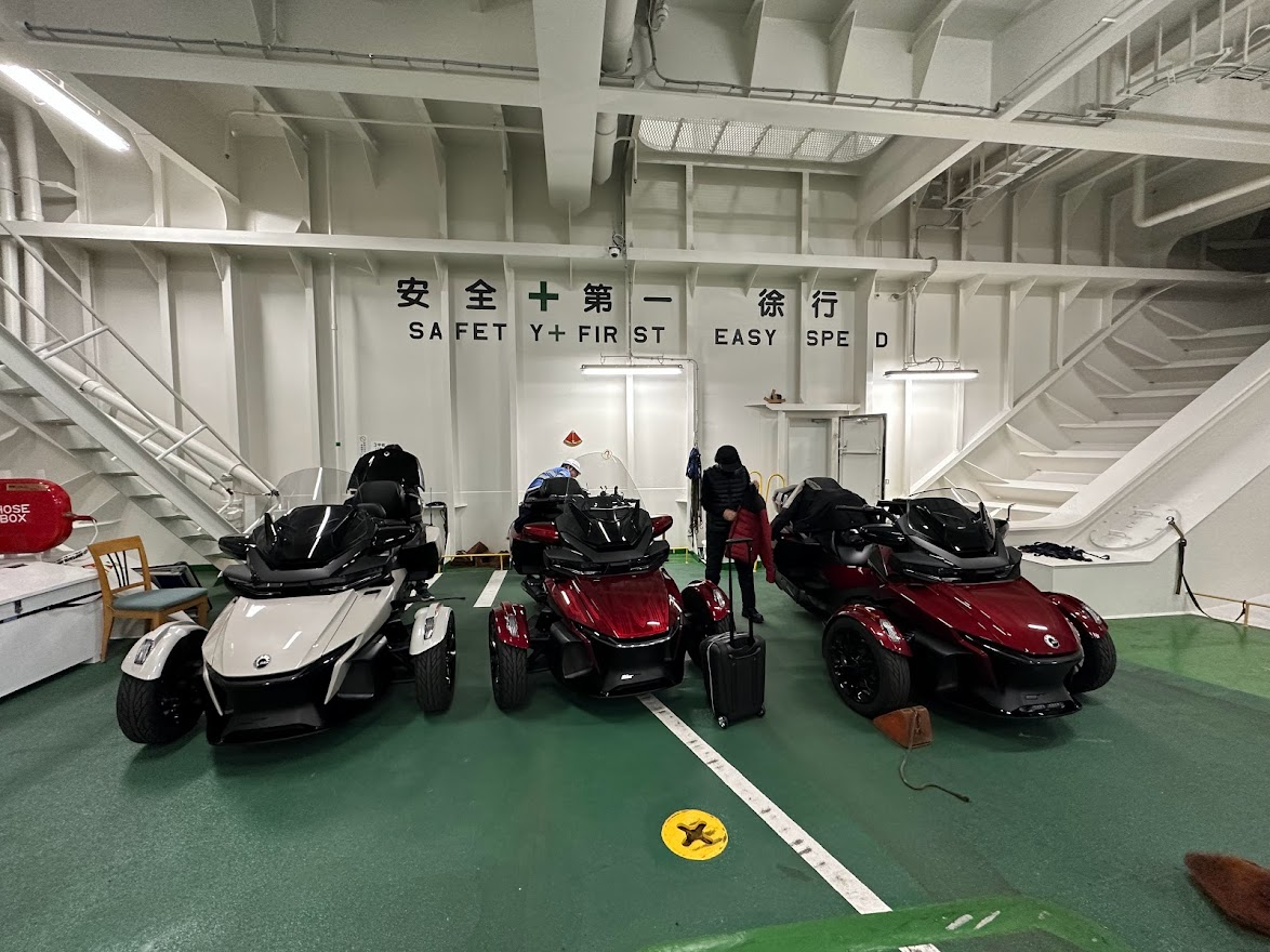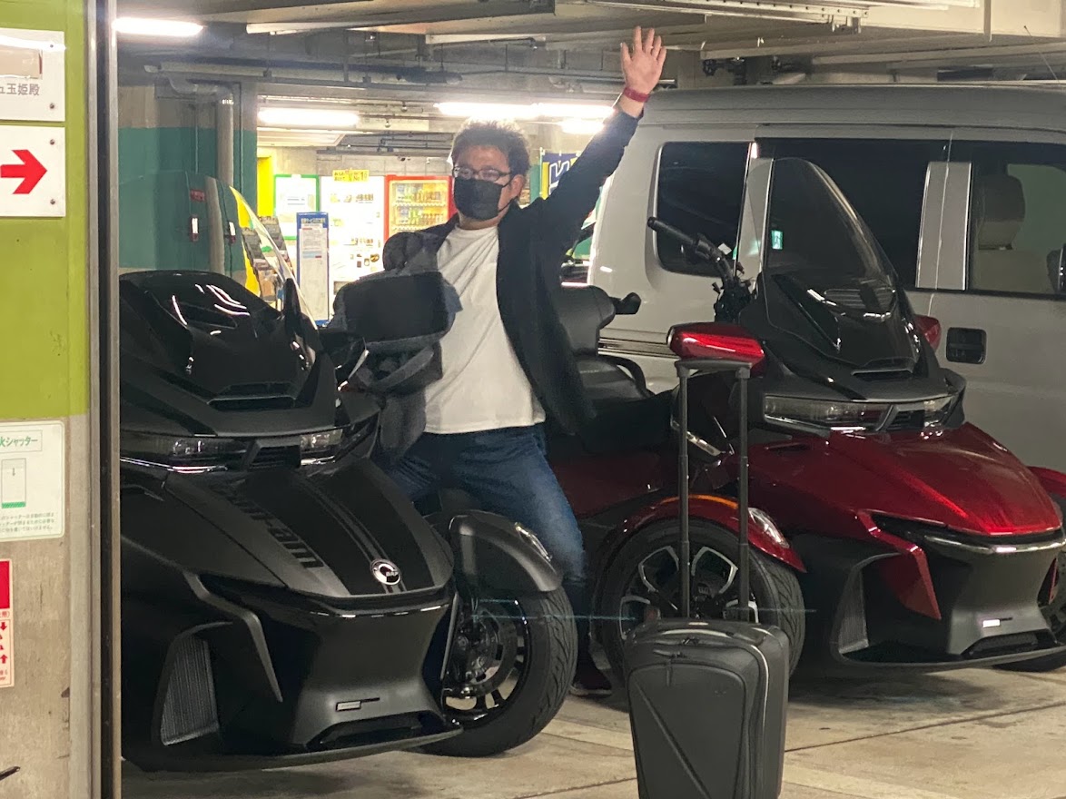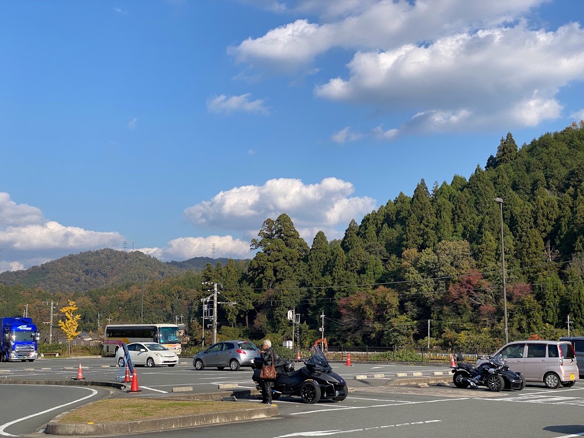 先日の皆既月食。 この月食を フェリーから眺めている 3人の猛者たち。 こ、これは・・・ 数週間前 に 乗船した 宮崎カーフェリー、新船 『ろっこう』。 つまり翌朝・・・ 神戸に上陸ですね。 京都まで およそ 1時間のショートツーリングを経て ご来店されました。 いらっしゃいませ & おかえりなさい 宮崎ナンバーのMY20 RTリミテッド 2台と 大分ナンバーのMY21 RTリミテッド。 確かに 過去の瓦版 で 『近々 また お会いしましょう!』と書きましたが 3週間後にお会いするとは 思いませんでした。 いま 気付いたけど 『来月のご来店を一同心よりお待ちしております(笑)』とも 書いてました。 超アグレッシブな先輩方に感謝です! 3台 一斉に メンテナンス作業後は 嵐山、伏見稲荷大社へ観光ツーリングへ 行かれました。 閉店後。 本日は京都駅前のホテルにみなさまご宿泊。 全国旅行支援を利用して 私も宿泊しました。 ※自宅から 約2km のホテル に 宿泊しました。 翌朝。 市内の渋滞をかき分けて、 8コメでモーニング。 45年以上 周山街道 を 走り続けている 周山先生の 先導のもと 美山・南丹方面 へ 京都かやぶき紅葉ツーリングです。 ランチは 去年の 9月に 新館がオープンした 美山町自然文化村 河鹿荘 ほぼ貸切状態の駐車場。 食事以外に宿泊施設もあります。 鶏・猪・鹿 3種類から 鹿カレーをチョイス。 脂肪が少なく あっさりしていました。 食後は 紅葉を 眺めながら ゆっくりワインディング走行です。 写真はありませんが 動画は撮れていると思います。 日吉 ~ 道の駅 新光悦村で お別れです。 ここで もう一度 言っておきましょう。 『近々 また お会いしましょう!』 今回、この旅を 引率してくれた HOME NEAR 旅行社 より 無事、帰りのフェリーに乗船できたと 報告いただきました。 この度は ご来店 誠に ありがとうございました。 『近々 また お会いしましょう!』
