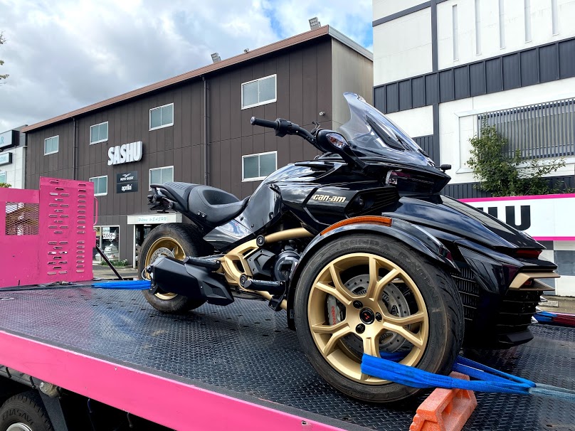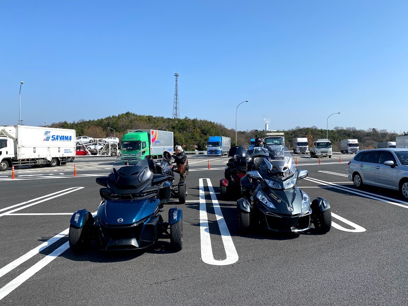 更新が滞ってしまい申し訳ありません。 やる気 と ネタ が ちょうど無くなった所でした。嘘です。 先日 スーパーなマスクを通販しましたが・・・ ・・・う~ん、子供サイズ。 納車ラッシュで うろう~ろ しておりました。 全て他府県へのご納車です。 ご遠方よりありがとうございます。 ピットでも いろい~ろ 作業が進みます。 現行RT用のアクセサリーで 新しく加わった LED FLOORBOARD LIGHTS。 まもなく上陸予定の2021年限定モデルの RT SEA TO SKY に 標準装備されるライトです。 残念ながら国内導入が終了した FRONT SIGNATURE LIGHT ( 上 ) と AUXILIARY LIGHT ( 下 ) あと 数セット 在庫しておりますので 未装着の方は お急ぎください。 先日はタイヤ交換に 高知県より お越しいただきありがとうございます。 RTモデル と KR20 は かなり相性が良いみたいです。 次回ツーリングイベントでお会いしましょう。 今週は、 九州から メンテナンス & カスタム にお越しいただく予定でしたので フェリー乗り場まで お迎えに行く約束を うっかりしてしまい・・・ 寝坊する自信しか ありませんでしたので 六甲アイランドに 前泊します。 そして、翌朝。 起きて何気なく窓をみると・・・ 太陽マークのフェリーが どんどん大きく見えてきました。 これは悪い夢だと思いたいところでしたが、現実です。 どうも寝坊したことに 気付きました。 秒でチェックアウトします。 着岸してましたが どうやら スパイダーの下船は まだのようです。助かりました。 宮崎ナンバーの ディープマルサラと合流です。 とにかく まだ時間が早いので、しばしコメダります。 ペトロールメタリックとの2ショット。 この日は 開店時間と同時にピットイン。 メンテナンスとカスタムを済ませ、 京都観光ソロツーリングへ出かけられました。 帰りは京都から宮崎まで 自走との事で その日は京都泊、翌朝は恒例の お見送りツーリング を企画しました。 またもや 寝坊しました。まぁ、ほんの 40分程度 です。 姫路くらいで折り返そうかと思いましたが なんせ 寝坊してしまったので なかなか言い出せずにいました。 吉備SAで休憩 猿・桃・雉・犬・猿・猿。 ん? 臼とかおらんかった? 結局、しまなみ海道の手前、 広島県尾道市までご一緒させていただきました。 最高の天気でしたので 楽しくツーリングできました。 近々、また九州にお邪魔することになりそうです。 この度はありがとうございました。