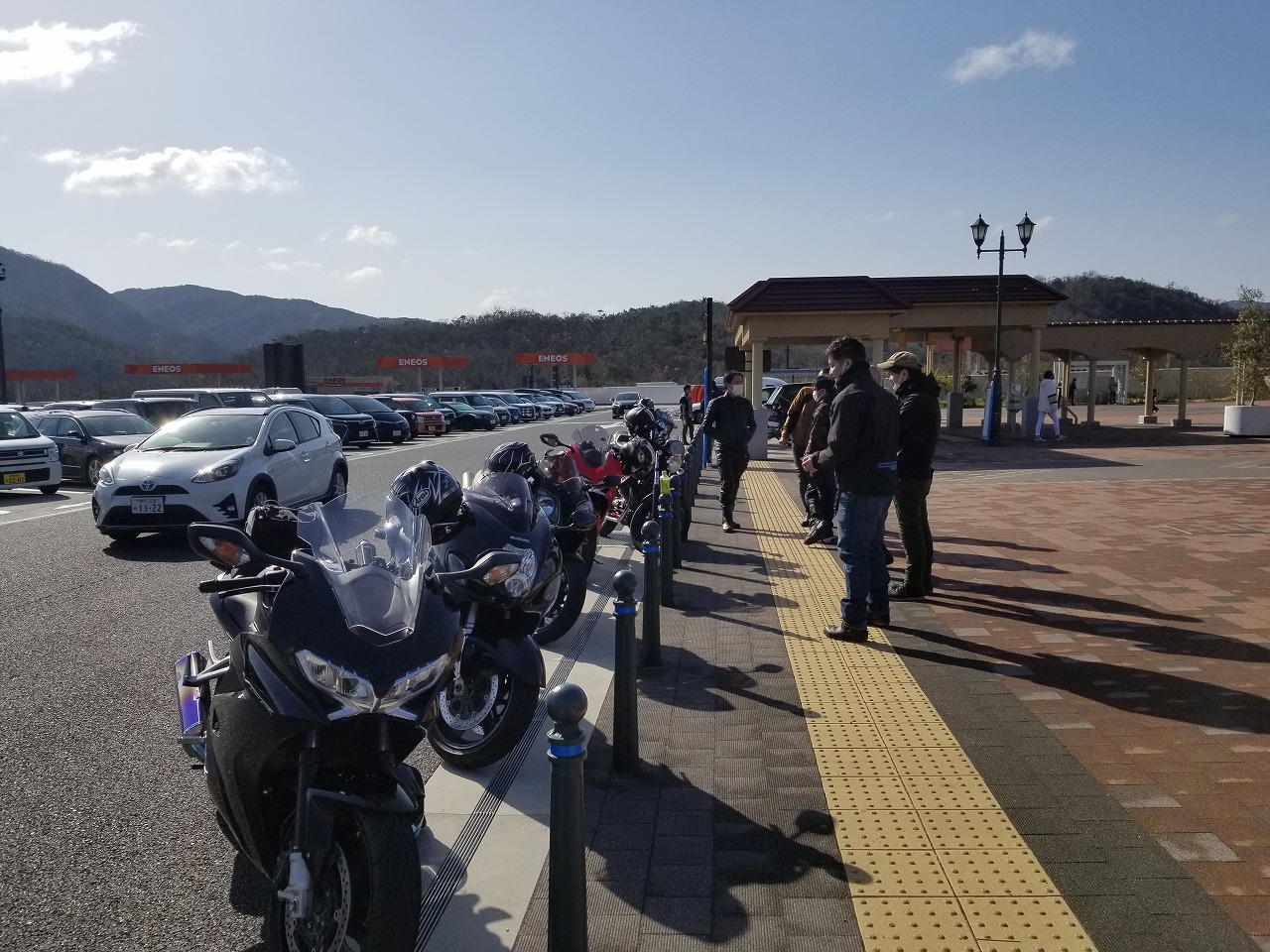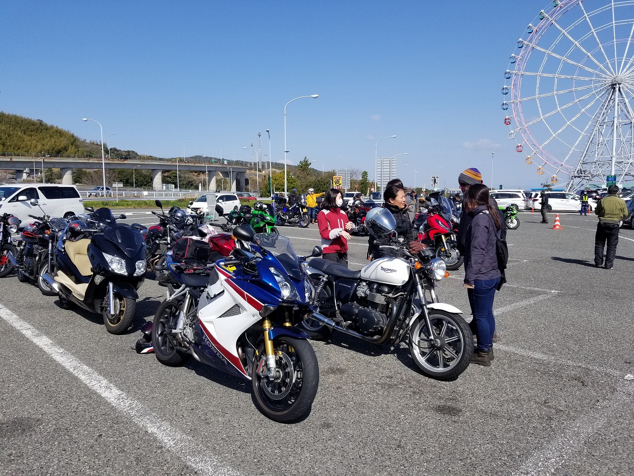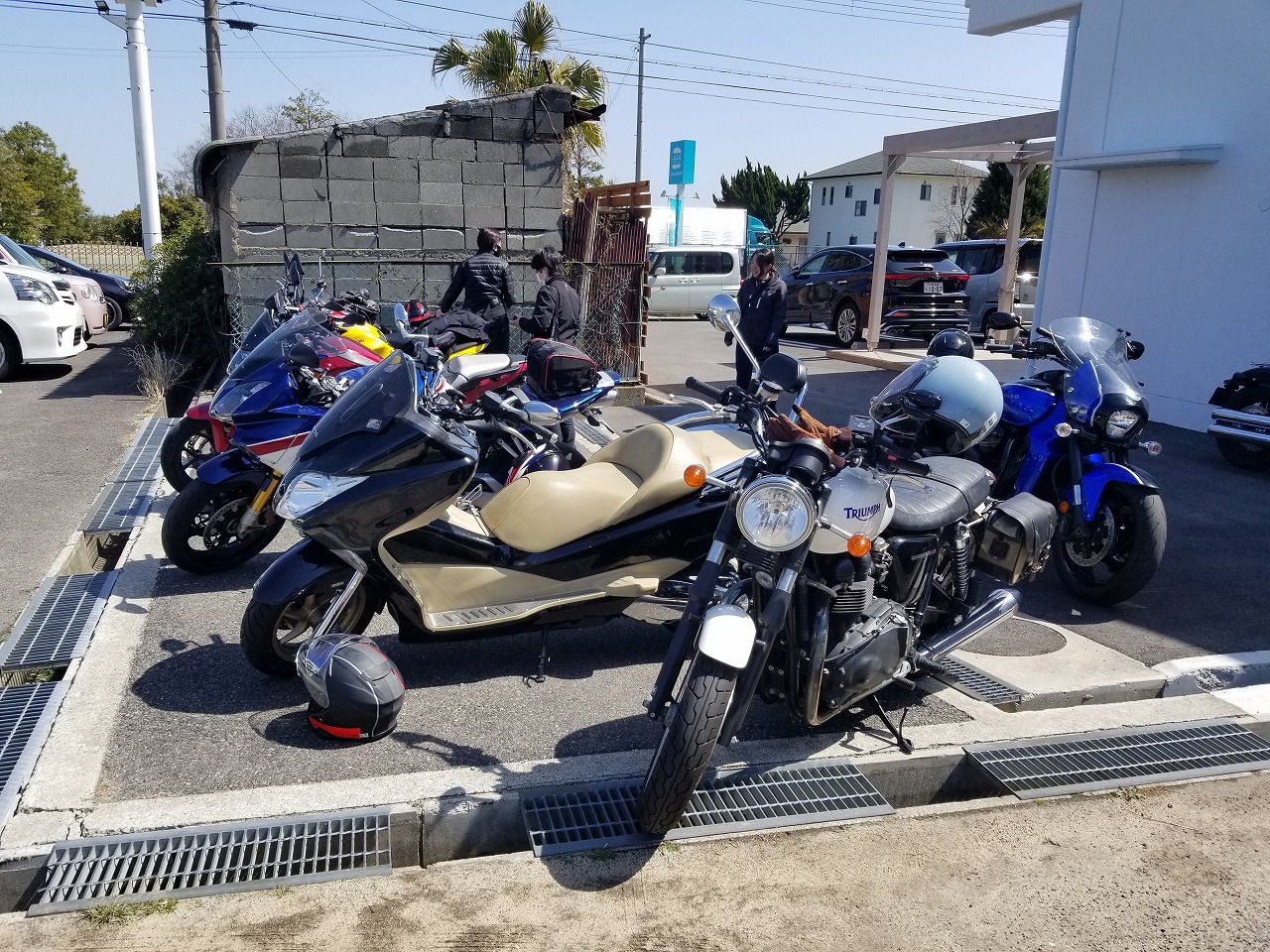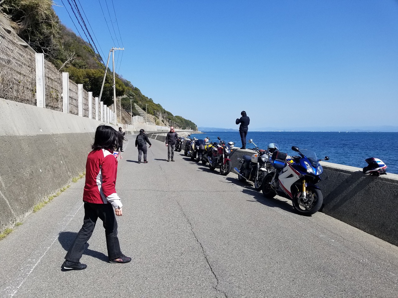 今年の冬は寒かったですね~ 2月のツーリングも中止になり、3月にしてやっと開催。 Ladysと英会話、中級、ベテランクラスツーリングの同時開催。 まずサッシュに13人が集合 今回の行先は初心に戻り20年ぶりに淡路島です。 朝はかなり寒かったですが、申し分ない快晴で最高のツーリング日和! 今回は250のスクーターのアメリカ人も参加して英会話も弾みます。 サッシュを出発してまず新名神の宝塚北サービスエリアを目指します。 ここで大阪在住のお客様と合流して淡路島を目指します。 山の中は結構寒い。 あっという間に淡路サービスエリアに到着。 高速道路のおかげで近くなりましたねー ここでさらに4人合流。 Ladys &Englishチームは7人 ベテランクラスは11人の大所帯に。 とてもじゃないが一纏めは無理!それに食事も一つの店では無理なので ベテランクラスはお客様に任せて、それぞれの昼食場所に向けて出発。 最近淡路島は人気らしくとんでもない車の量。 すでに渋滞してます。 天使のパンケーキの淡路島本店の前を通りましたが、あり得ない人の列でした(笑) 島の北側を西に回り、海沿いを走り山を抜けて志筑に到着。 11時過ぎAWAJI SEASIDE WALK CAFEに到着 すでに駐車場いっぱい。 なんとか隙間に停めます。 幸いすぐに席が空いてラッキーでした。お腹すいた! 淡路島バーガーをいただきました。 オニオンフライもめちゃくちゃ美味しくて大満足! 2000円近い価格ですが納得できる内容でした。 店を出る頃には店の前には待ちの列が… タイミング良かった! ベテランクラスは少し北にあるうどんの有名店 いづも庵さんへ。 こちらは結構並んだらしいですが、とてもおいしかったらしいです。 少し南下したコンビニで合流。 それぞれの昼食の話題で盛り上がります。 そこからハイライトの南側の海沿いの快走路へ。 海がキラキラしてて最高の景色を満喫。 コンビニで休憩しながら英会話を楽しみます そこから本来は鳴門のうず潮方面に向かいたかったんですが、あまりの車の多さに 断念して、高速道路でまた淡路サービスエリアに。 淡路サービスエリアに入るのに渋滞してて大変でした… ここから各自流れ解散で帰っていきます。 高速道路も渋滞がひどく、ひーひー言いながら宝塚北サービスエリアで最後の休憩。 SAから本線見てもひどい渋滞で、全然車が進んでないのが見えてゲンナリですが、 日も暮れてきてるので覚悟を決めて各自出発して帰って行きました。 本日は最高の天気でしたが、車、渋滞が多すぎなかなか大変なツーリングでした(笑) でもAさんのおかげで英会話も楽しめ、バイクの話も盛り上がり楽しい一日でした! 次回は5月の予定になってます。日程決まったらUPしますね~