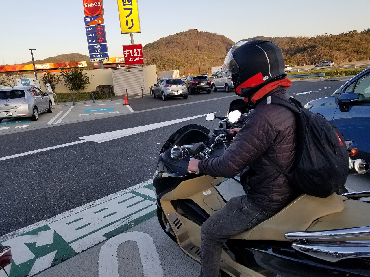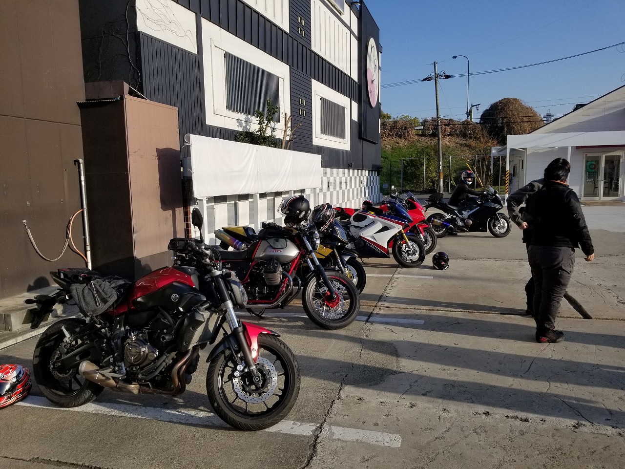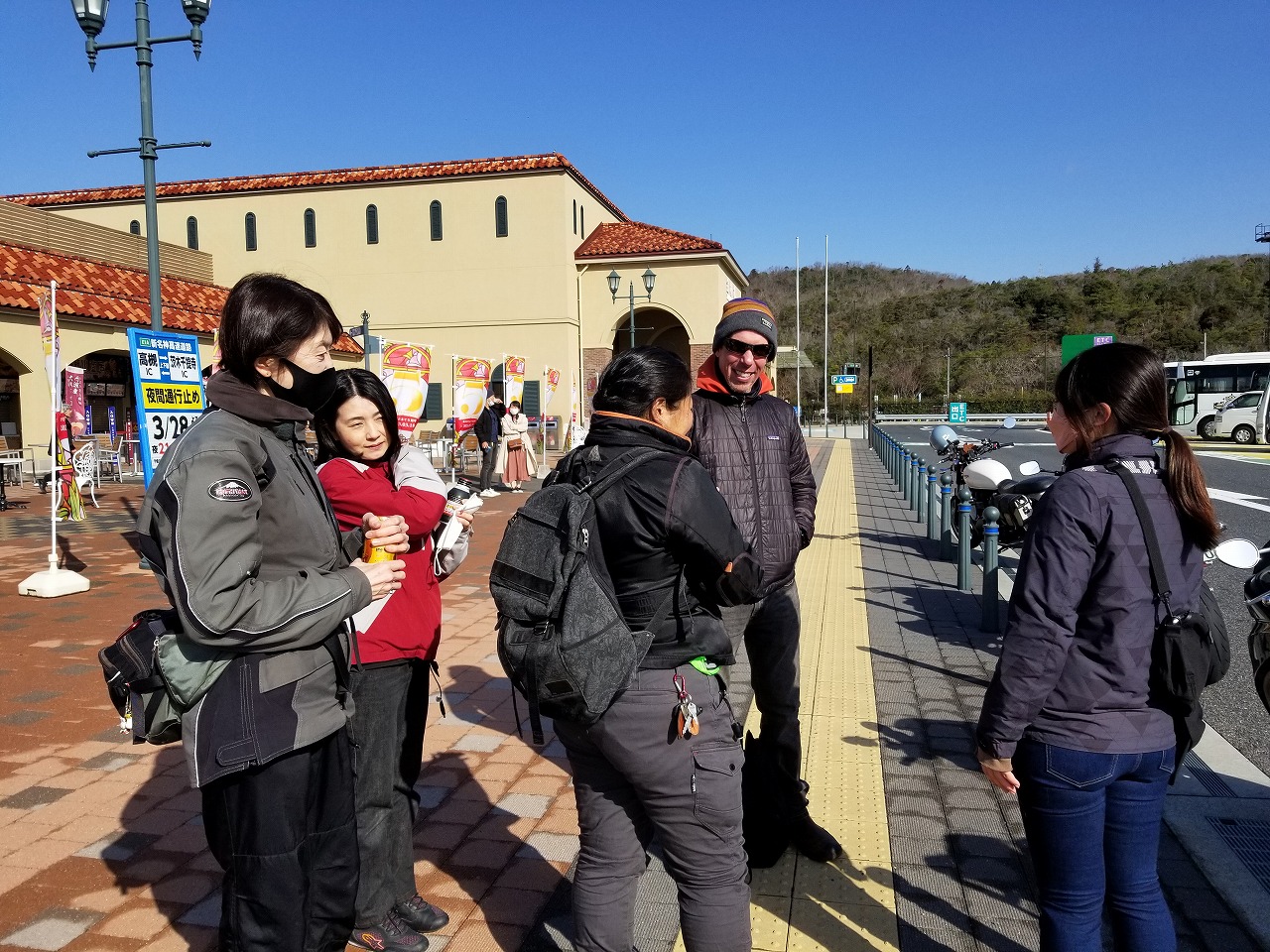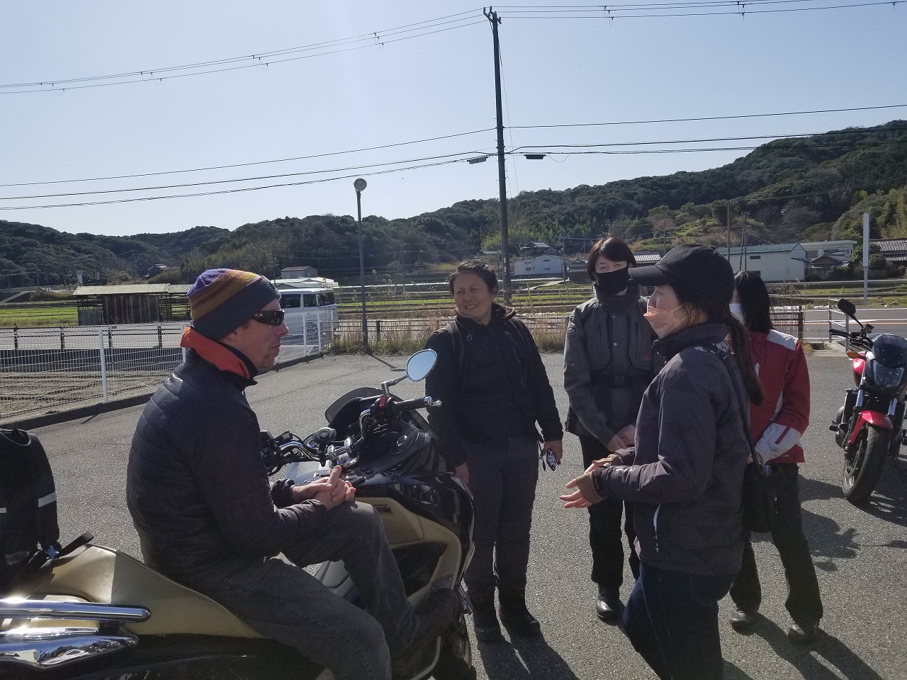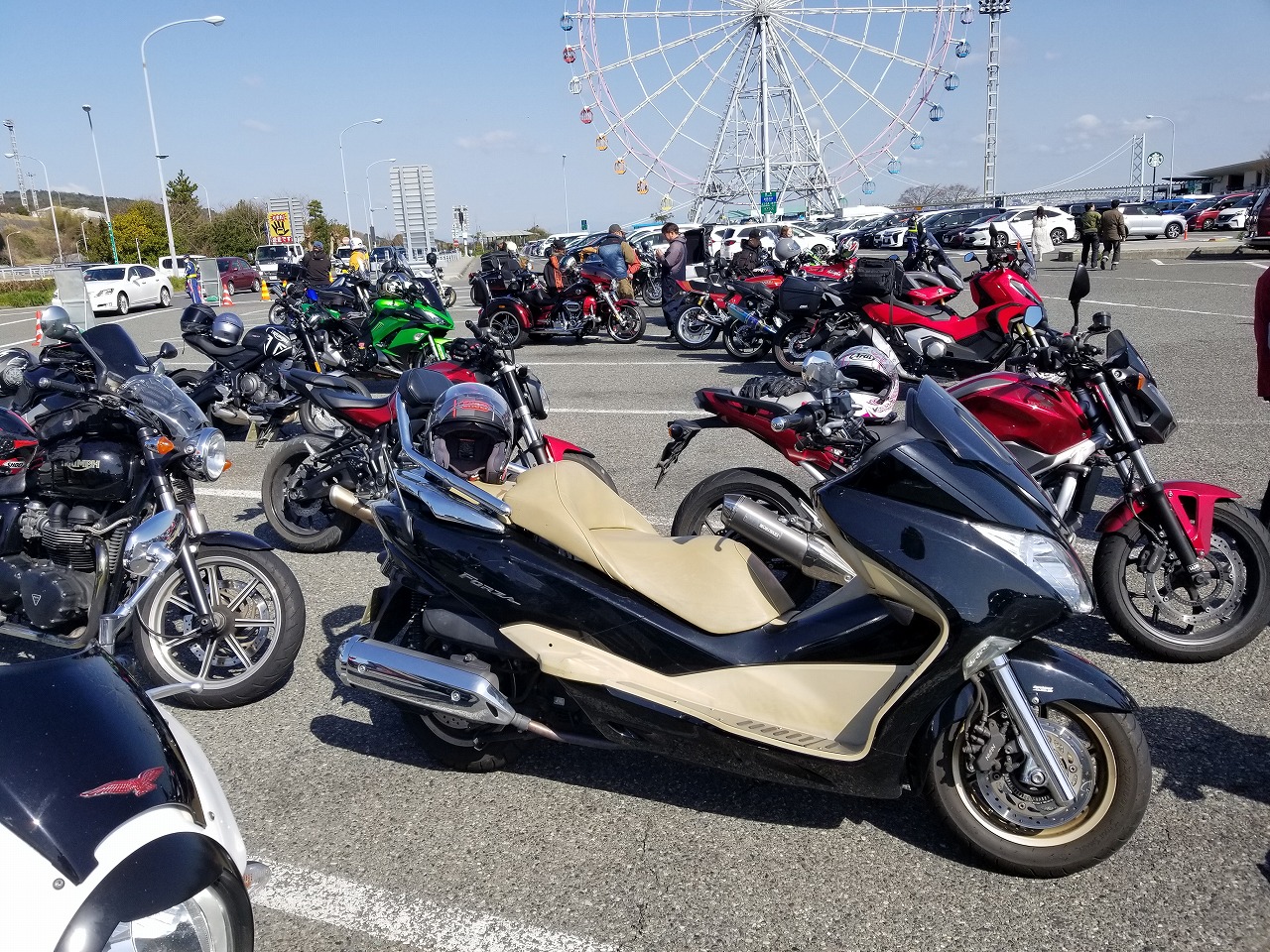 今年の冬は寒かったですね~ 2月のツーリングも中止になり、3月にしてやっと開催。 Ladysと英会話、中級、ベテランクラスツーリングの同時開催。 まずサッシュに13人が集合 今回の行先は初心に戻り20年ぶりに淡路島です。 朝はかなり寒かったですが、申し分ない快晴で最高のツーリング日和! 今回は250のスクーターのアメリカ人も参加して英会話も弾みます。 サッシュを出発してまず新名神の宝塚北サービスエリアを目指します。 ここで大阪在住のお客様と合流して淡路島を目指します。 山の中は結構寒い。 あっという間に淡路サービスエリアに到着。 高速道路のおかげで近くなりましたねー ここでさらに4人合流。 Ladys &Englishチームは7人 ベテランクラスは11人の大所帯に。 とてもじゃないが一纏めは無理!それに食事も一つの店では無理なので ベテランクラスはお客様に任せて、それぞれの昼食場所に向けて出発。 最近淡路島は人気らしくとんでもない車の量。 すでに渋滞してます。 天使のパンケーキの淡路島本店の前を通りましたが、あり得ない人の列でした(笑) 島の北側を西に回り、海沿いを走り山を抜けて志筑に到着。 11時過ぎAWAJI SEASIDE WALK CAFEに到着 すでに駐車場いっぱい。 なんとか隙間に停めます。 幸いすぐに席が空いてラッキーでした。お腹すいた! 淡路島バーガーをいただきました。 オニオンフライもめちゃくちゃ美味しくて大満足! 2000円近い価格ですが納得できる内容でした。 店を出る頃には店の前には待ちの列が… タイミング良かった! ベテランクラスは少し北にあるうどんの有名店 いづも庵さんへ。 こちらは結構並んだらしいですが、とてもおいしかったらしいです。 少し南下したコンビニで合流。 それぞれの昼食の話題で盛り上がります。 そこからハイライトの南側の海沿いの快走路へ。 海がキラキラしてて最高の景色を満喫。 コンビニで休憩しながら英会話を楽しみます そこから本来は鳴門のうず潮方面に向かいたかったんですが、あまりの車の多さに 断念して、高速道路でまた淡路サービスエリアに。 淡路サービスエリアに入るのに渋滞してて大変でした… ここから各自流れ解散で帰っていきます。 高速道路も渋滞がひどく、ひーひー言いながら宝塚北サービスエリアで最後の休憩。 SAから本線見てもひどい渋滞で、全然車が進んでないのが見えてゲンナリですが、 日も暮れてきてるので覚悟を決めて各自出発して帰って行きました。 本日は最高の天気でしたが、車、渋滞が多すぎなかなか大変なツーリングでした(笑) でもAさんのおかげで英会話も楽しめ、バイクの話も盛り上がり楽しい一日でした! 次回は5月の予定になってます。日程決まったらUPしますね~