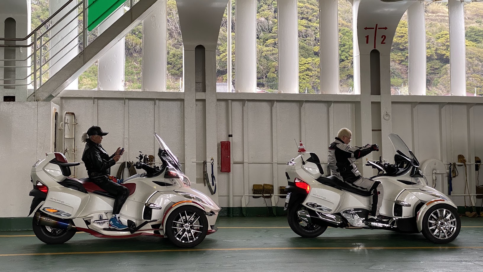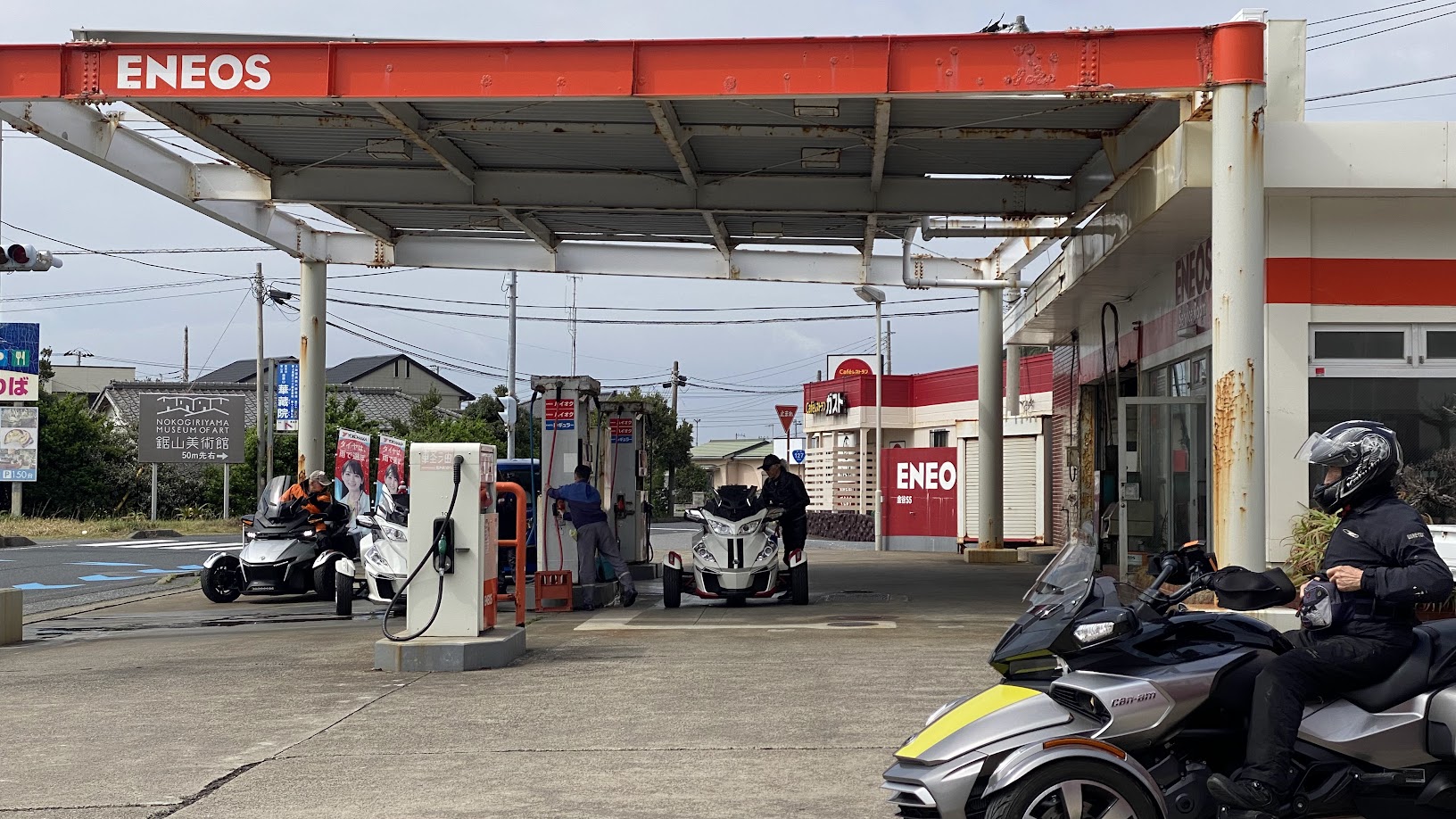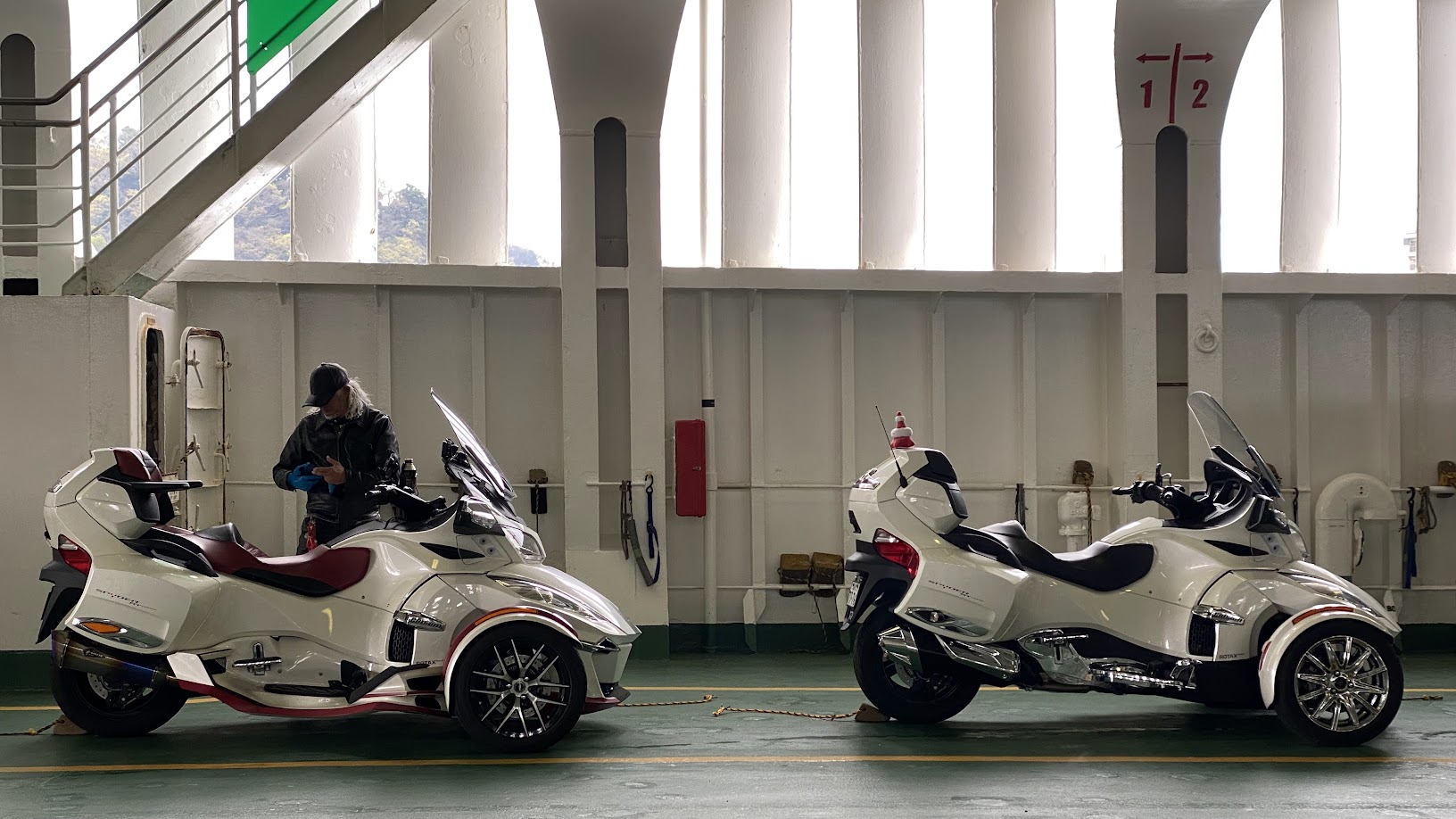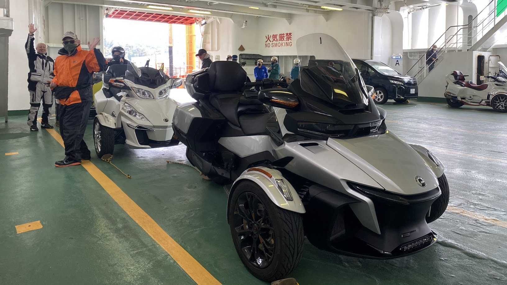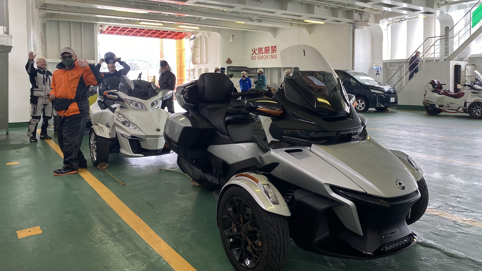 ここ最近、定例カンナムツーリング参加のために 関東から京都へお越しいただく事も増えて来ました。 京都へ来ていただくばかりで 申し訳ないので・・・ 訪ねて行くことにしました。 あ、スパイダー ではなく ひかり です。 《1日目》 横浜付近で合流。 11月と12月の定例ツーリング、 2月の定例ツーリングにお越しいただいた お久しぶり感が まるでない 2名様。 さらに 10月の信州合同ツーリングでお会いした オーナ-を加え 三浦半島に 海鮮ランチツーリングに出発。 神奈川県 三浦市 松輪 江奈漁港 の 地魚料理 松輪 さんへ。 現在製作中の動画を見て頂ければ おわかりだと思いますが、 最後に ちょっとだけ オフロード走行する必要があります(笑) アジフライに惹かれて なぎさ定食にしました。 漁港内にある お店なので 間違いなしです! 出発時間が遅かったので 欲張らずに 明るいうちに帰路に就きます。 本日の おやどは 葉山 です。 食事に向かう途中のタクシーで 運転手さんが 左が 葉山御用邸 だと教えてくださいました。 ・・・頼むよ、もうちょっと早く教えてくれ。。。 泊まりのツーリングだと楽しい時間がずっと続きます。 ずいぶん楽しかったのでしょう。 記録(写真)と記憶が なんもないです。 《2日目》 相模湾を臨み、伊豆・箱根方面を予定していましたが・・・。 どうも天気が芳しくない。 って事で 急きょ 館山方面に行きたいと 提案しました。 館山に何があるか知りませんが 雨雲が無い事だけは確かです。 きのう 久里浜 - 金谷 にフェリーがあることを 聞いていたのもありました。 雨に遭うこともなく、出港 5分前に 久里浜港へ。 1時間に1便ペースの運航なので 危ないところでした。 およそ40分の船旅です。 まもなく金谷港へ。 下船準備。 ちょうどお昼時だったので 即ランチ。 これだけ海の幸を堪能したのは 初めてかもしれません。 食後も ノープランだったのですが『渚の駅 たてやま』で ソフトクリームを食べようと提案。 この辺りは 1988年公開映画『ぼくらの七日間戦争』のロケ地だったそうです。 何度も 観たくなる 名作ですね。 そして、 デザートもGETしました。 帰路はフェリー出港時間から逆算して 金谷港まで 高速道路を選択。 あぶねー! 帰りも ギリギリ乗船でした。またも 船尾に駐車(笑) 往復券を買っておいて正解でした。 晩もしっかり 海鮮三昧。 品川・横浜・湘南・富士山ナンバーのオーナーさま 平日にもかかわらず ご参加いただきありがとうございました。 今回はお会いできなかった オーナ-さまも 近々お会いしましょう! それでは最後に、現地から送られてきた エスコンフィールドの写真を見ながらお別れしたいと思います。 新球場&開幕戦。これは 羨ましい・・・。 北海道ツーリングを企画しようかな(笑)