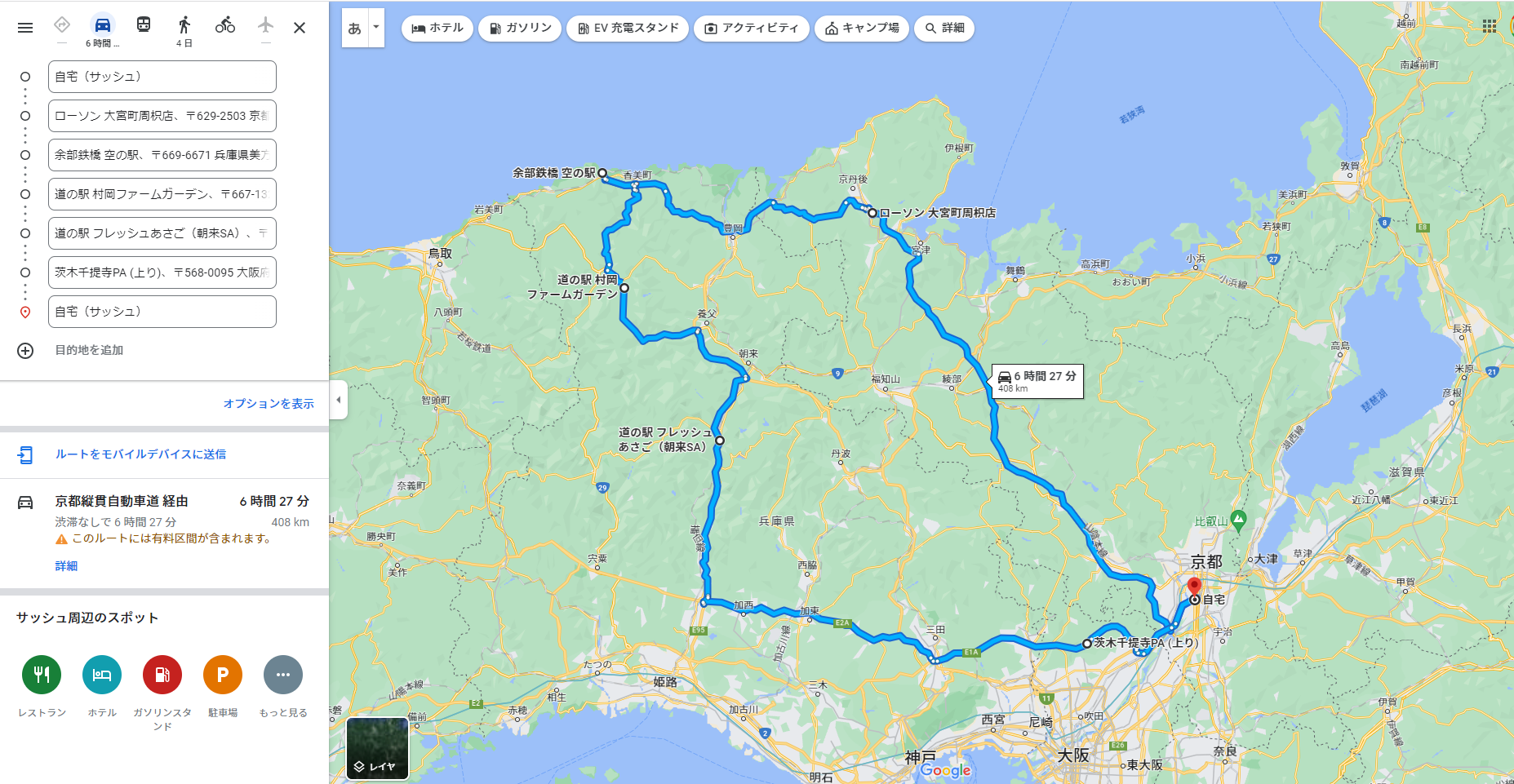 お待たせしました。 4月の定例カンナムツーリングの告知になります。 月末には ゴールデンウイークも 控えておりますので 1週早めの 開催となります。ご了承ください。 4/23(日) 午前8時 サッシュ出発 反時計回りに 京都と兵庫を ツーリングします。 あまるべ鉄橋 を見て 但馬牛 を食べる 予定です。 ルートは 以下の通りです。 https://goo.gl/maps/k1KEVcL1gCpuuzS78