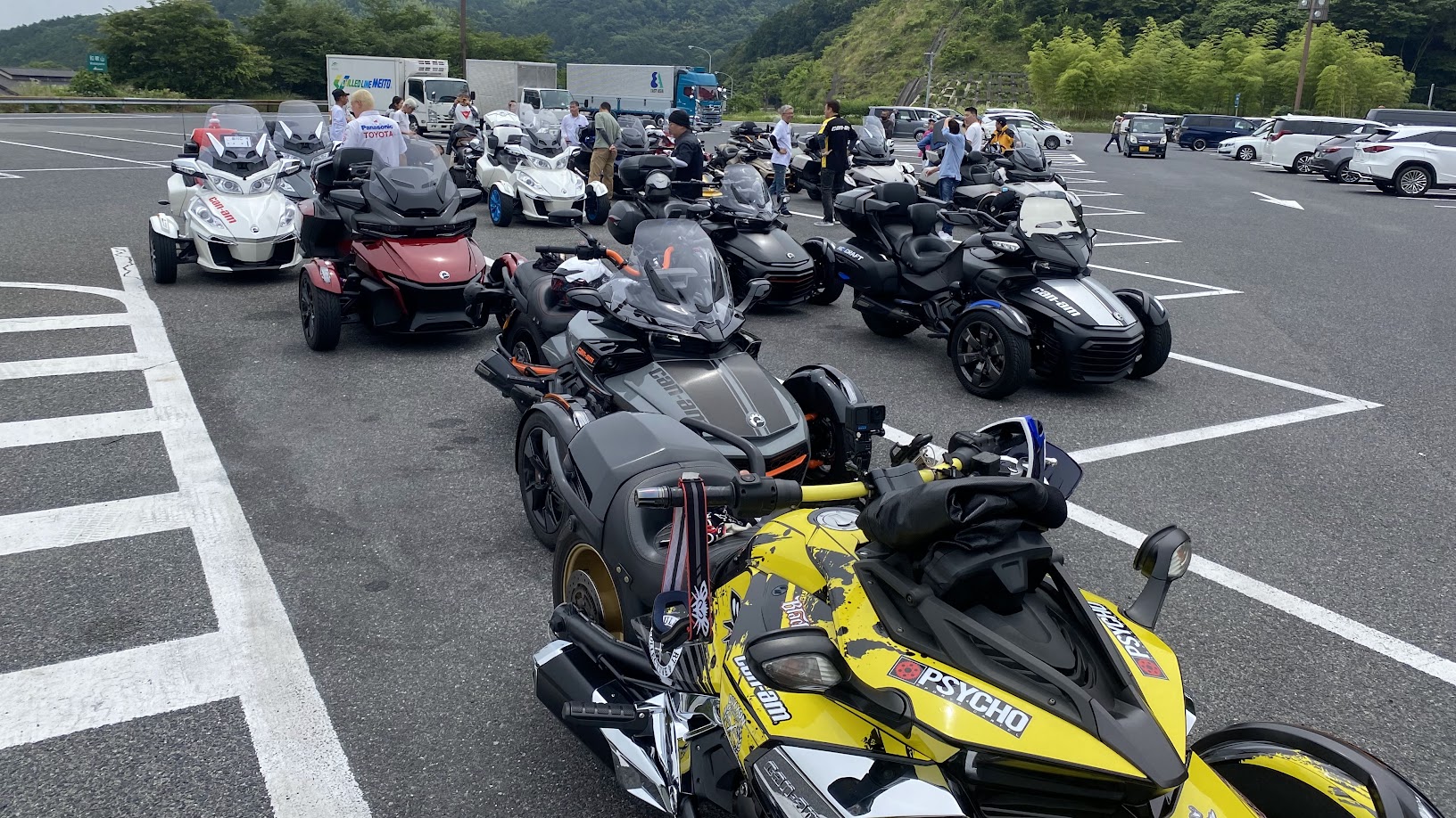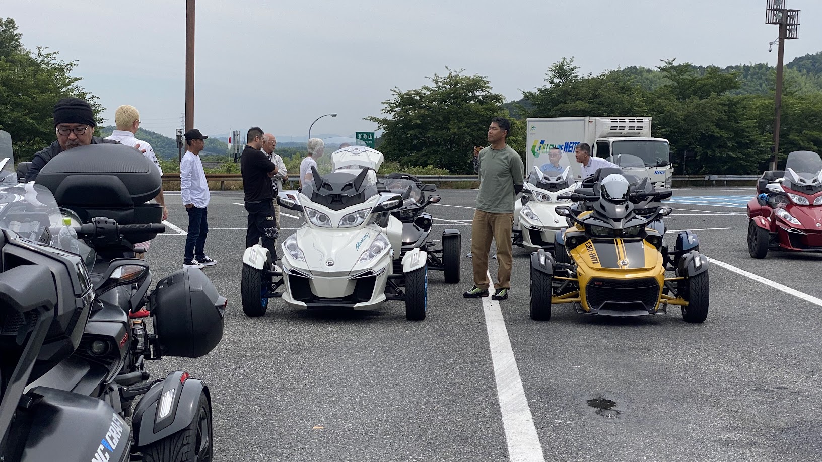 いってきました Spartan Cafe HIDEOUT さん! 今回は 納車したてのオーナー様や マスツーリング未経験のオーナー様にもご参加いただけるよう 距離も短め 休憩多いめ 企画です。 9時集合のため みなさん余裕のお集まりでした。 関西地区のオーナーさまのご参加も 心よりお待ちしております。 今回は 初参戦の2台をお迎えし、12台のスパイダーで 第2集合場所である 岸和田SAを目指します。 安全運転で、 定刻通り岸和田へ。 9台のスパイダー&ライカーと合流。 岸和田でも 5台の初参戦のオーナー様をお迎えです。 開店時間ぴったりの入店を目指して しばしカンナム談義。 11:00到着。 現地集合の5台を加え、26台集まりました。 うち 9台は 初参加のオーナー様で ツーリングの雰囲気が なんとなくいつもと違う気がします。 サッシュチームスパイダーへようこそ。 お待ちかね ランチタイム。 ・・・3回 おかわりされた方がいるそうです。 ふと外に目を向けると、 ガレージに 1970年代の インディアンオフロードがありました。 食後は 下道と 京奈和道を使用して かつらぎ方面に 移動です。 走行距離 230キロの ベリーショートなツーリングでしたが 休憩中のトークタイムをたくさん取ることができ、 まぁこんなツーリングもありかなと感じる事ができました。 初めてご参加いただいたオーナー様、またご一緒しましょう! 今回予定が合わなかったオーナー様、次回お会いしましょう! そして いよいよ 次回、 7/23 西日本オーナーズミーティングです! 詳細は 後日アップします! 日程調整をお願いします。