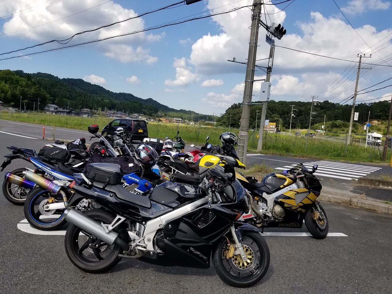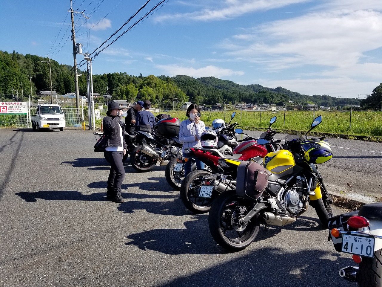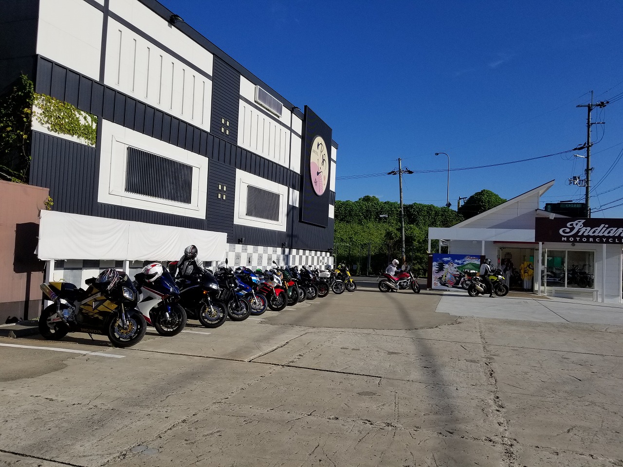 昨日は中級までの方を対象としたツーリング 何故かベテランクラスの方にも好評で、むしろベテランクラスの参加の人数のほうが多いという… 覚悟はしてましたが、まあ朝からめちゃくちゃ暑い… 7時半の早めの集合でしたが、皆さん30分前から続々とご来店。 モトグッチの新型も今日デビュー、皆さん興味津々。 朝からみんなワイワイお喋り弾みますが、昼ご飯の予約が11時なので、 早々、軽く打ち合わせして出発。 ベテランクラスは休憩ポイントまで勝手に走っていただきます(笑) まずは信楽まで軽く走って、最初の休憩。 まだ慣れてない方のライディングを確認して、休憩中にレクチャーさせていただき、 走行も目の前で見本を見せてコピーしていただきます。 最初はぎこちないライディングだった方も、みるみるスムーズになっていき、 次の休憩ポイントでは「楽しい!カーブはひたすら怖くて我慢するところだと思ってました!」 って、安全で楽しい運転に目覚めてくれたようで、本当に嬉しい! この仕事長年やってると、自分の楽しさよりお客様の上達、楽しさのほうが遥かに 嬉しいですね。 そして今回は針テラス横のライダースカフェのLightningVoltさんに11時から予約なので ご迷惑にならないように早めに向かいます。 まずはゆっくりグループが先に到着。 順番に食券を購入していきます。 険しい(?)山の中を走ってきたベテランクラスも到着。 美味しいカレー、チキンカツをいただきます。 時間差で続々料理が運ばれてくるので、皆さんそれぞれトッピングの違いなどで盛り上がり、 次回はそれにしよう!そんなトッピングあったんや!とか、すごくワイワイ盛り上がり 楽しい時間をいただきました。 人数が多いので数名屋外のテント下で食べましたが、思ったより風があって涼しい! 気持ちいい~ 皆さん相当気に入ってもらえたみたいで、また来たい!と言ってました。 ごちそうさまでした! そこからはひたすら灼熱との闘い(笑) 夕方に京都に帰ってきましたが、途中コンビニ軒下日陰休憩長い(笑) バイクの運転じゃなく、暑さでへばったツーリングになりました… 来月はもっと涼しくなってるはず…。 10月のツーリングは9日月曜祝日の予定です。 皆様の参加をお待ちしております~。