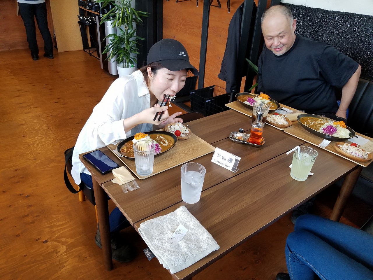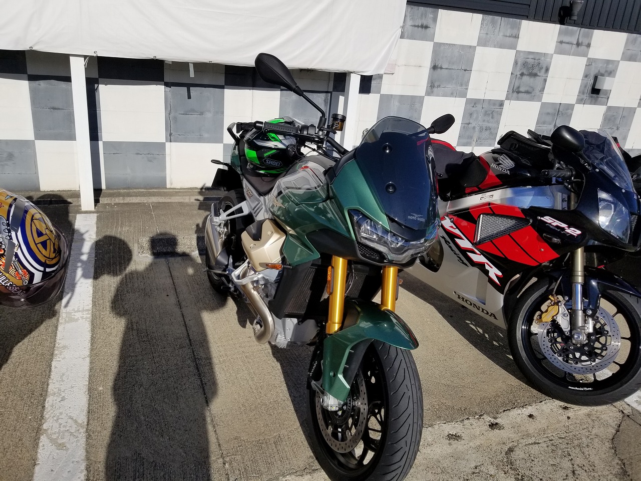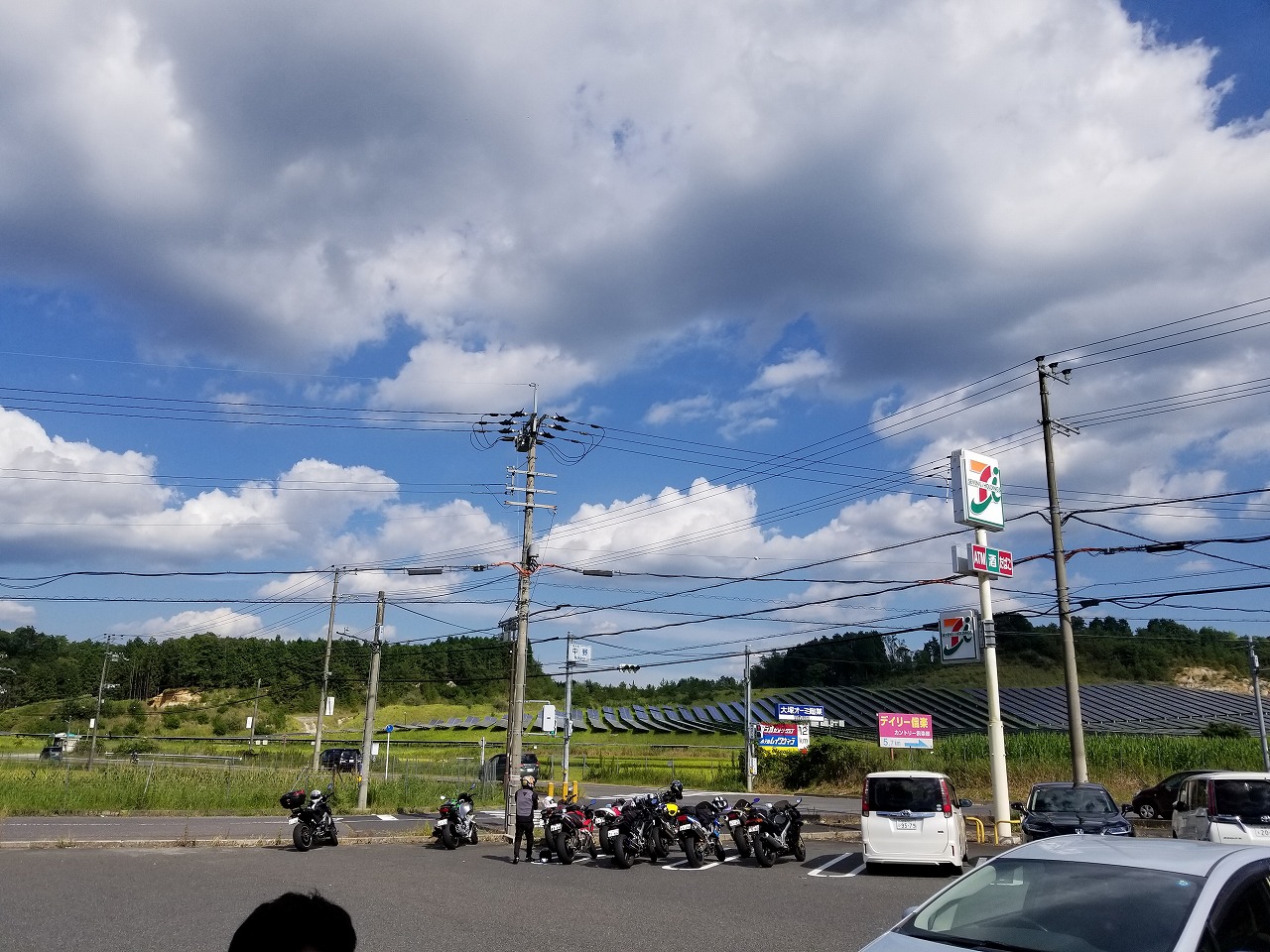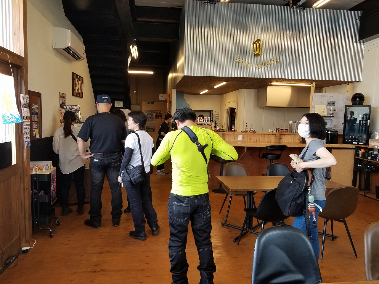 昨日は中級までの方を対象としたツーリング 何故かベテランクラスの方にも好評で、むしろベテランクラスの参加の人数のほうが多いという… 覚悟はしてましたが、まあ朝からめちゃくちゃ暑い… 7時半の早めの集合でしたが、皆さん30分前から続々とご来店。 モトグッチの新型も今日デビュー、皆さん興味津々。 朝からみんなワイワイお喋り弾みますが、昼ご飯の予約が11時なので、 早々、軽く打ち合わせして出発。 ベテランクラスは休憩ポイントまで勝手に走っていただきます(笑) まずは信楽まで軽く走って、最初の休憩。 まだ慣れてない方のライディングを確認して、休憩中にレクチャーさせていただき、 走行も目の前で見本を見せてコピーしていただきます。 最初はぎこちないライディングだった方も、みるみるスムーズになっていき、 次の休憩ポイントでは「楽しい!カーブはひたすら怖くて我慢するところだと思ってました!」 って、安全で楽しい運転に目覚めてくれたようで、本当に嬉しい! この仕事長年やってると、自分の楽しさよりお客様の上達、楽しさのほうが遥かに 嬉しいですね。 そして今回は針テラス横のライダースカフェのLightningVoltさんに11時から予約なので ご迷惑にならないように早めに向かいます。 まずはゆっくりグループが先に到着。 順番に食券を購入していきます。 険しい(?)山の中を走ってきたベテランクラスも到着。 美味しいカレー、チキンカツをいただきます。 時間差で続々料理が運ばれてくるので、皆さんそれぞれトッピングの違いなどで盛り上がり、 次回はそれにしよう!そんなトッピングあったんや!とか、すごくワイワイ盛り上がり 楽しい時間をいただきました。 人数が多いので数名屋外のテント下で食べましたが、思ったより風があって涼しい! 気持ちいい~ 皆さん相当気に入ってもらえたみたいで、また来たい!と言ってました。 ごちそうさまでした! そこからはひたすら灼熱との闘い(笑) 夕方に京都に帰ってきましたが、途中コンビニ軒下日陰休憩長い(笑) バイクの運転じゃなく、暑さでへばったツーリングになりました… 来月はもっと涼しくなってるはず…。 10月のツーリングは9日月曜祝日の予定です。 皆様の参加をお待ちしております~。