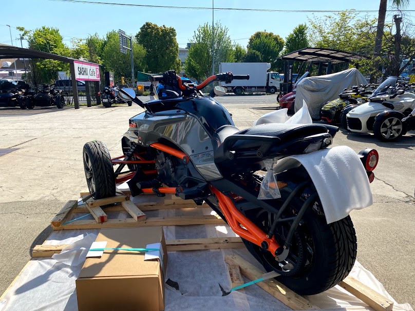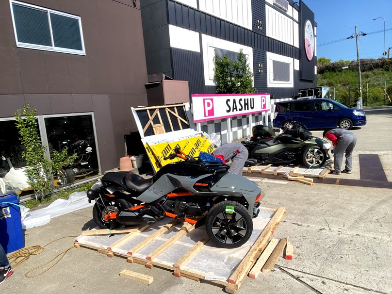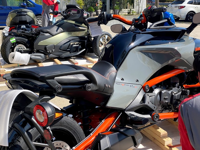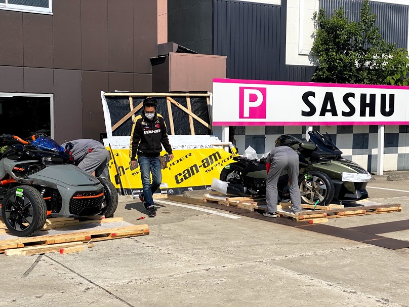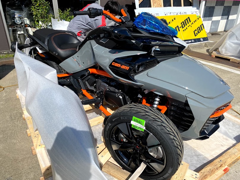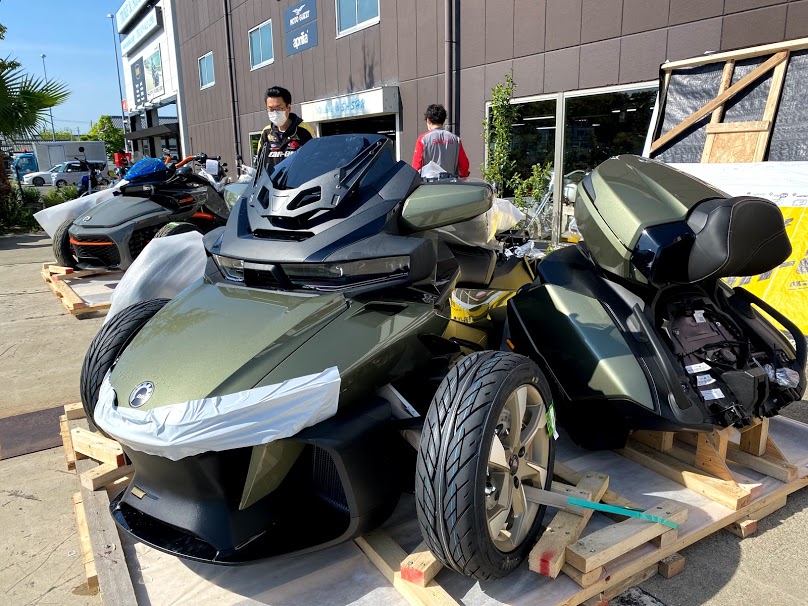 本日あさイチで到着しました! カンナムスパイダー2021年モデル! 袋を破って 覗いてみましょう。 MY21 RT Sea To Sky と MY21 F3S Special Series。 同時進行で開梱されていきます。 大変お待たせいたしました。 別カラーも随時入荷いたしますので 今しばらくお待ちください。