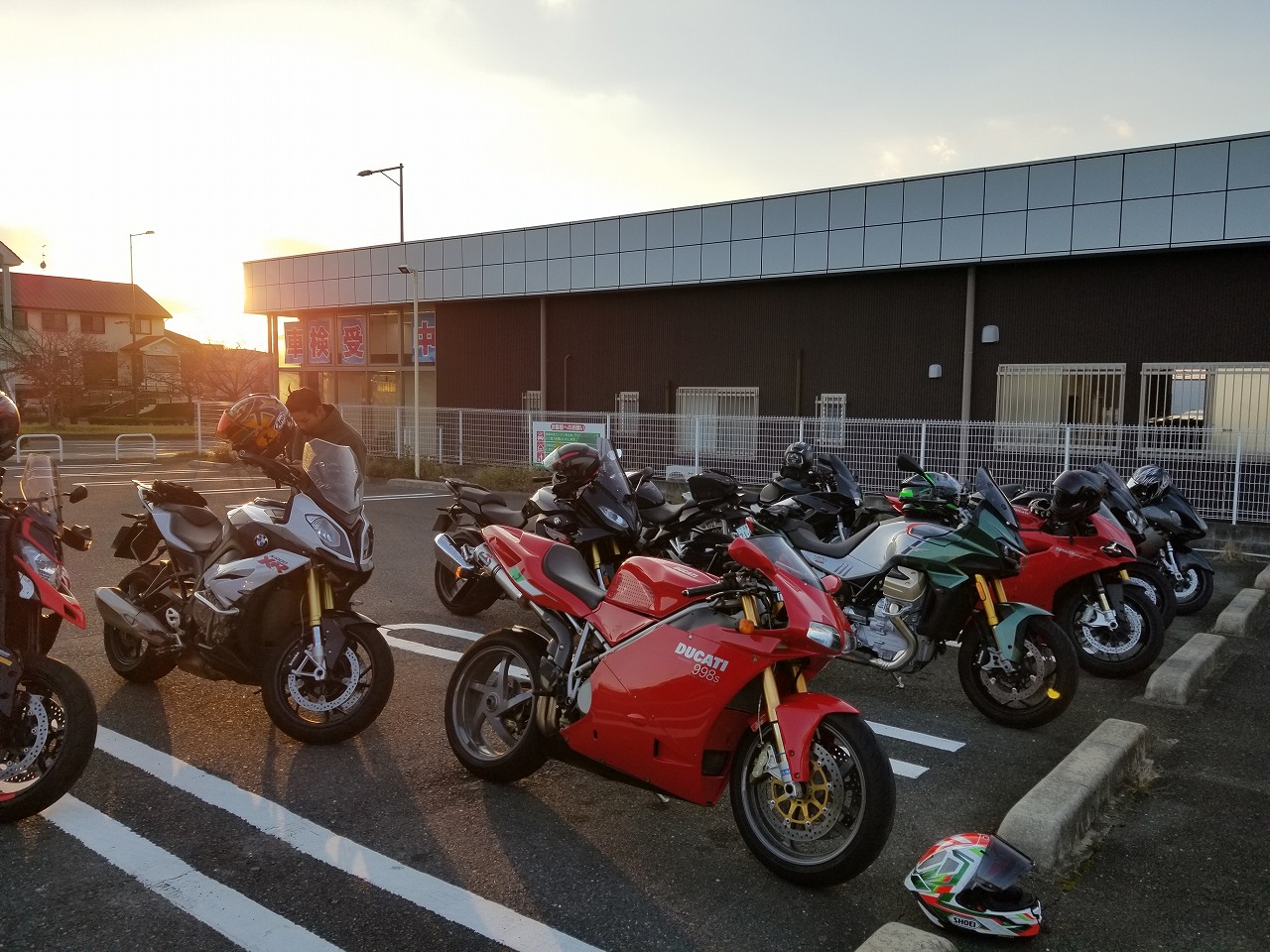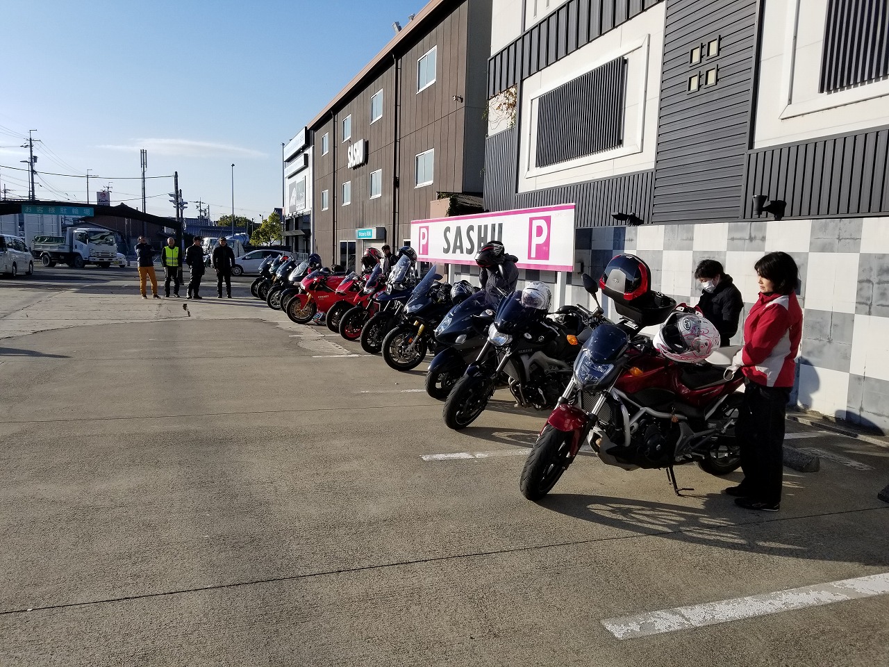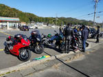 昨日は今年最後のゆっくりツーリングでした~。 中級、ベテランクラスと合同開催でしたが、急な気温低下による体調不良 前日の荒天の影響、などでキャンセル相次ぎまさかの6名脱落。 しかも初級から中級ばかり… 結局ゆっくりグループは6名、その他14名という大所帯に。 幸い快晴になり、続々と集まってくださいました。 ベテランクラス先導は常連メンバーにお願いして出発! ベテランクラスは2グループに分かれて 出発していき、ゆっくりグループも出発しようとしたら、まさかのパニアケースの中に 鍵閉じ込め(笑) いやいや、またもや笑いごとじゃなくて… 裏技でなんとか開けて、かなり遅れて出発。 高速で後れを取り戻しました。 市内は結構暖かかったので油断しましたが、さすがに山の方は寒い… でも快晴のなか気持ち良かったです。 そこから早めの昼食に向かいます。人数が多すぎなので受け入れてくれる滋賀県の みくりやうどんへ。(予約しとけばいいじゃない、っておっしゃるかたもいますが 直前キャンセル、参加が多いのでなかなか…) 開店時間11時ピッタリに到着したのに、すでに長蛇の列! またどこかのテレビ番組で紹介された? まあでも少し待って無事美味しいカレーうどん、かつ丼をいただきました。 その後は阿山、月ヶ瀬、奈良の山奥を快走。 夕方に木津川の京奈和入り口近くのコンビニに到着。 そこからしばらく喋って流れ解散。 よそん喋ることあるな、と思ってしまうくらいで、 みんな1時間以上喋ってました(笑) でもこのバイク談義が楽しいんですよね。 朝は寒かったですが、昼間は気持ちよく快走できました。 初心者向けのゆっくりツーリングは次回2月くらいの予定です。 ベテランクラスは12/17の予定です。 よろしくお願いいたします。