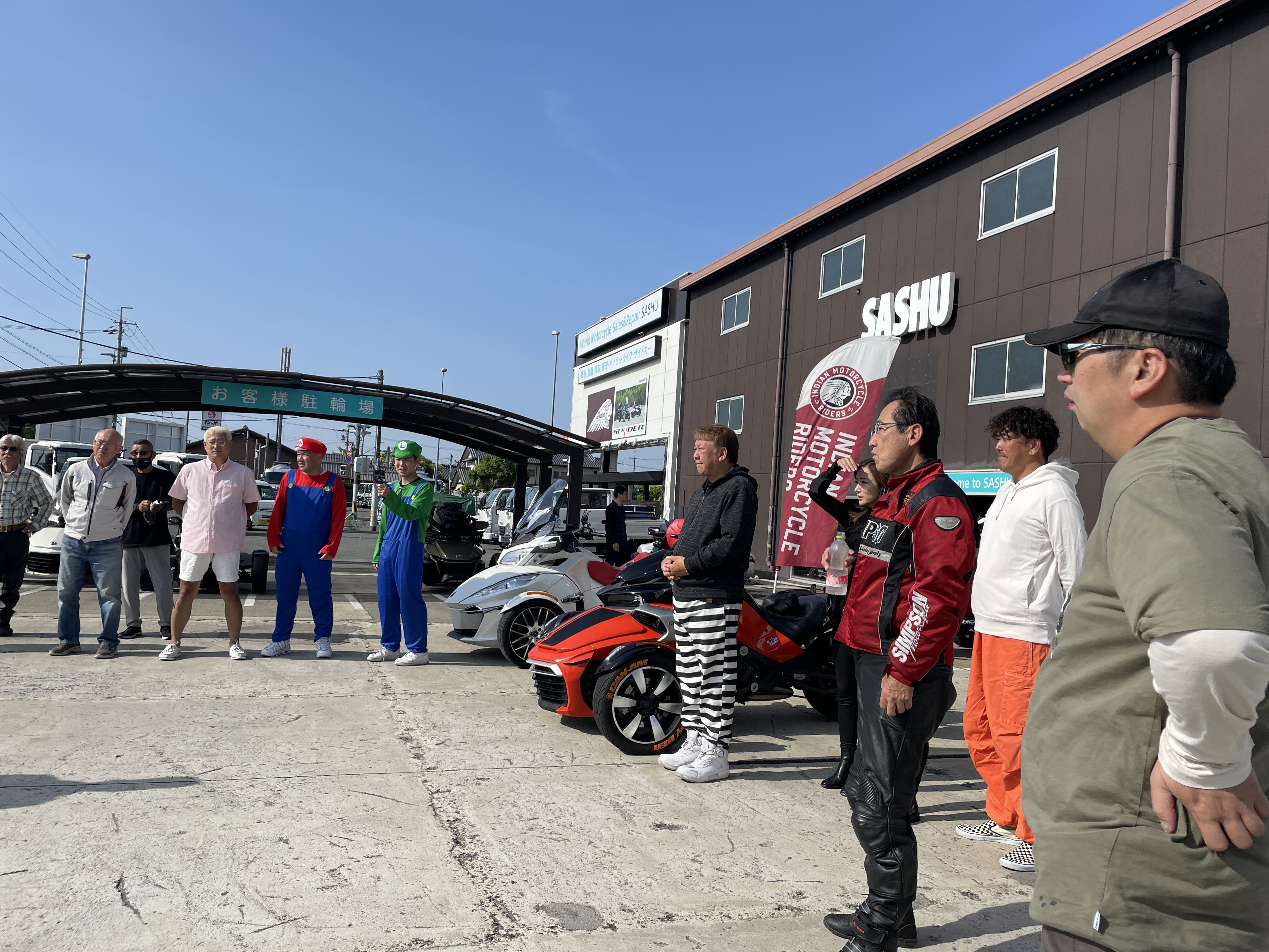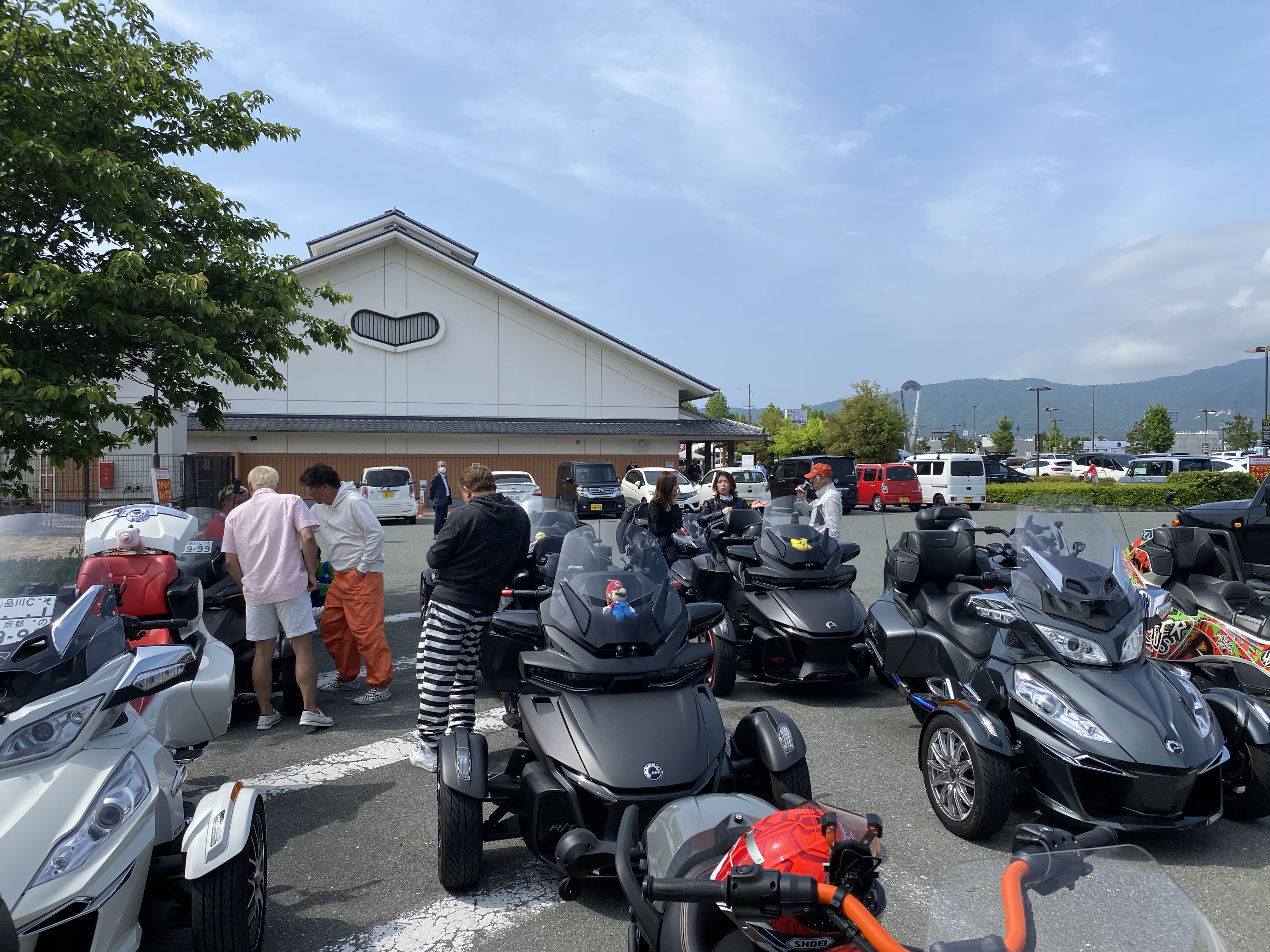 お久しぶりです。 サッシュ 濱上です。 今回は4月のツーリングが延期になり、5月26日に開催出来ましたスパイダーツーリングです!!! 7:30 サッシュ集合~ミーティング風景~。 サッシュに14台集合です。 8:00いざっ!!出発!! 目指せ道の駅藤樹の里あどがわ。 なんとスパイダーオーナー様がキャンピングカーで出迎えて下さりました。 ありがとうございます。次は是非スパイダーで走りましょう!!! あどがわで1台合流です。計15台。 9:30道の駅あどがわ出発~。 続いての目的地はメタセコイア並木!! メタセコイヤ並木の写真撮ってなかった。。。。 動画では出てきますので、お楽しみにお待ちください。. 10:10メタセコイヤ並木出発!! 今回の目的地ヨーロッパ軒(中央店)へ向かいます。 11:00ヨーロッパ軒着!! ここで名古屋、福井のお客様3台合流です。 いざ!!実食!!!! はい。美味しい~~。定期的に食べたくなりますね。 皆様美味しい顔してます。(笑) お腹いっぱいになったので、次の目的地道の駅おばまへ~! 13:30道の駅若狭おばま着。 ここで仮装大会が始まっちゃいました。(笑) カオス。 ここでお別れの方がいらっしゃったのでみんなで集合写真 続いて道の駅美山ふれあい市場へ!! 15:00道の駅美山着!! みんなでジェラートを食べます。 はい。やばいやつ。。。。 ジェラート食べ、牛乳を飲んで涼んだら、サッシュまで帰ります。 ここで流れ解散に。皆様ありがとうございました。 園部~サッシュへ!! 今回は総勢19名。18台のスパイダーが集まって頂きました。 いつもありがとうございます。 youtube完成までしばしお待ちください。 6月のツーリングは6/30予定です。 行先決まり次第、また告知させてもらいます。 よろしくお願いいたします。 また、皆様にお会いできるのを楽しみにしております。