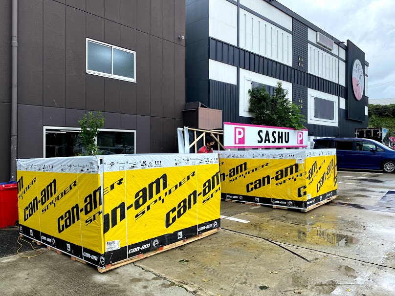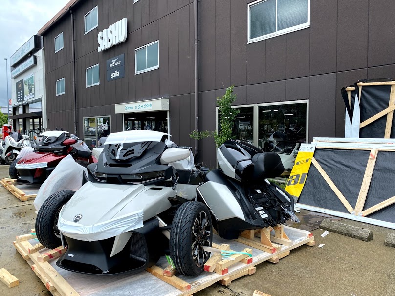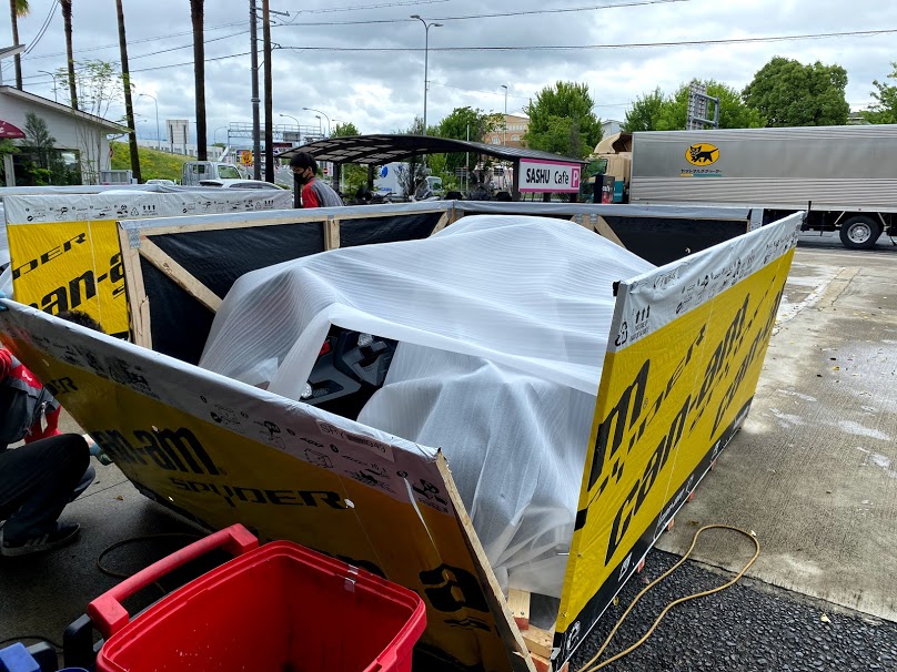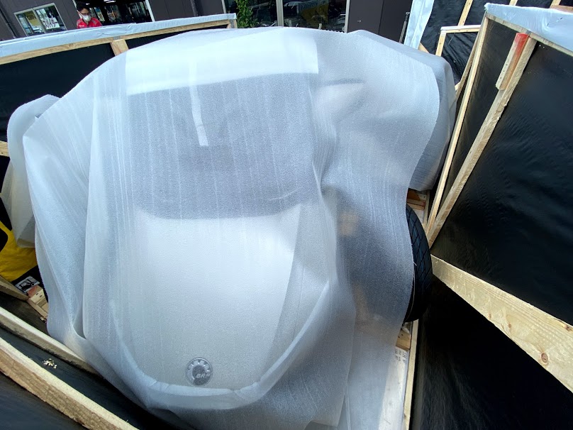 本日も 大きな箱が 届きました。おなじみの景色。 毎回、到着時には、ナゼか雨が上がります。 実は今回の入荷は・・・ 2021年モデル、RTリミテッド チョークメタリック(クローム)です。 工場で早速セットアップ作業。。。 やっぱり ベルトテンショナー、付いてました。 本日、同時入荷のディープマルサラメタリックは 現在、店頭在庫が無くなりましたが 5/24の週に 再入荷 予定です。 梅雨明けの納車を狙うなら、 このタイミングでの契約しかありません。
