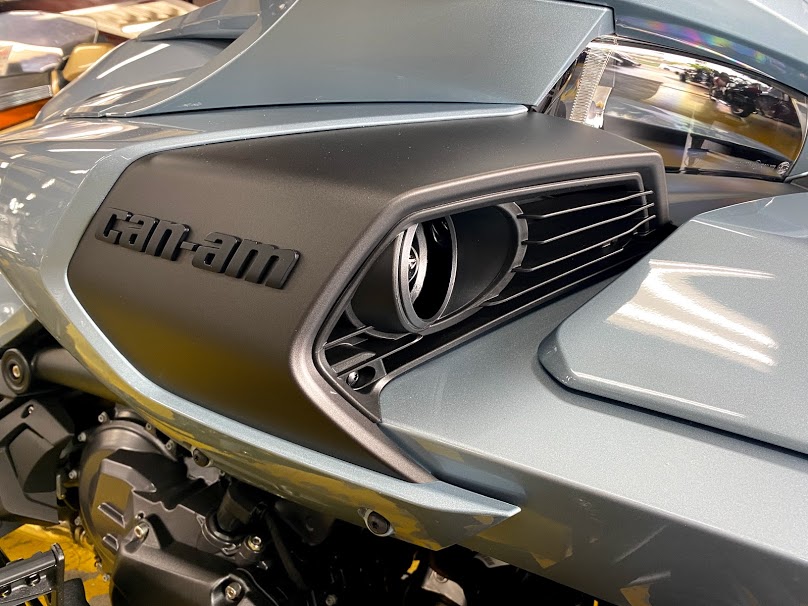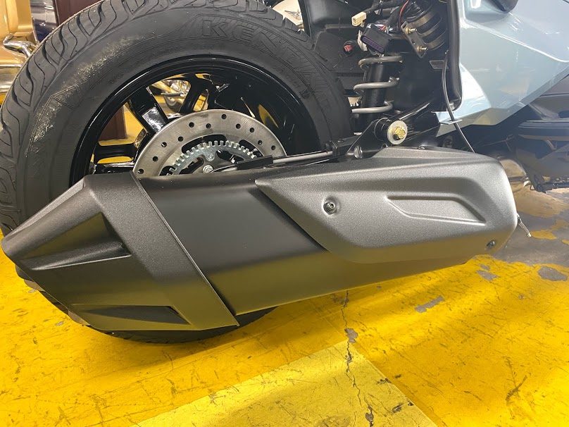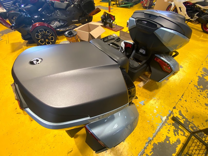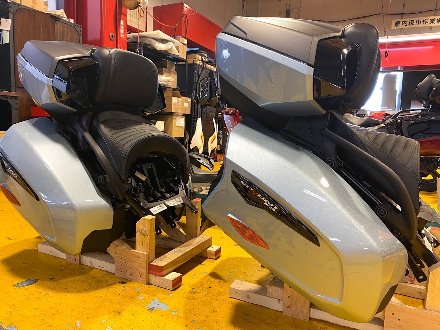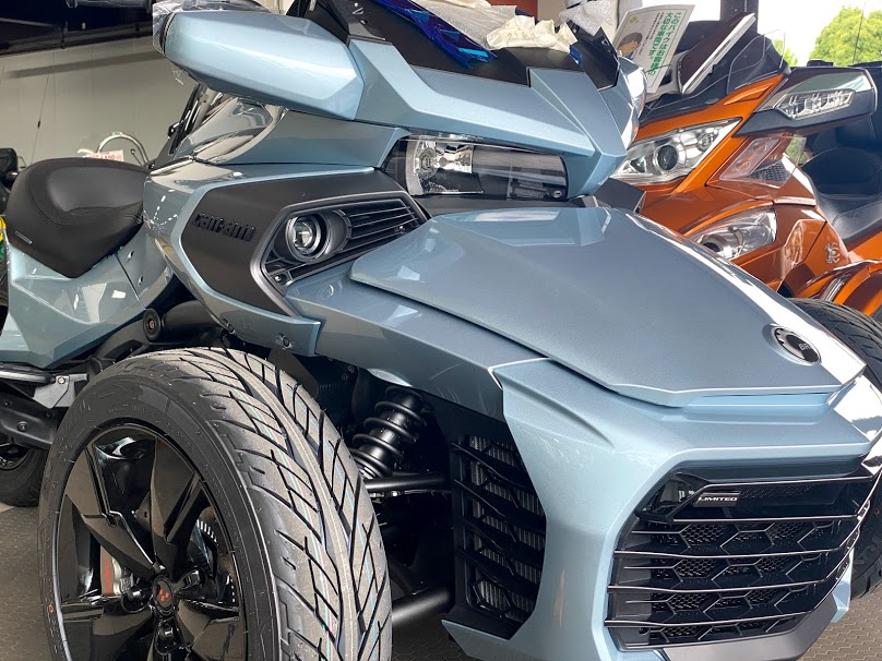 どうしても 色の具合を確認したかった 車両が届きました。 MY21 F3リミテッド グレーシャルブルーメタリック こんな色です。 口々に 『 おもってたより カッコいい色 』だとみんな言ってます。 そして トップケースの蓋が マットブラックでカッコいい。 RTリミテッドに流用しても良いかもしれません。 ボディ以外のカラーはこんなかんじ。ほぼマットブラックです。 国内導入は このグレーシャルブルーメタリック 1色のみ の設定です。 本国では全7色の設定ですが、 そのなかでも 唯一、 F3-S スペシャルシリーズと同じホイールを履いています。 他の6色は RTシリーズと同じものです。 お待たせいたしました。急いで 納車の準備です。 週末 ご対面に お越しくださいませ。 あっ!・・・ ベルトテンショナーは 非 標準装備です(笑)