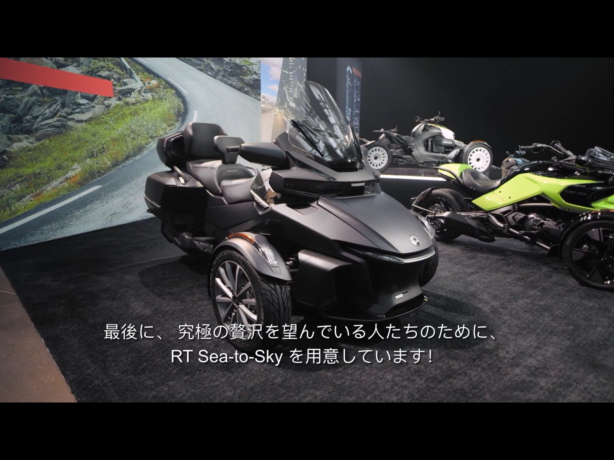 Club BRP 2022が先ほどオンラインで開催され、 カンナムオンロードシリーズの新作も発表されました! 今からお伝えする情報は、主にカナダ、アメリカ仕様についてです。 日本国内の仕様とは異なるハズですので、正式な仕様につきましては BRPジャパン様からの発表を待ちましょう。 ※瓦版での情報公開の許可は取ってあります。ホンマかな。 まずは、スパイダーシリーズ。 RTシリーズに遅れる事、一年。 F3シリーズ、いよいよモデルチェンジか!? 2022年モデルF3スペシャルシリーズ。 なんと、今年もフルモデルチェンジはお預け〜。 『マンタグリーン』がひときわ目立っています。 個人的には 金メダル級の大好きな色! コレは、噛み付きたくなりますね〜。 2022年モデルF3リミテッド。 SSグリル採用とドライバーバックレスト、 トップケースキャリアを標準装備。 あ、標準でショートリーチハンドルバーっぽいです。 ヴァイパーレッドにカーボンブラックを合わせてあります。 伝統的なスパイダーのカラーリングに見えるのは、もはや人間が古いのか…!? 2022年モデルRT Sea-to-Sky。 …コレはみんな大好き、マット外装ですね! MYSTERY BULE というカラーで つや消しのダークブルーっぽいかんじ。 アジャスタブルウインドディフレクター、ライダーバックレスト付き。 新デザインのホイールが なんともオトナのRT感がありますね。 どうも、Sea-to-Skyって毎年やるかんじっぽい(笑) 2022年ライカーシリーズ。 ニューモデル、『 Ryker Sport 』 マウントキャリア付き、オートクルーズ付き。 オートクルーズは魅力的です。 正式な価格発表が楽しみです。 2022年モデルライカーラリーエディション。 ハンドルバー、ステップの形状変更 サスペンションストローク量の拡大 アクラポビッチサイレンサー採用 前後の白いホイールがかっこよすぎ、掃除が大変。 特にマフラーですが、コレも日本仕様が気になるところですね。 できれば車検対応して欲しいです。 以上、2022年モデルカンナムオンロードシリーズでした。 詳細はBRPジャパン様からの情報をお待ち下さい。