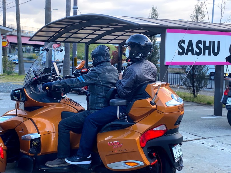 お腹も 走りも 大満足! 昨晩~明方に 降った雨のおかげで 今朝の気温は やや高め??? 土曜日だから けっこう少ないかもなー・・・。 と 思っていたのですが、 総勢17名で 松阪牛 を食べに 行くことになりました! まずは 道の駅 みなみやましろ村 を目指します。 国道163号沿いに ある 道の駅。 3年ほど前に 開業された 新しい道の駅でした。 あるの 知りませんでした。 市内から 南部までは 一部高速を使用しましたが、 国道163号は 快適そのもの。 宣言通り 今日は 試乗車の ライカー600 で参戦。 排気量2倍以上のスパイダー軍団を 先導しましたが まったく問題ありません! むしろ 山道が 楽し過ぎます。 ライカーオーナー様も 是非 ご参加ください! 『俺は 松阪牛を食うまで 今日は 何も食わねぇ! 』と、 意気込んでましたが・・・ 20秒後。村抹茶ぜんざい の罠。 さらに163号を 進みます。 ほどなくして、3台はぐれました。 163を見失う病 に なってしまいました。 名阪国道・伊勢道 で ショートカットして なんかすみません。 正しいルートの方々が 遅れて やってきました。 気を取り直して 松阪牛を目指します。 地元 松阪のオーナー様に段取りしていただいた お店です。 ありがとうございました。 松阪牛の 赤身 と いちぼ を おいしくいただきました。 そしていよいよ 来月は 2020 ファイナルスパツー。 どうやら カキオコ になりそうですよ(笑) えっと、12/20(日) です。 公式発表をお待ちください。