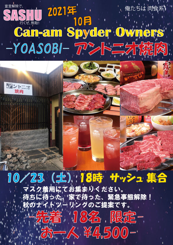 明日は延期していた 焼肉ナイトランになっております。 さきほど MY21Ryker600 に乗る アントニオさんと電話で喋ってましたが なんと 貸し切りにしていただけるそうです! あと、そーとーいい肉 を ご用意しておられるとのこと。 ( 若かりし頃の アントニオさん ) 貸し切りですのでスペースも 余裕ができましたので 追加で 若干名 のご参加をお待ちしております。 ※連絡をお待ちしております。 そして MY21 Ryker600、当店完売致しました。 お買い上げありがとうございました & MY22のご予約お待ちしております! 900cc系 は もうちょっと いけます! 新型RTミリテッドの 認定中古車も ぞくぞく入荷しております。 まだまだ 世の中には 中古車のタマ数は ごくわずかです。 車検も長く、メーカー保証も継承できます。 現在 3台 ございます。はやめのチェックをお願いします! 電話問い合わせが まぁまぁな争奪戦みたいになっております。 ★MY20 RTリミテッド ディープマルサラメタリック 194km ★MY20 RTリミテッド ペトロールメタリック 4784km ★MY20 RTリミテッド ディープマルサラメタリック 5364km 全て詳細のわかる しっかりとした車両です。 中古車も安心の正規ディーラーにおまかせください。 BRP専用診断機を駆使して しっかりと整備させていただきます。